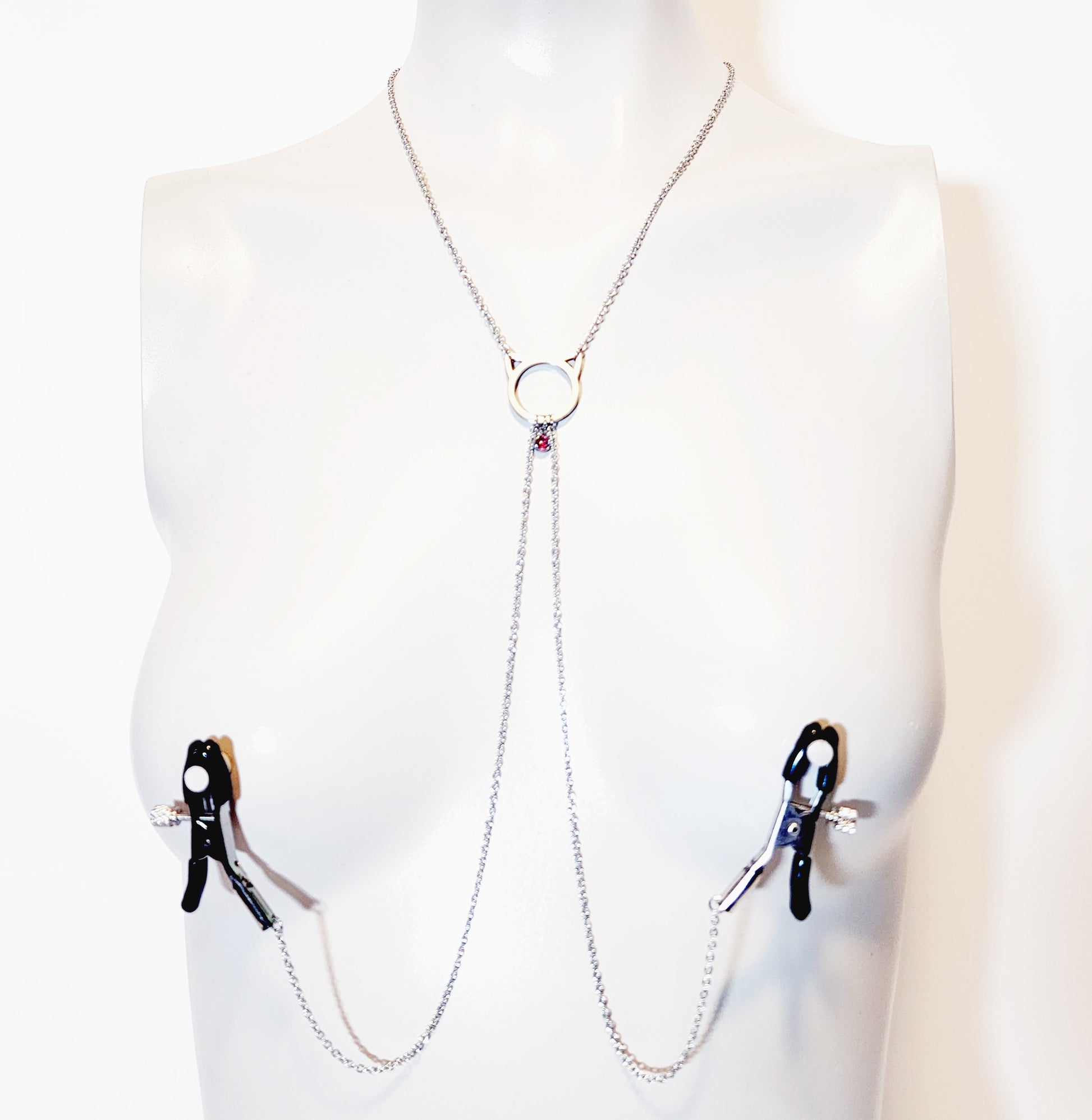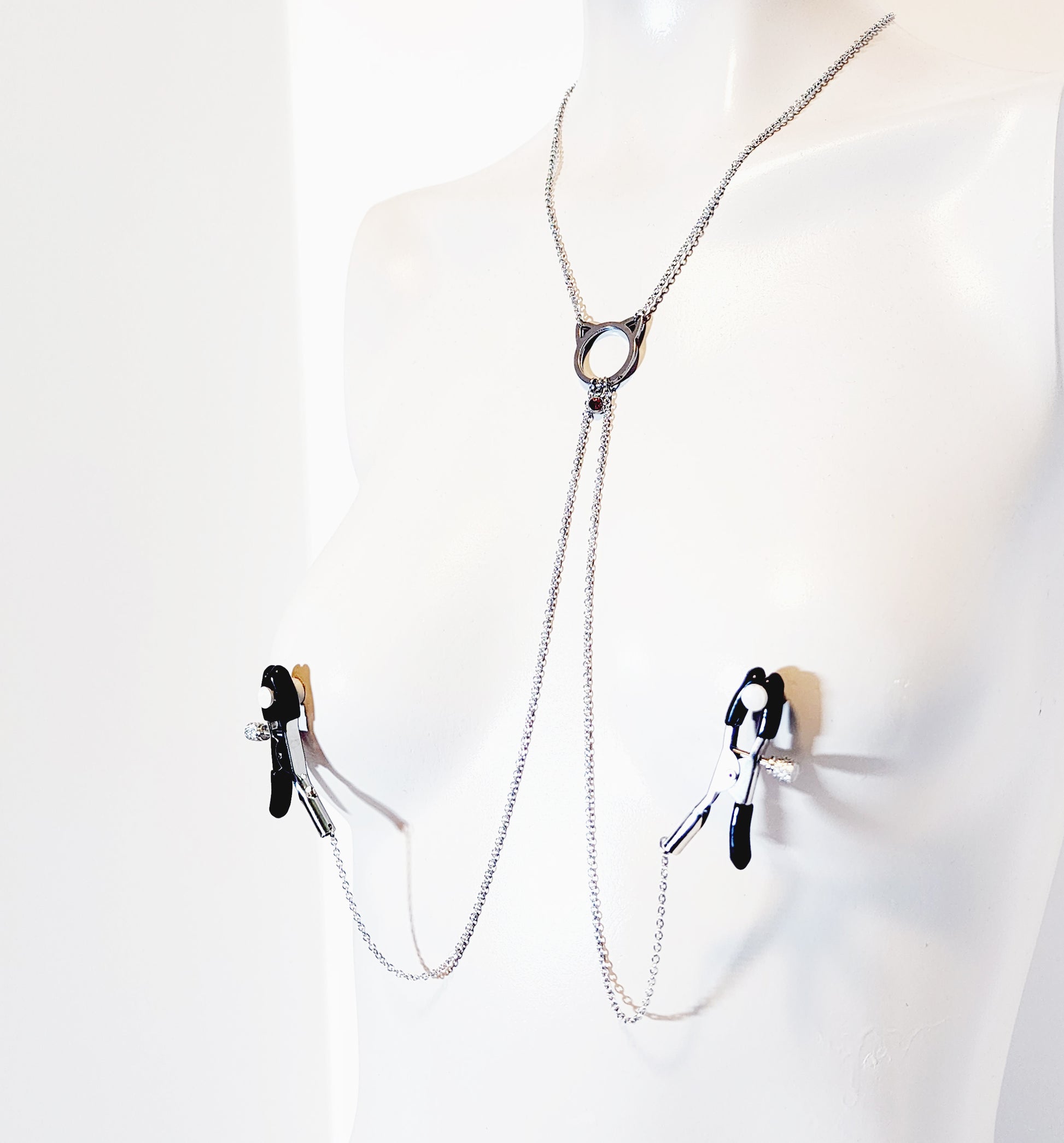 Tarnish Resistant Kitten Necklace with Chain Attached Non-Piercing Nipple Nooses or choose to feel the sting with your choice of Nipple Clamps.๐