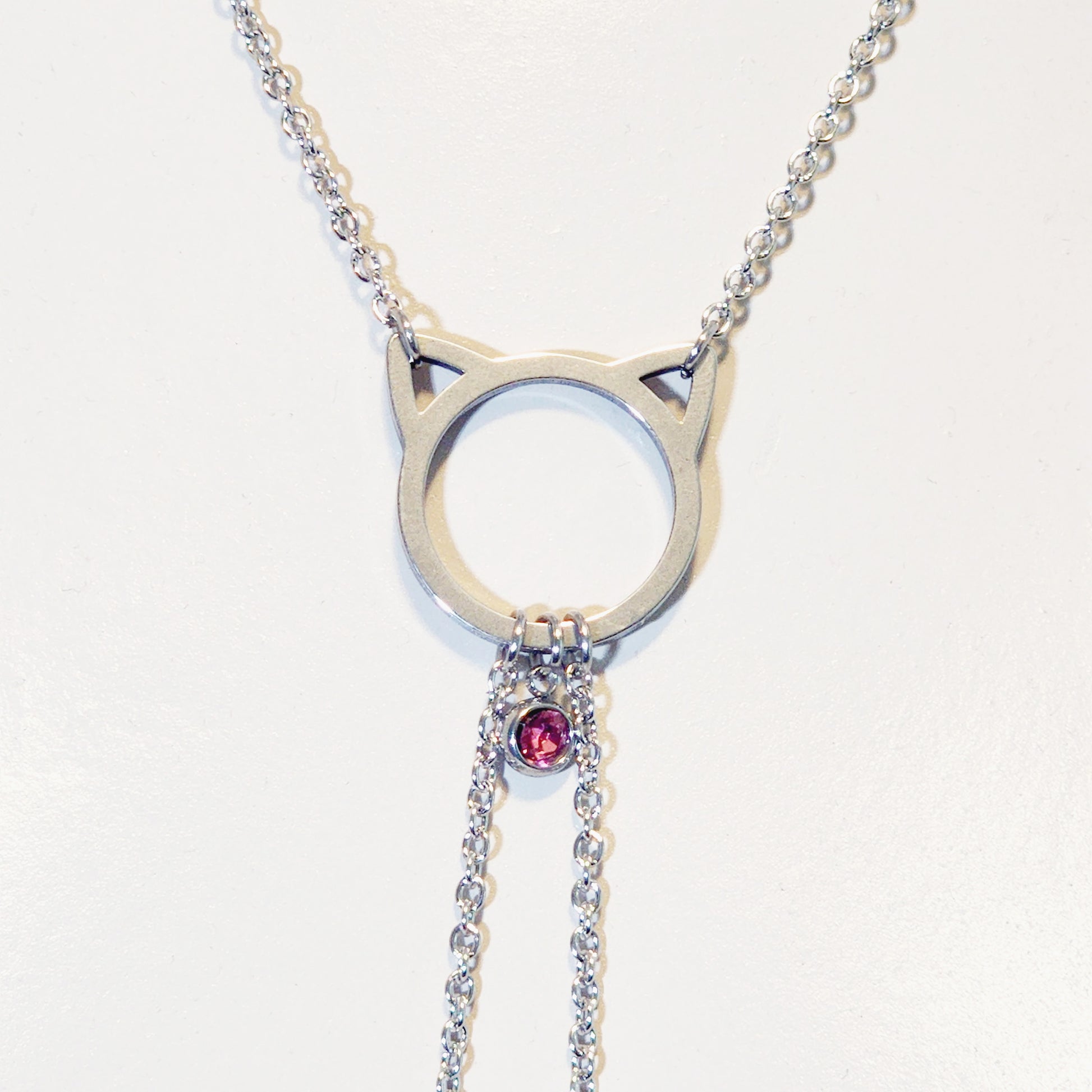 Kitten Necklace to Nipple, Stainless Steel with Gemstone