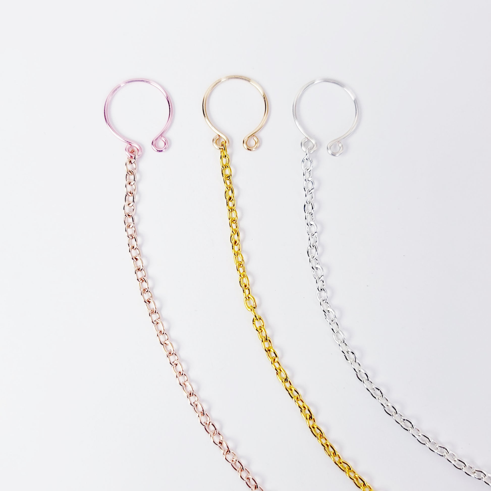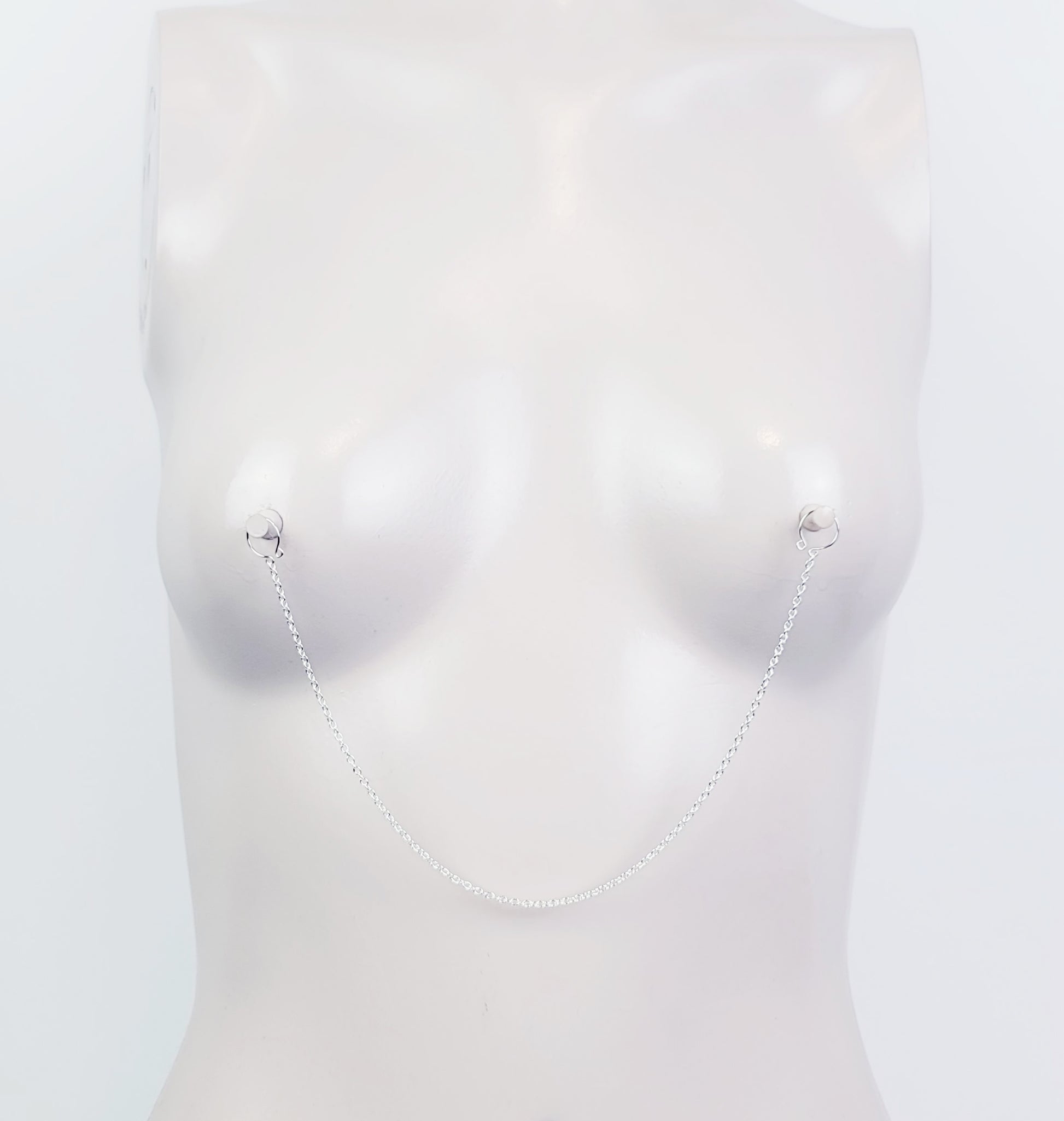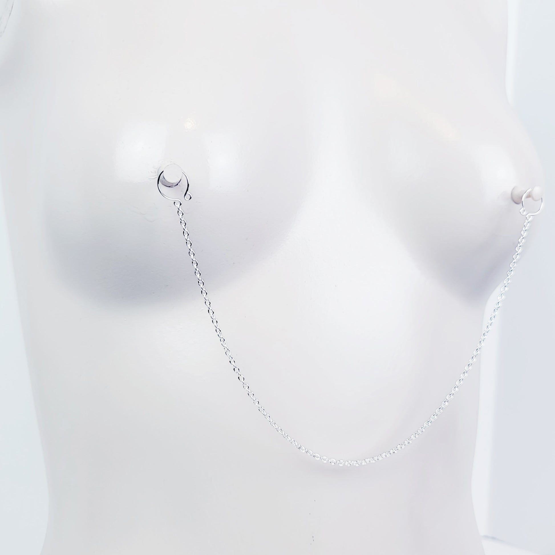 Nipple Chain with Non Piercing Nipple Rings in Silver, Gold, or Rose Gold. Erotic Intimate Body Jewelry for Women.