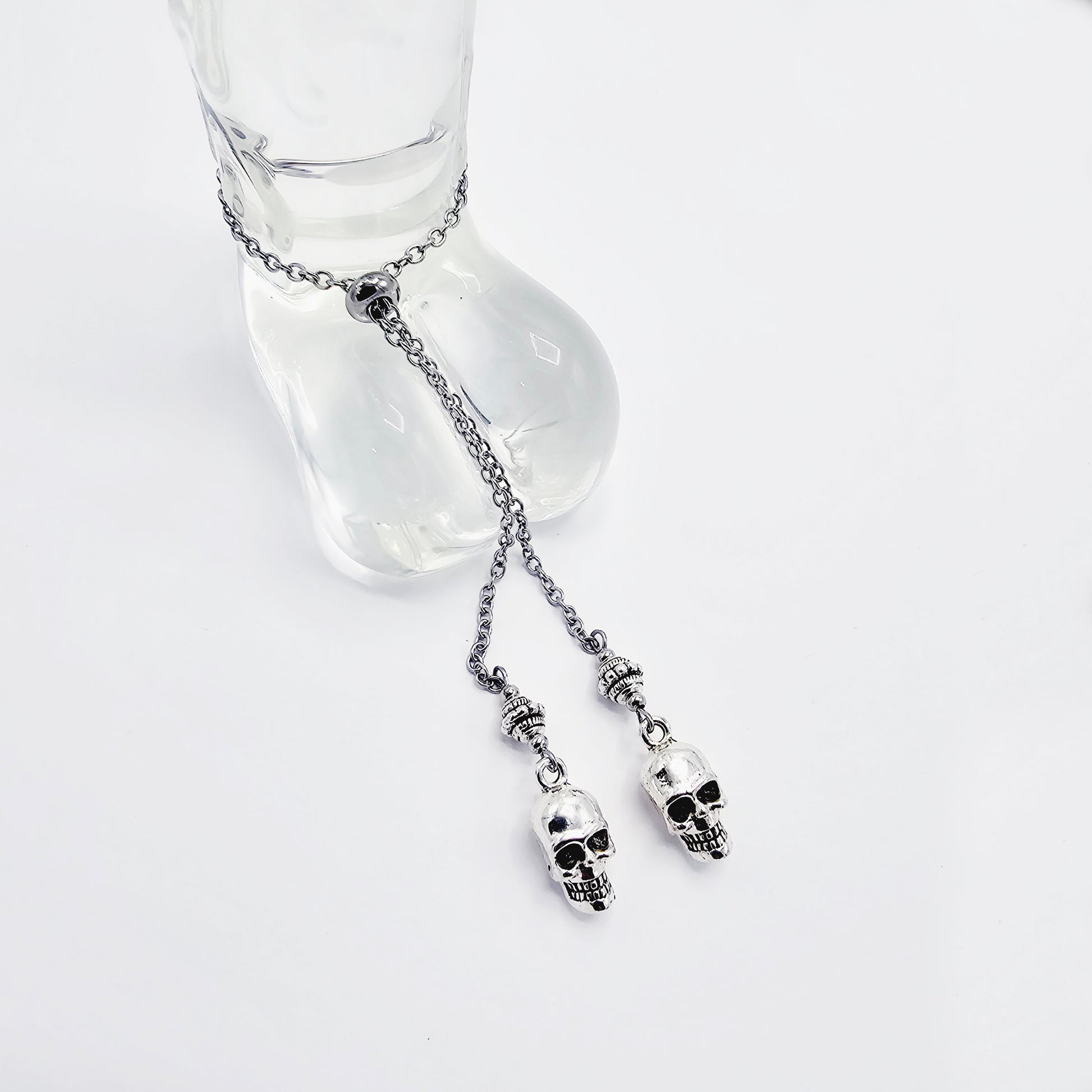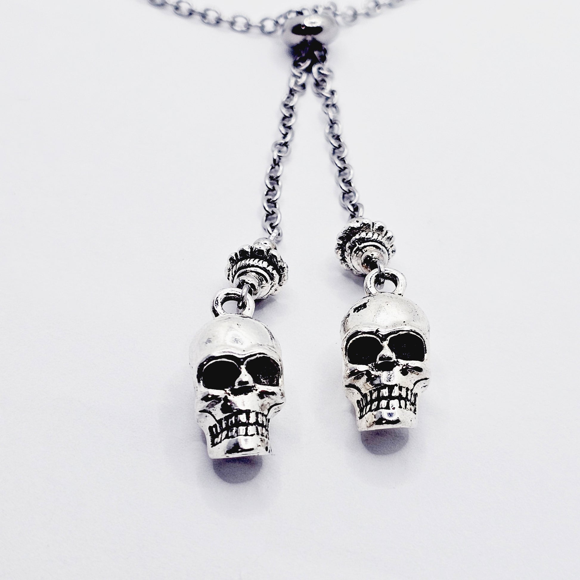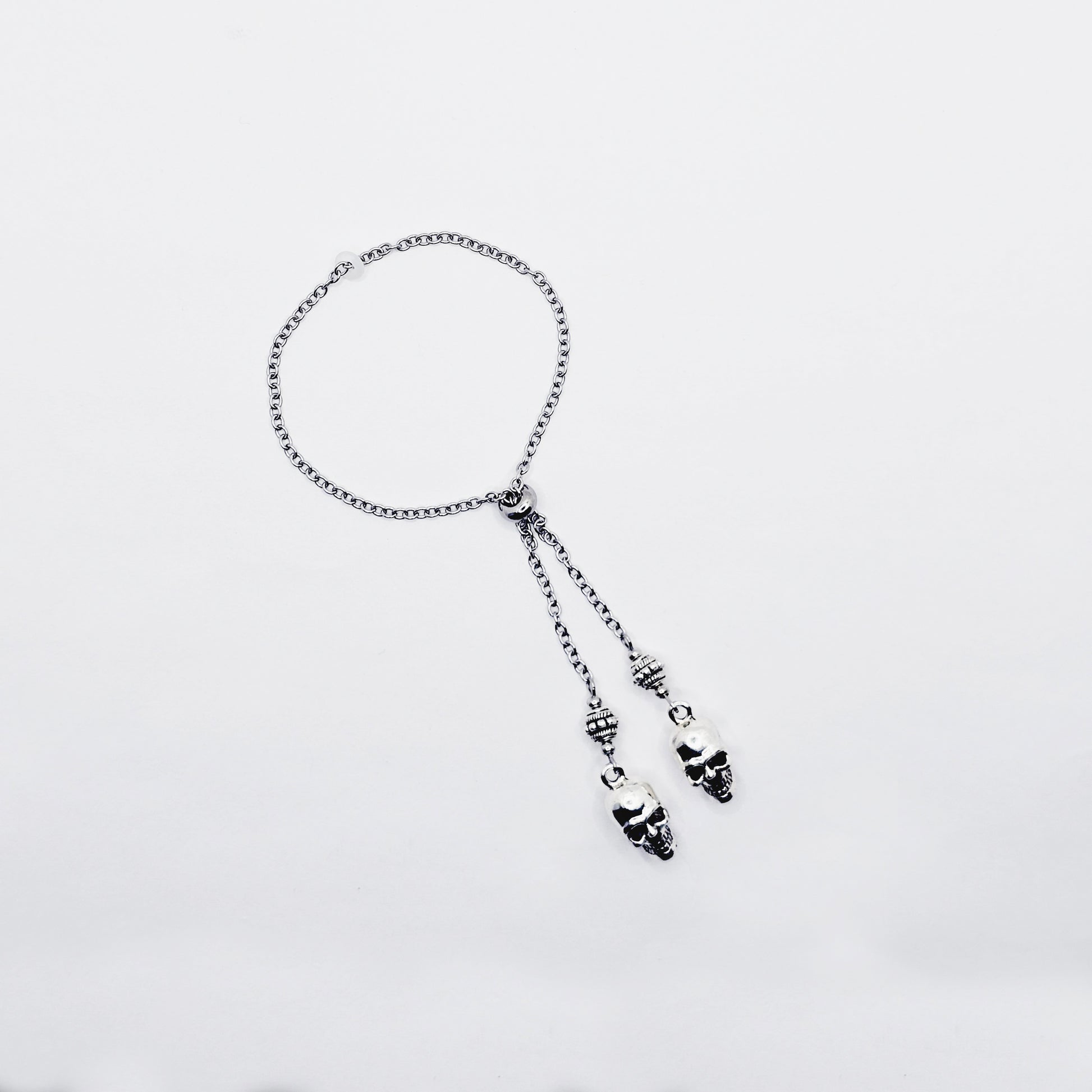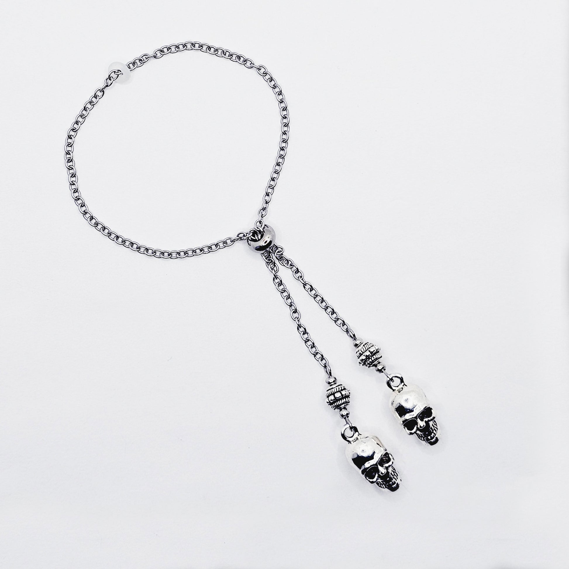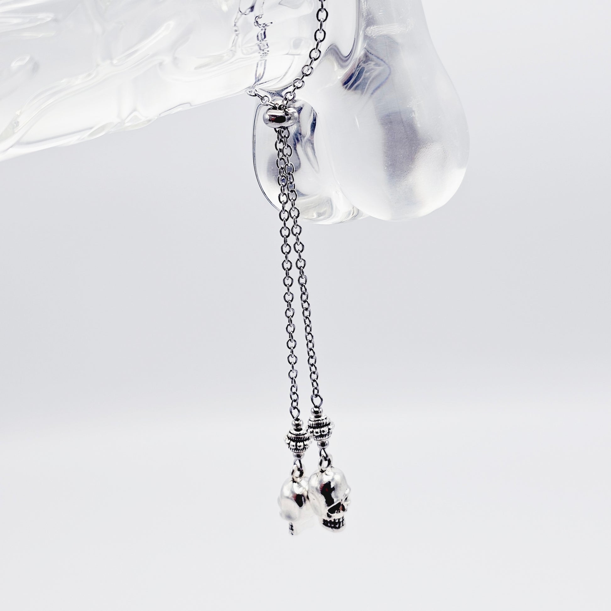 Penis Chain Noose Cock Ring Bracelet with Skulls. Cock and Ball Tassel. One size fits most. Versatile wear. Featuring Stainless Steel Chain and Solid Zinc Alloy Skulls for a little weight to heighten your senses.