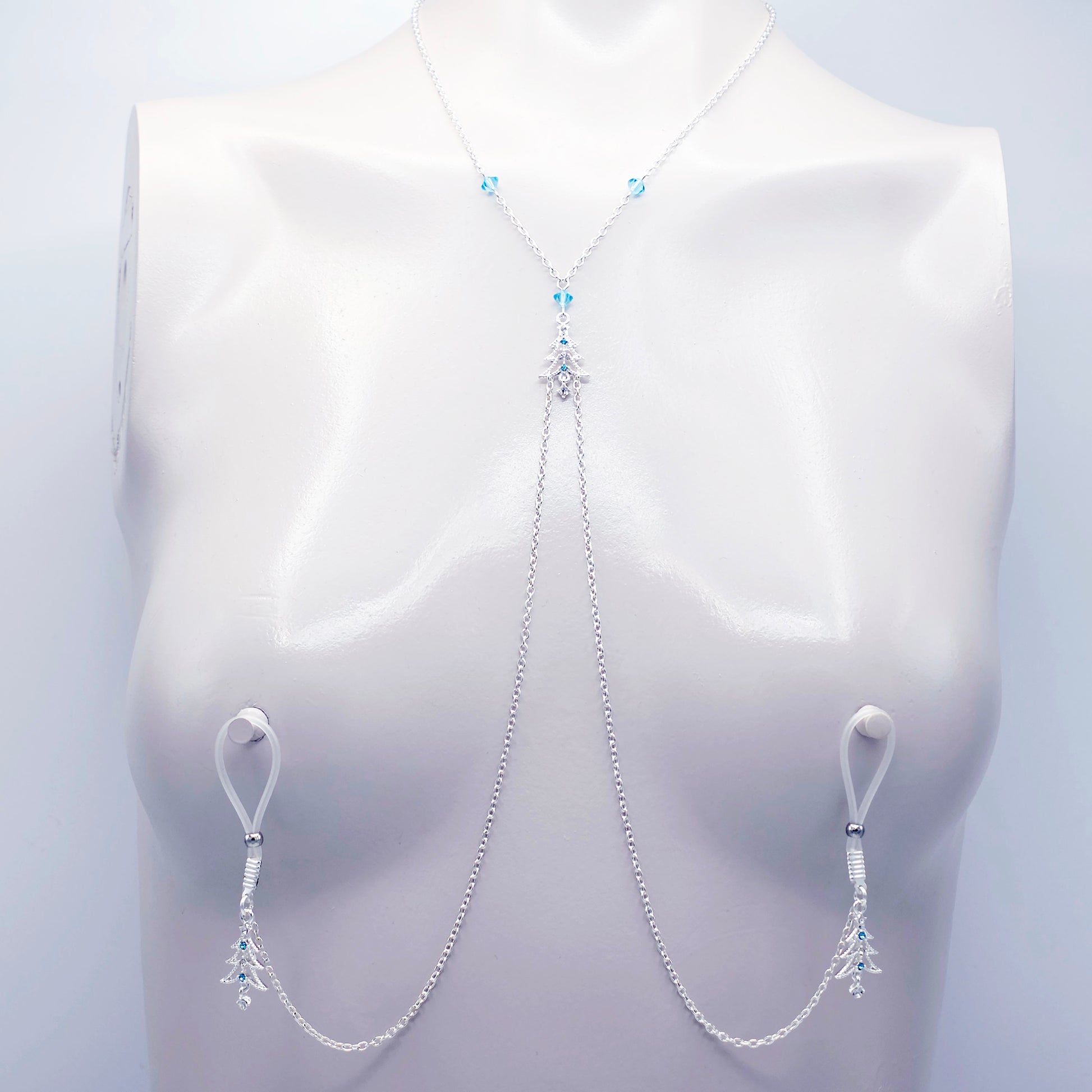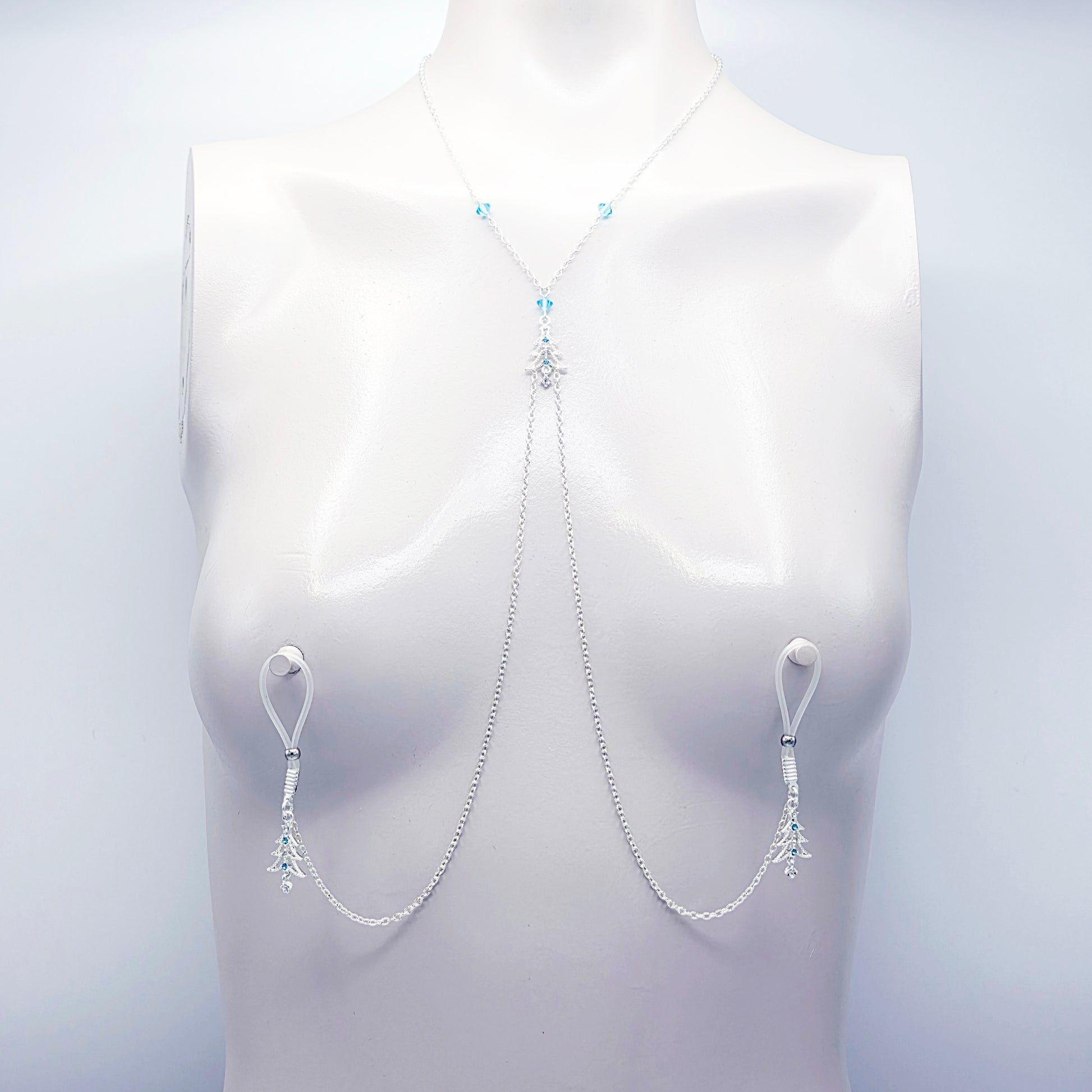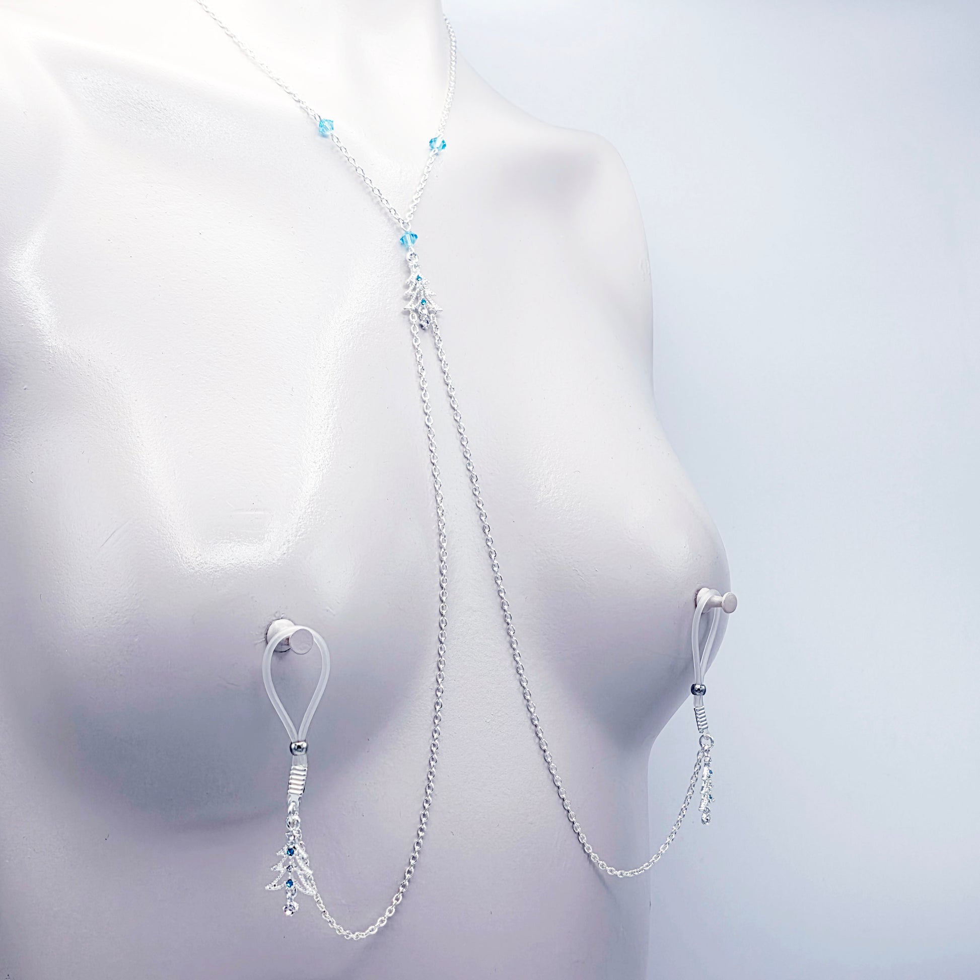 Christmas Necklace to Nipple with Blue Crystals, and Your Choice of Nipple Attachment