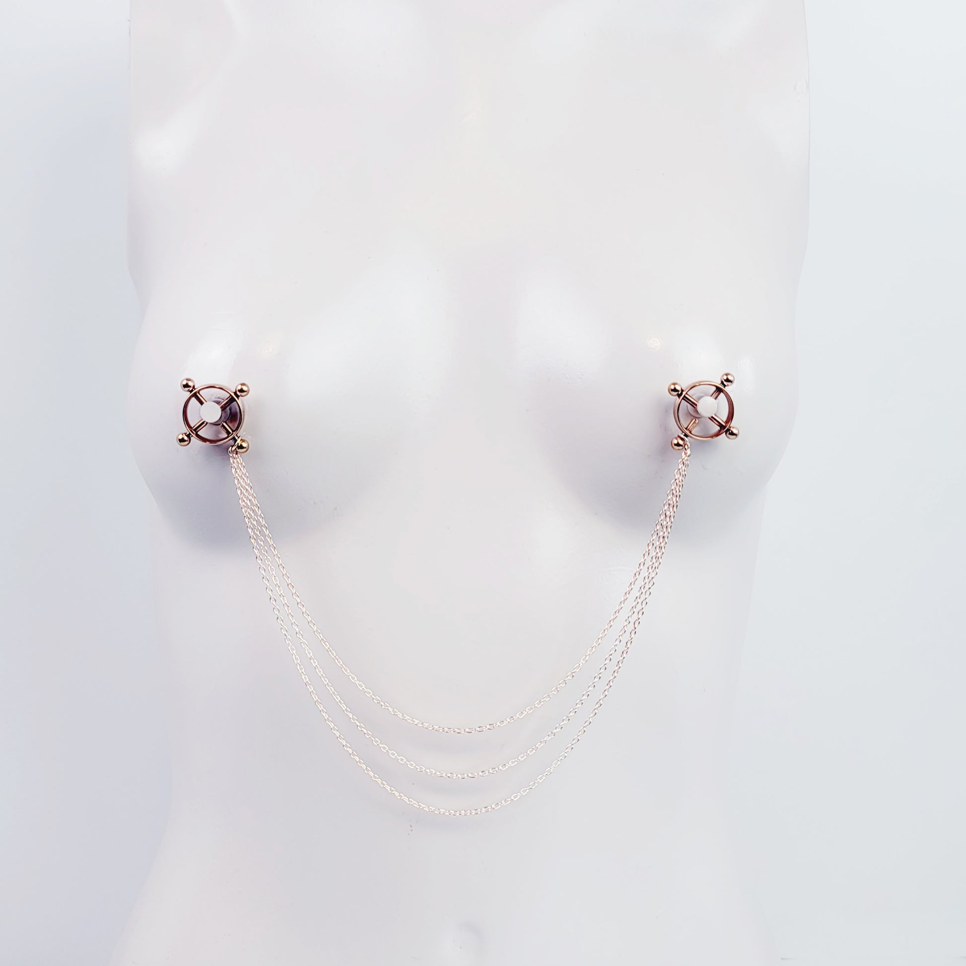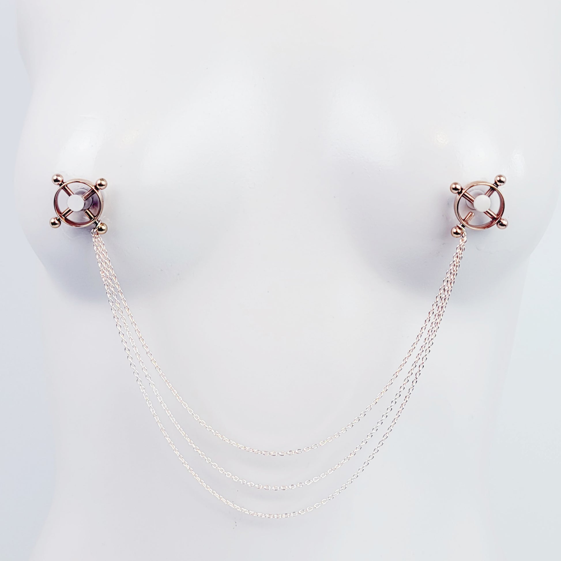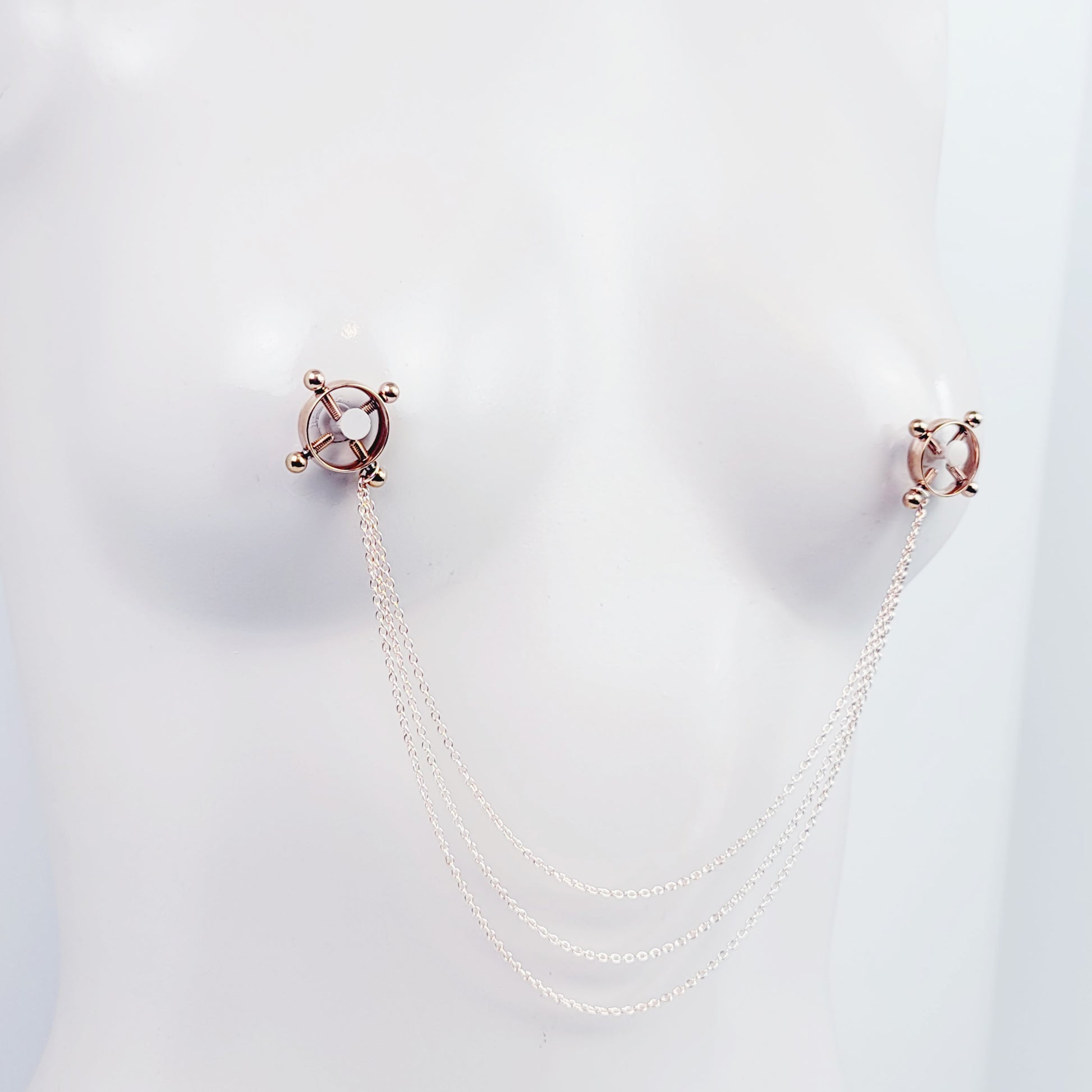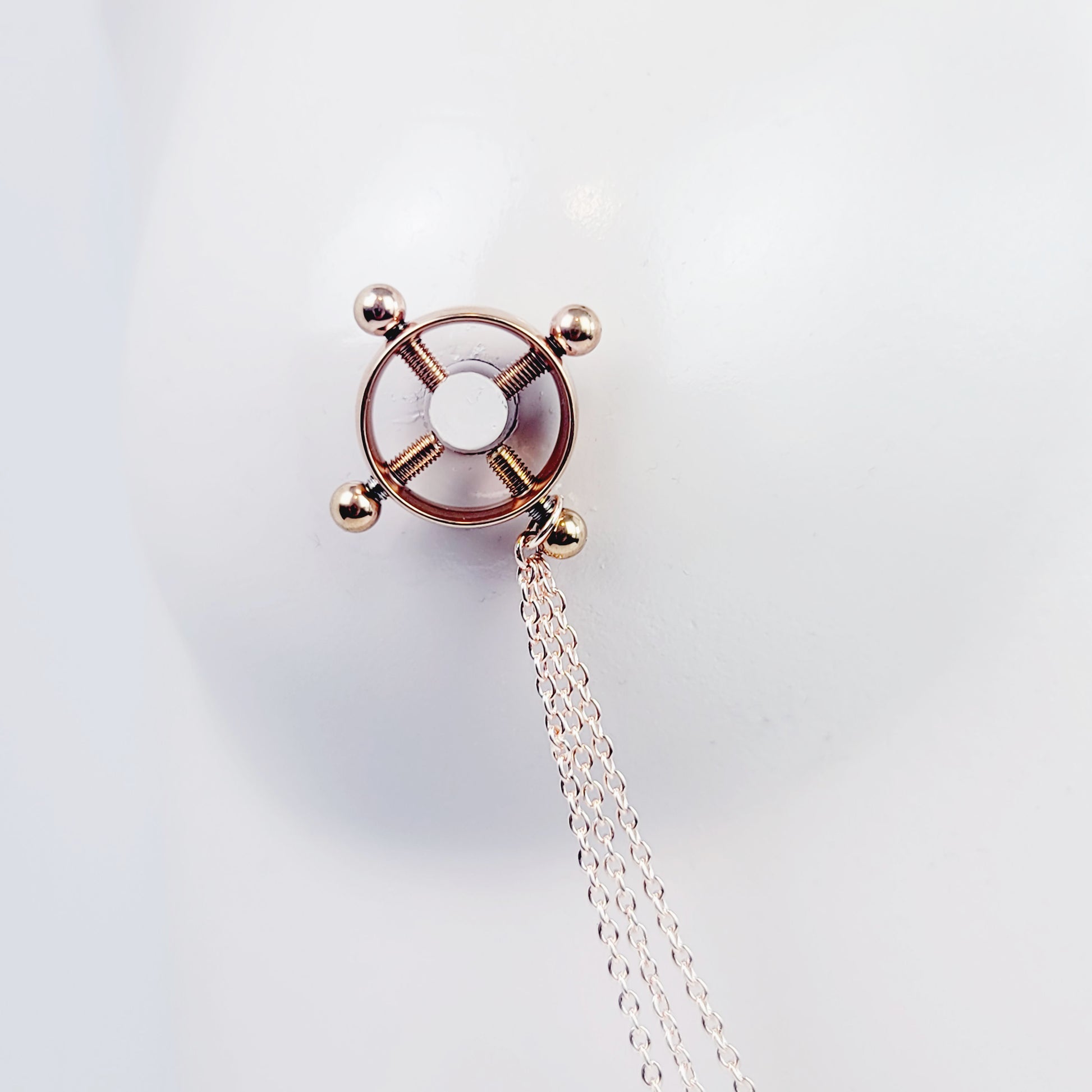 Circle Nipple Clamps, Gold, Rose Gold, Rainbow, Silver, or Black, Triple Chain Attached. Nipple Shield Adjustable Screw Clamps. Non Piercing Nipple Chains, Sex Toys for Women.