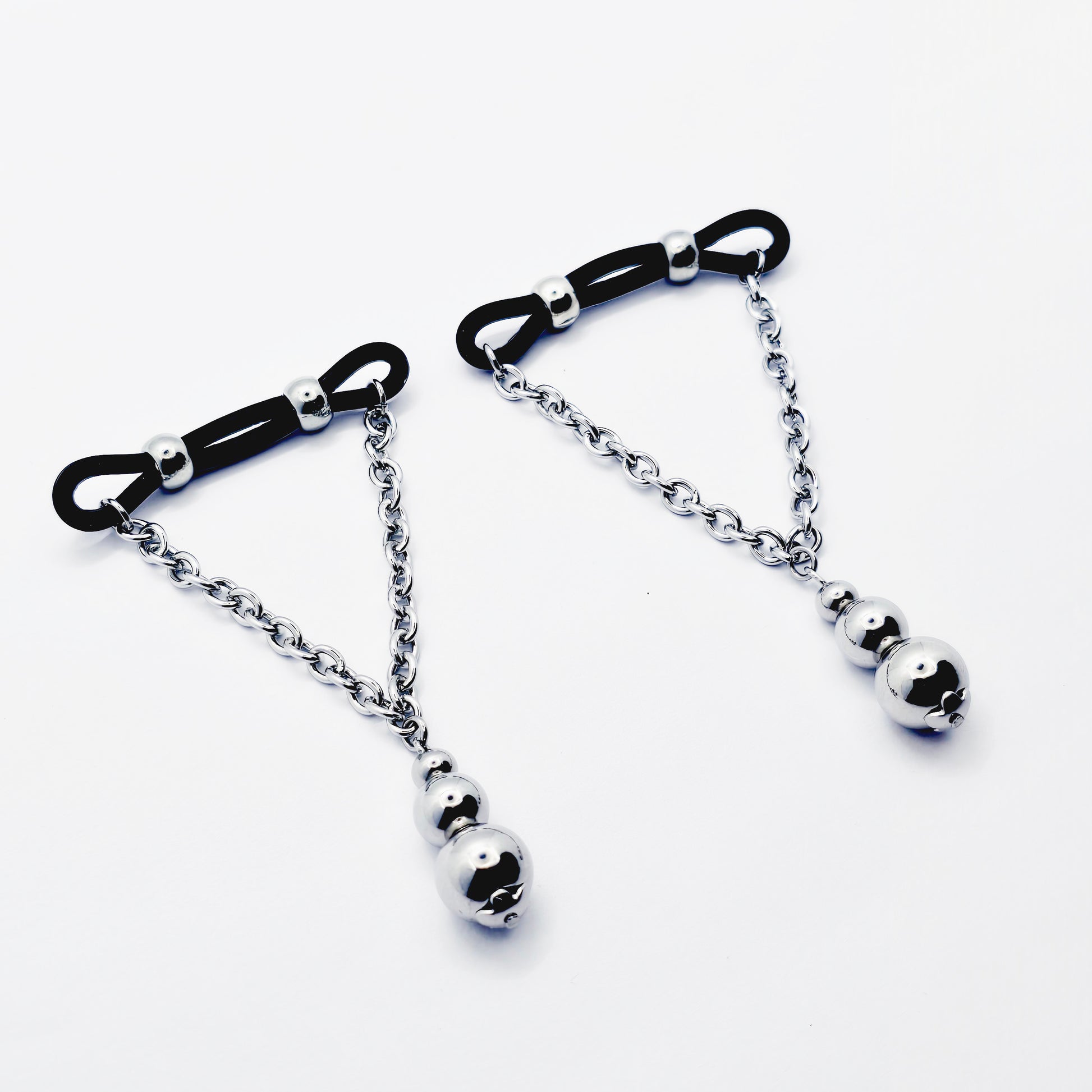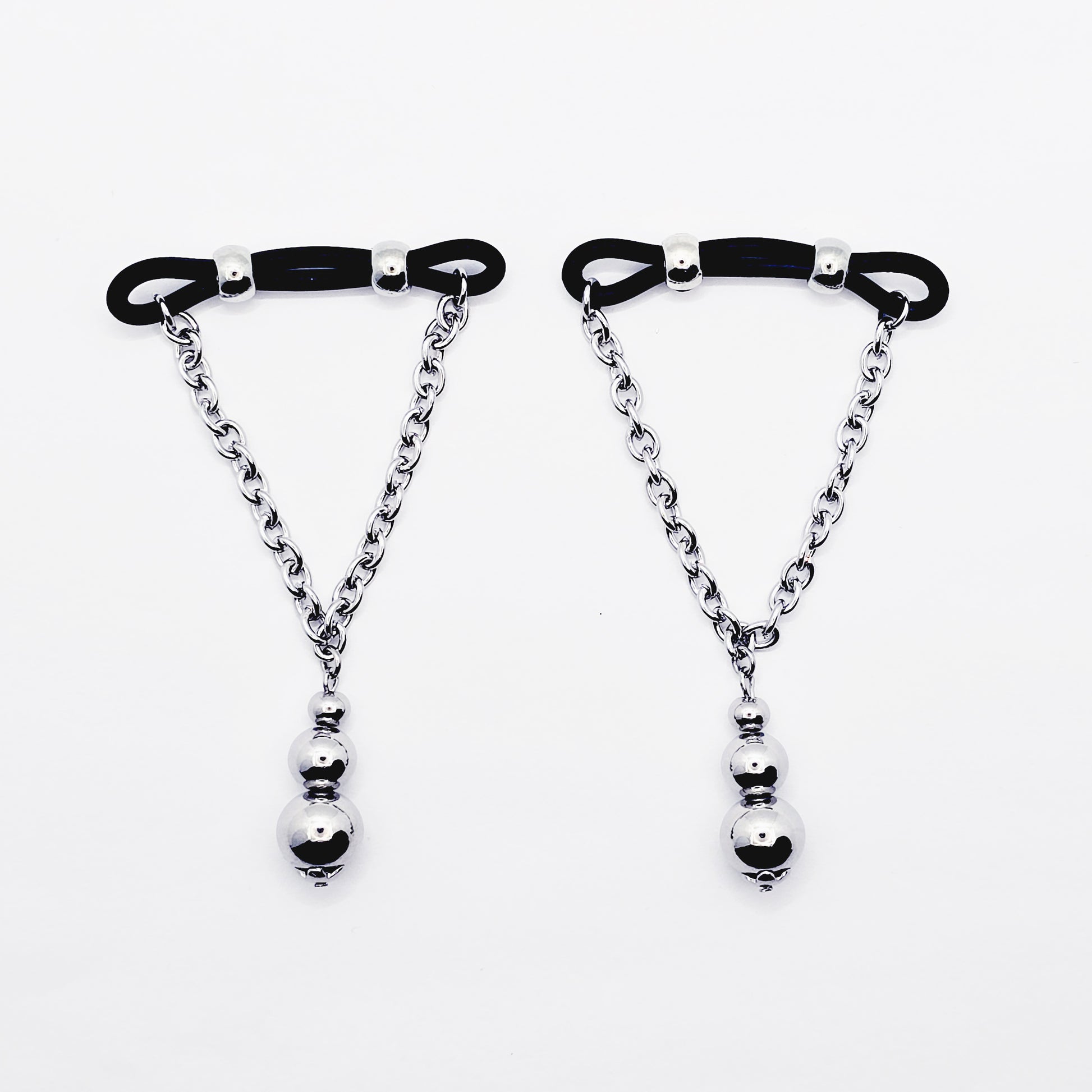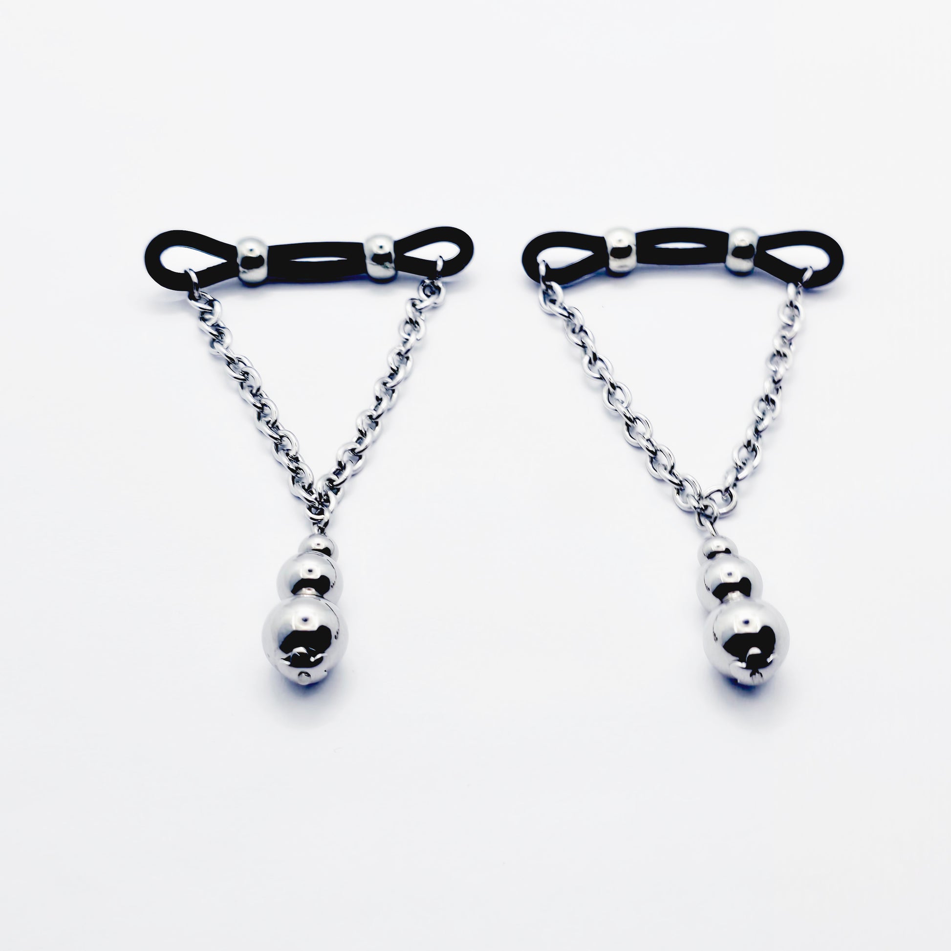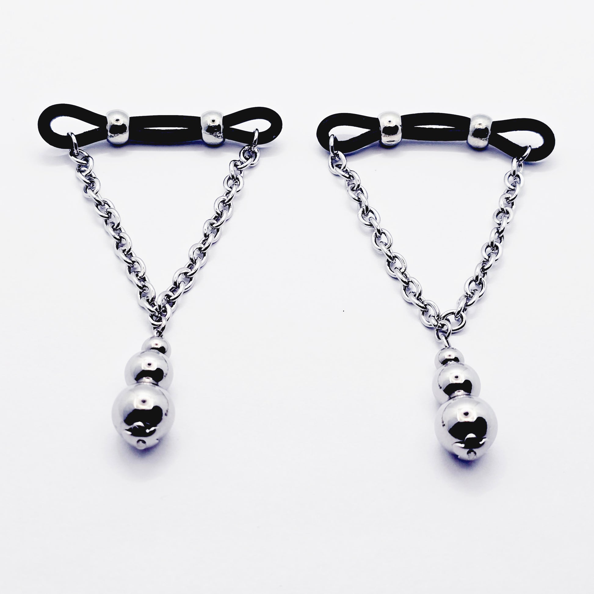 Unisex Non-Piercing Barbell Style Nipple Nooses with Stainless Steel Chain and Beads.ย