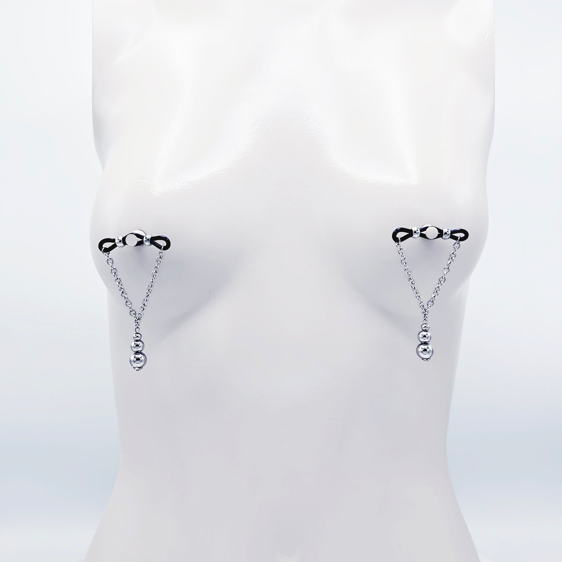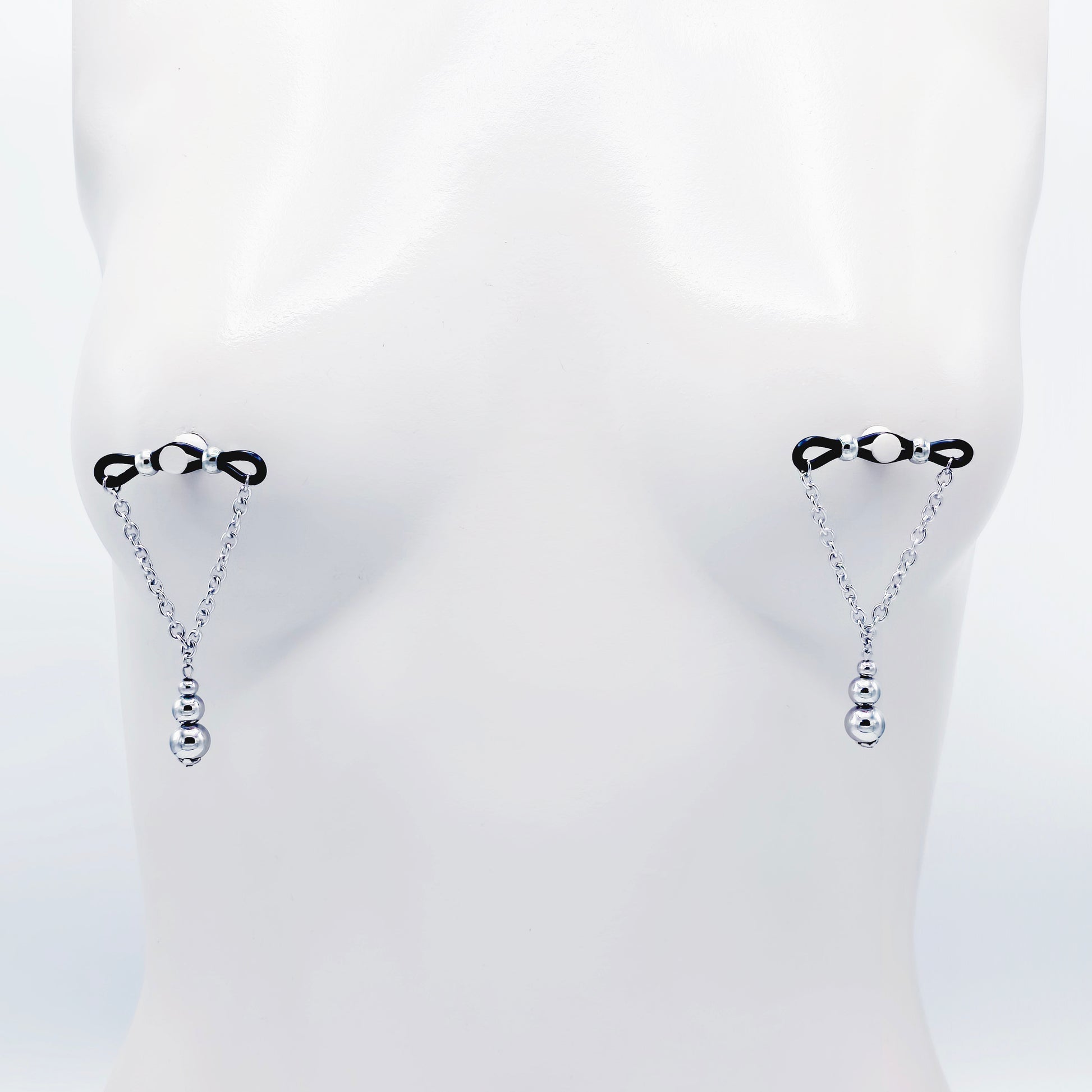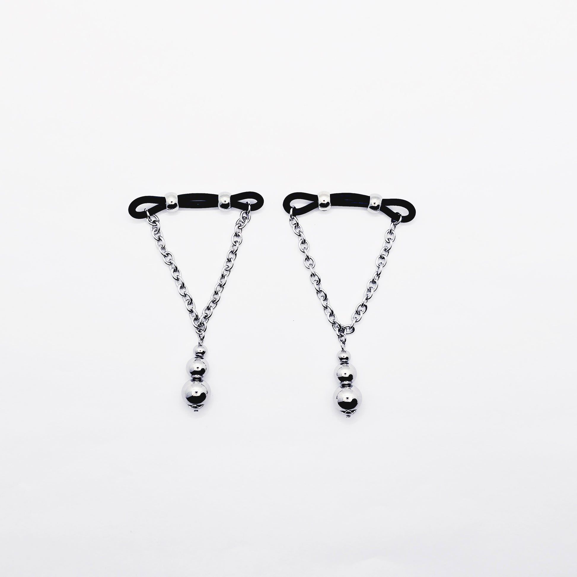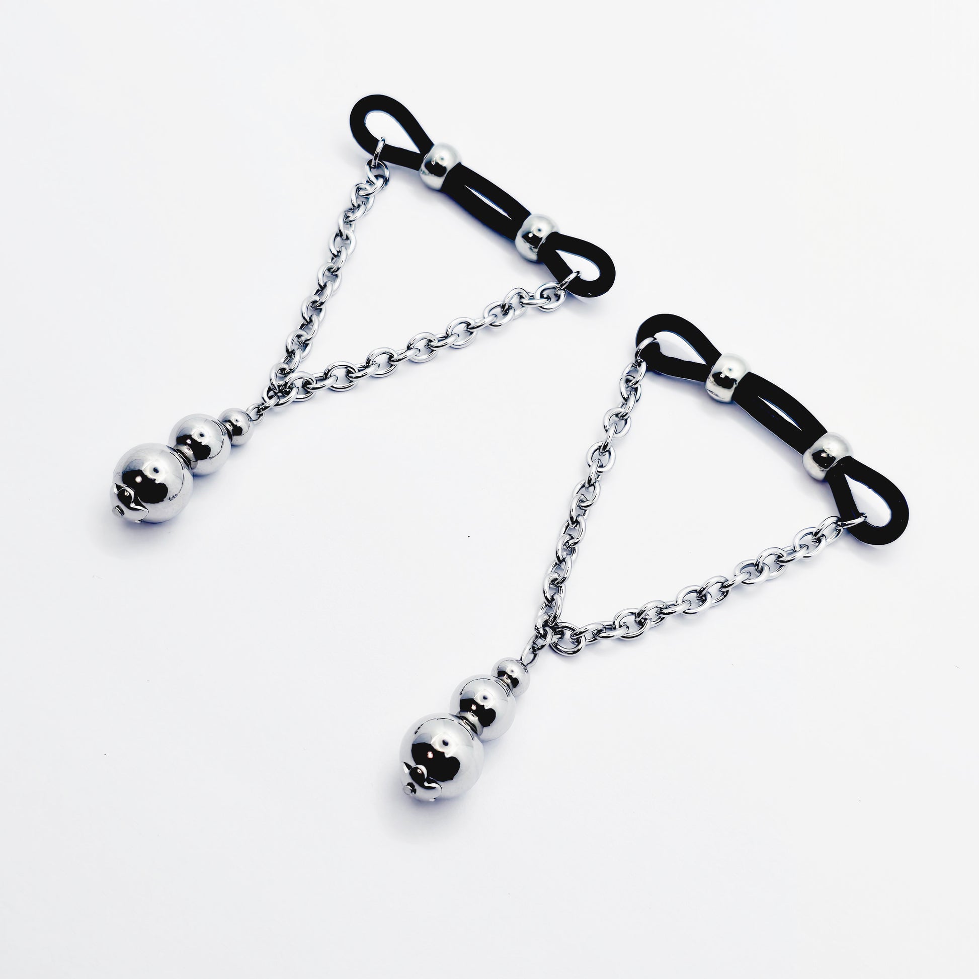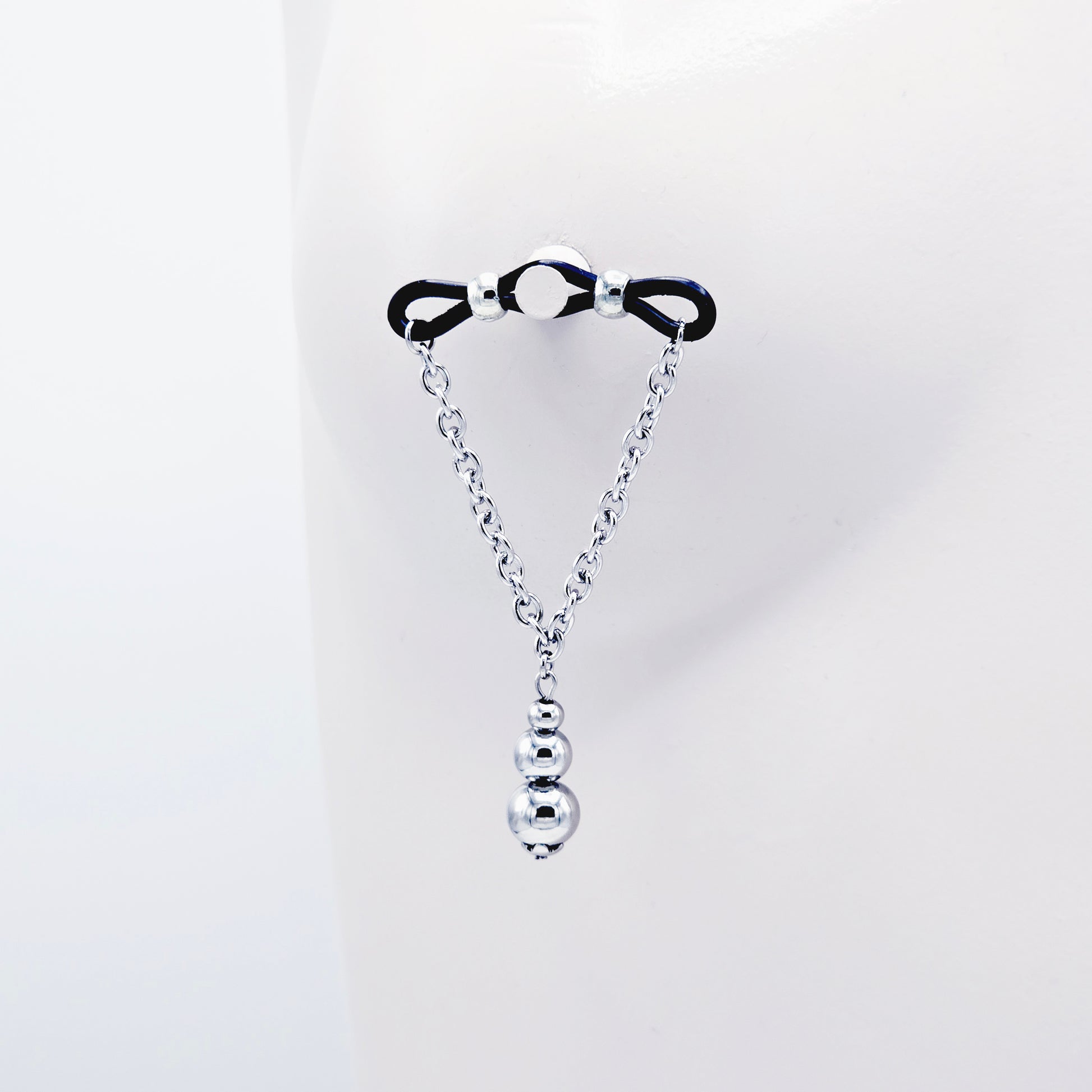 Unisex Non-Piercing Barbell Style Nipple Nooses with Stainless Steel Chain and Beads.ย