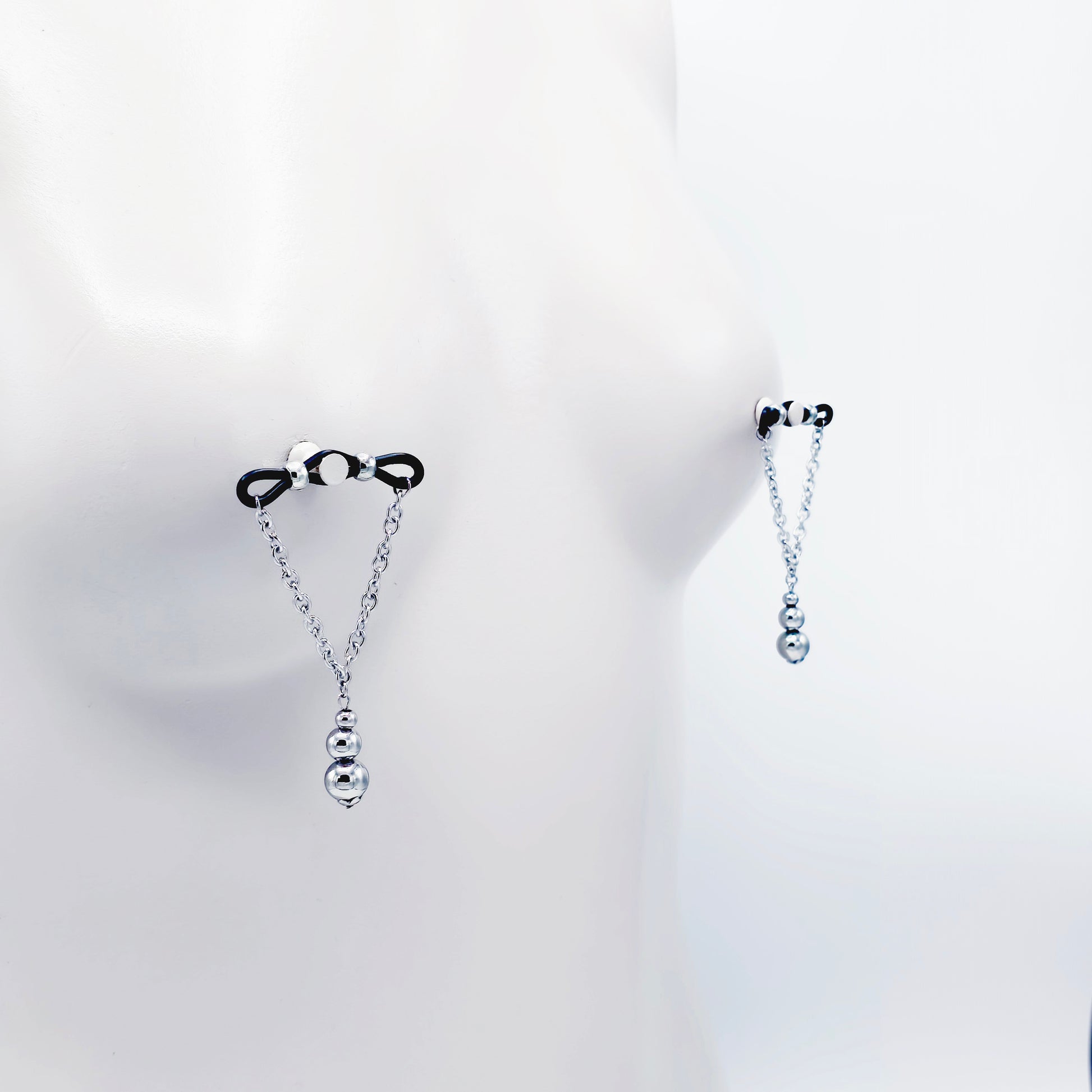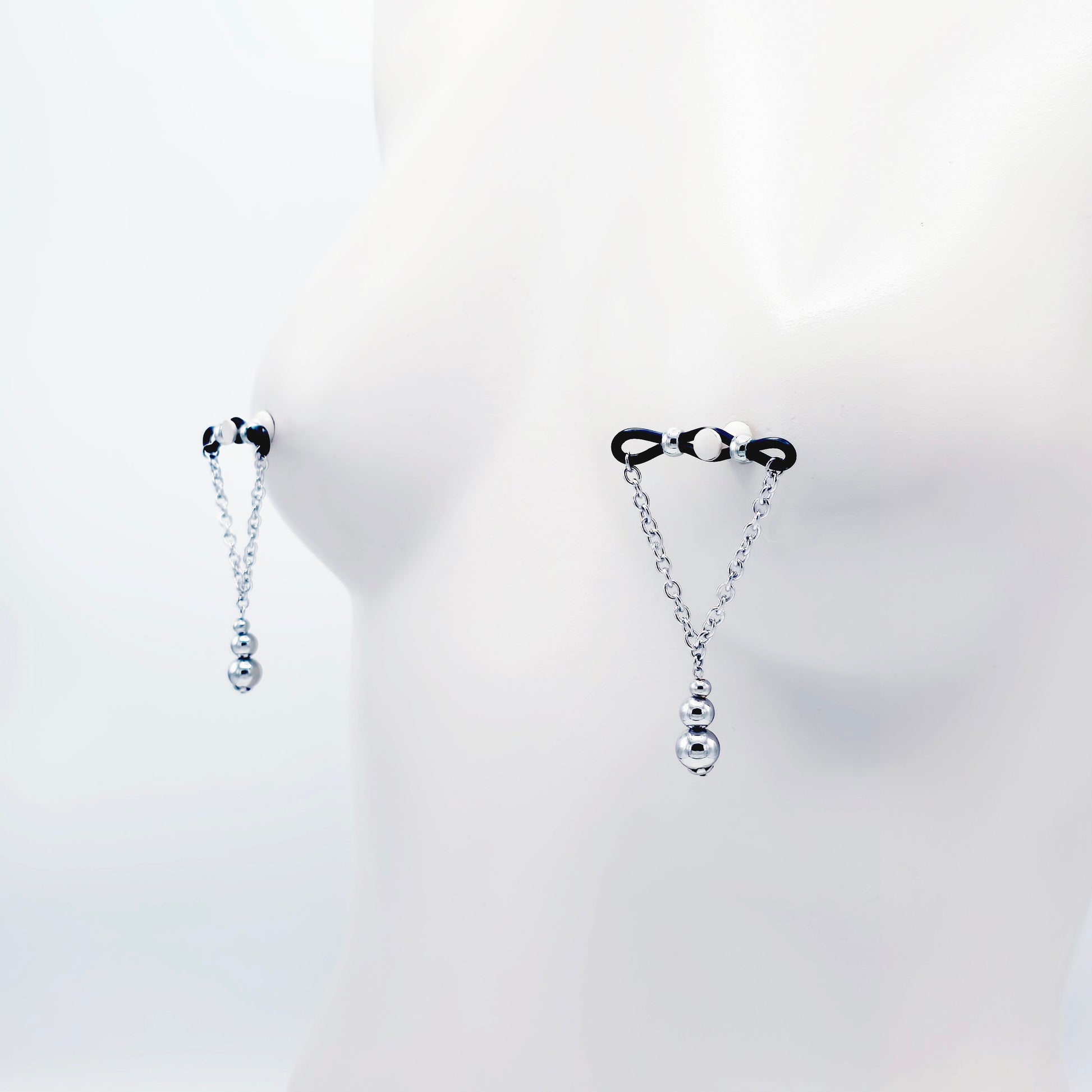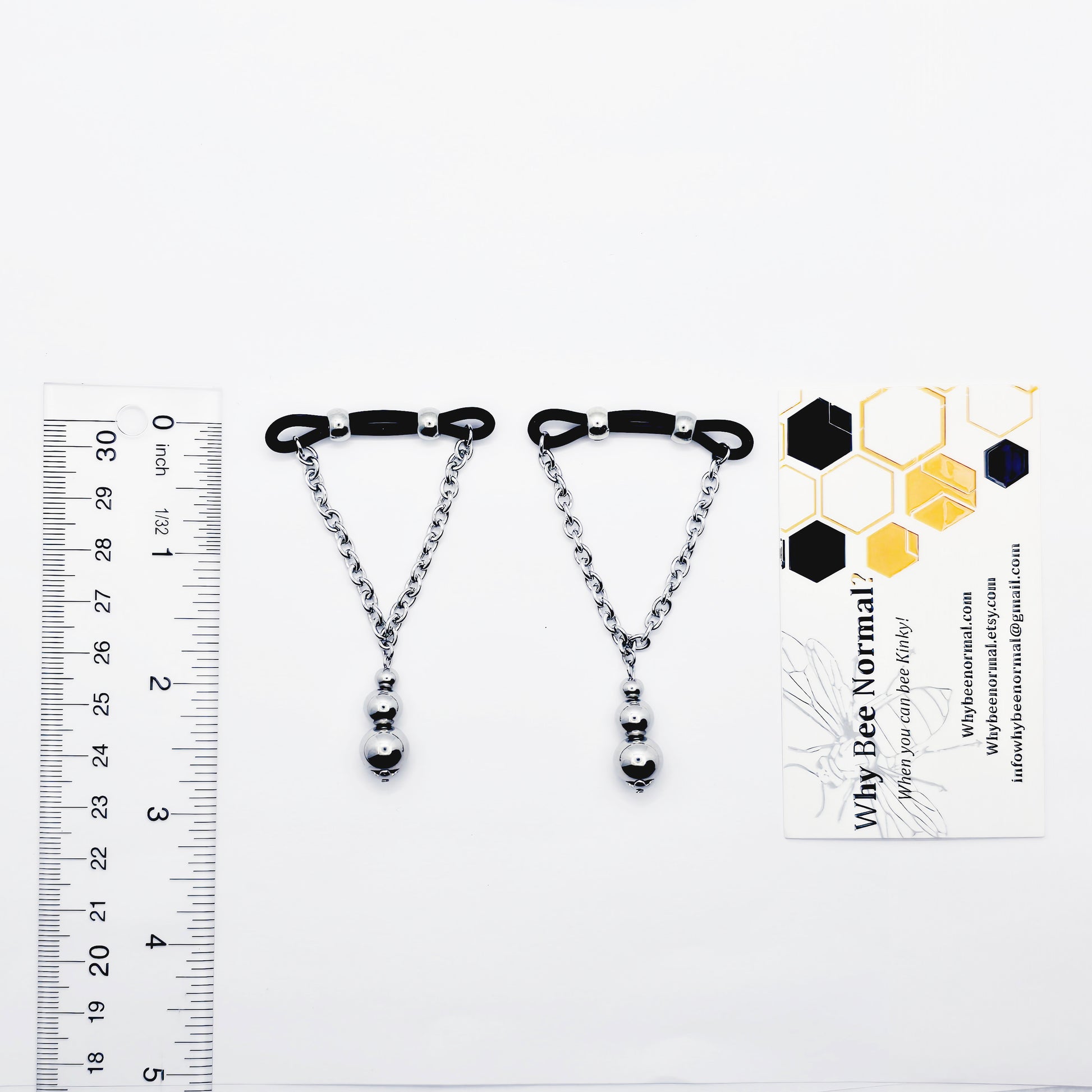 Fake Nipple Piercings with Stainless Steel Chain and Weighted Beads, Nipple Noose Barbells. Unisex MATURE Body Jewelry