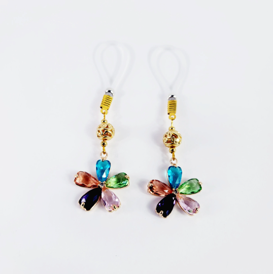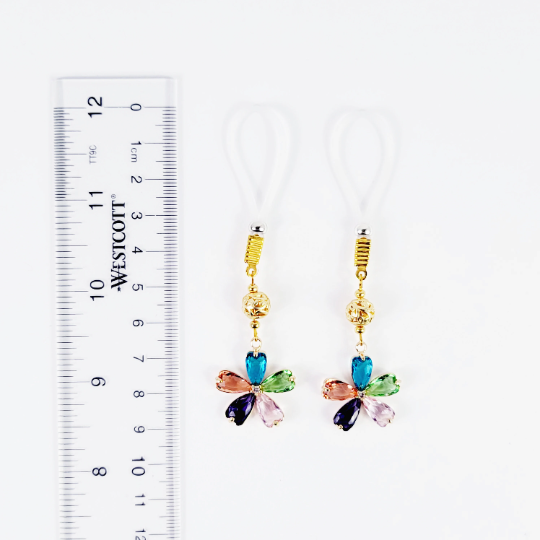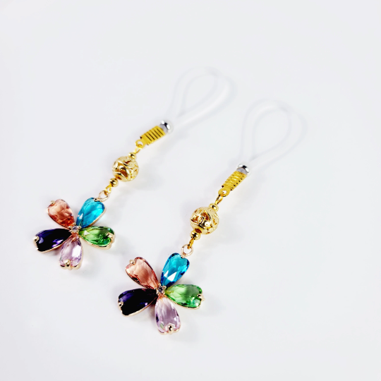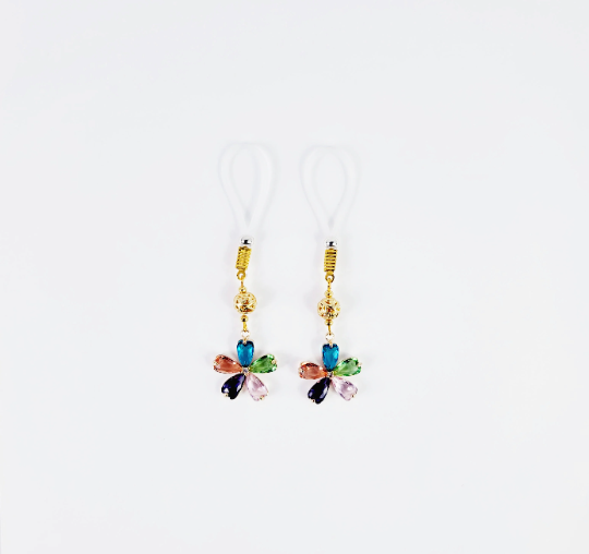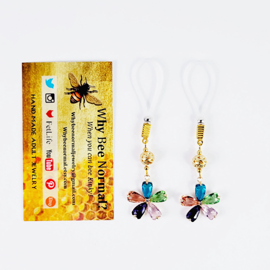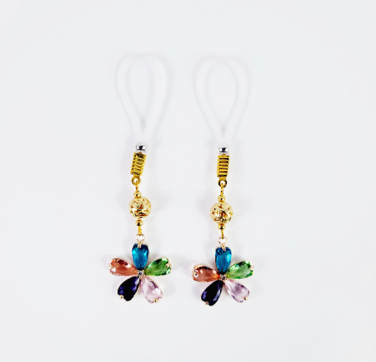 Flower Nipple Dangles on Your Choice of Non Piercing Nipple Nooses or Nipple Clamps. BDSM