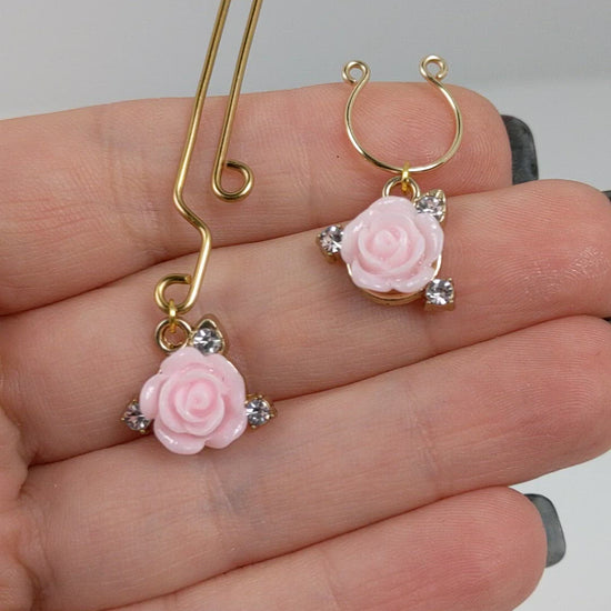 Gold Clit Clip/Labia Clip with Pink Rose and Clear Jewels. Intimate Jewelry, Sex Toy for Women, BDSM Submissive Toy. Kinky Jewelry, Not Pierced.