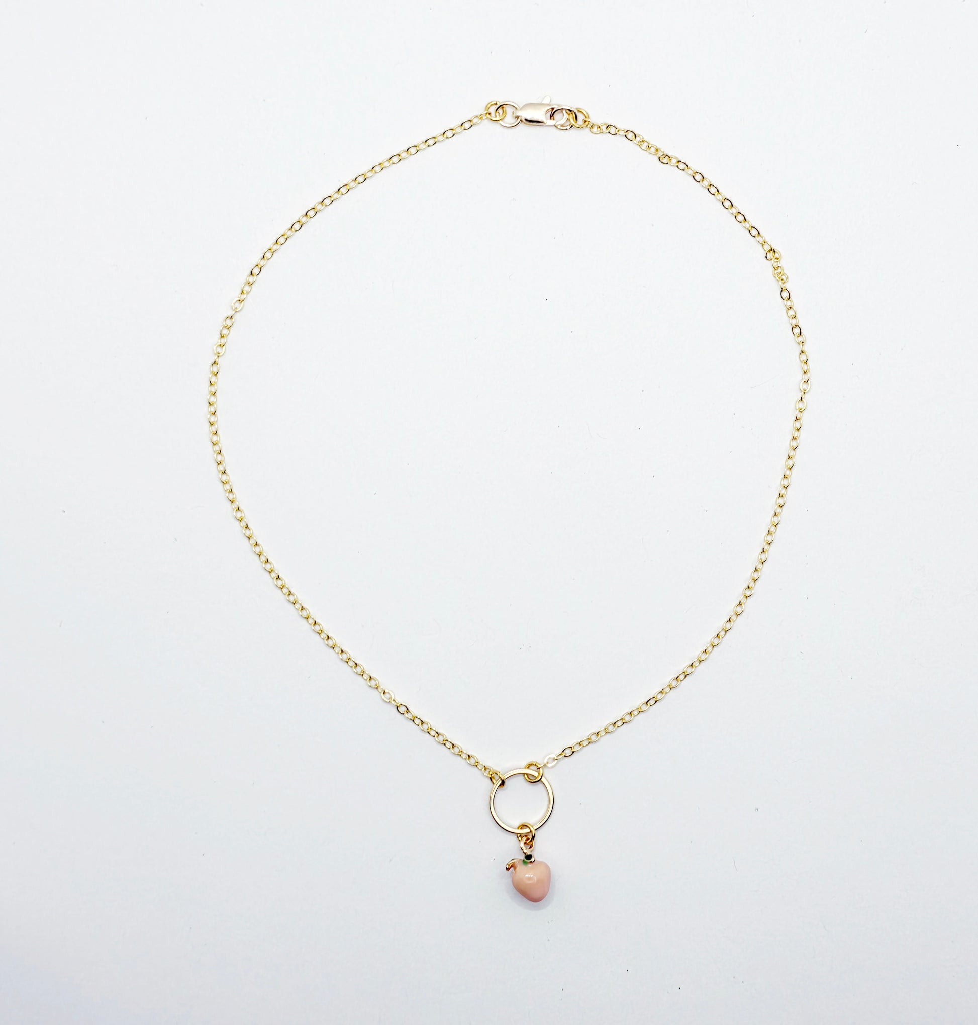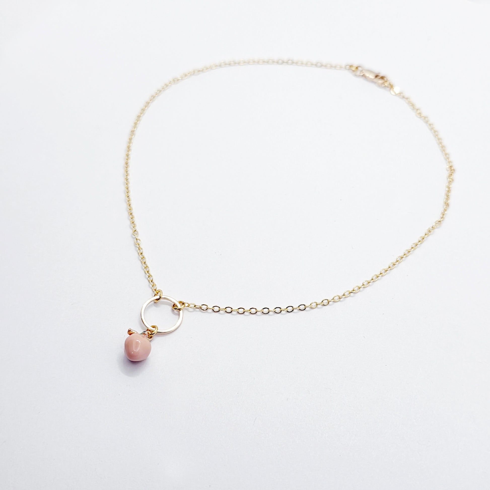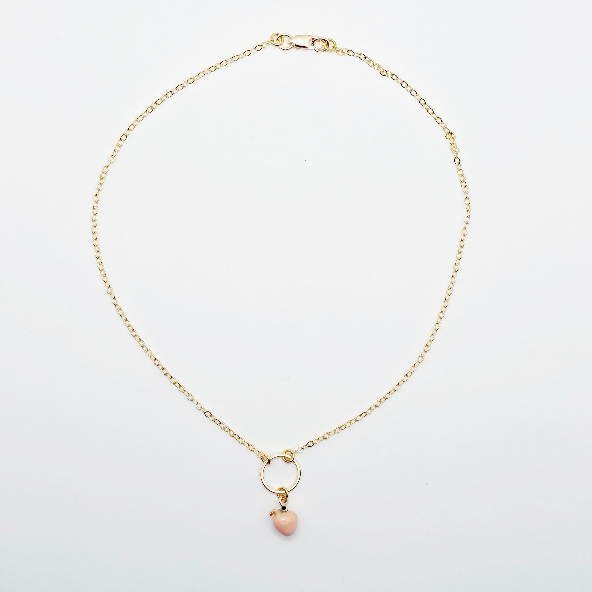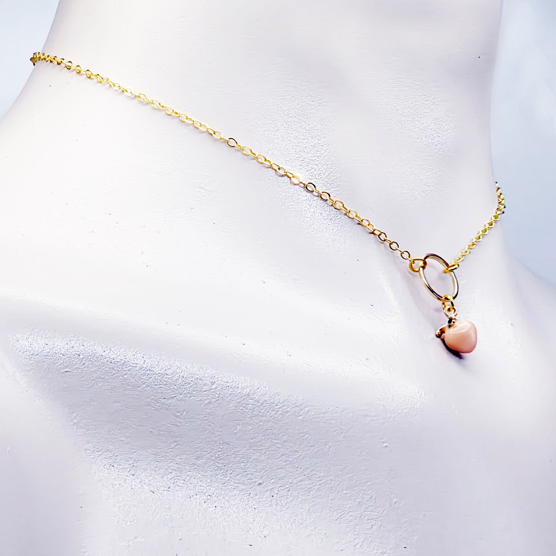 18K Gold Discreet Day Collar for BDSM Submissive, with Peach. Dainty Daywear Choker Necklace for her. An elegant and sweet way to show your affection.ย