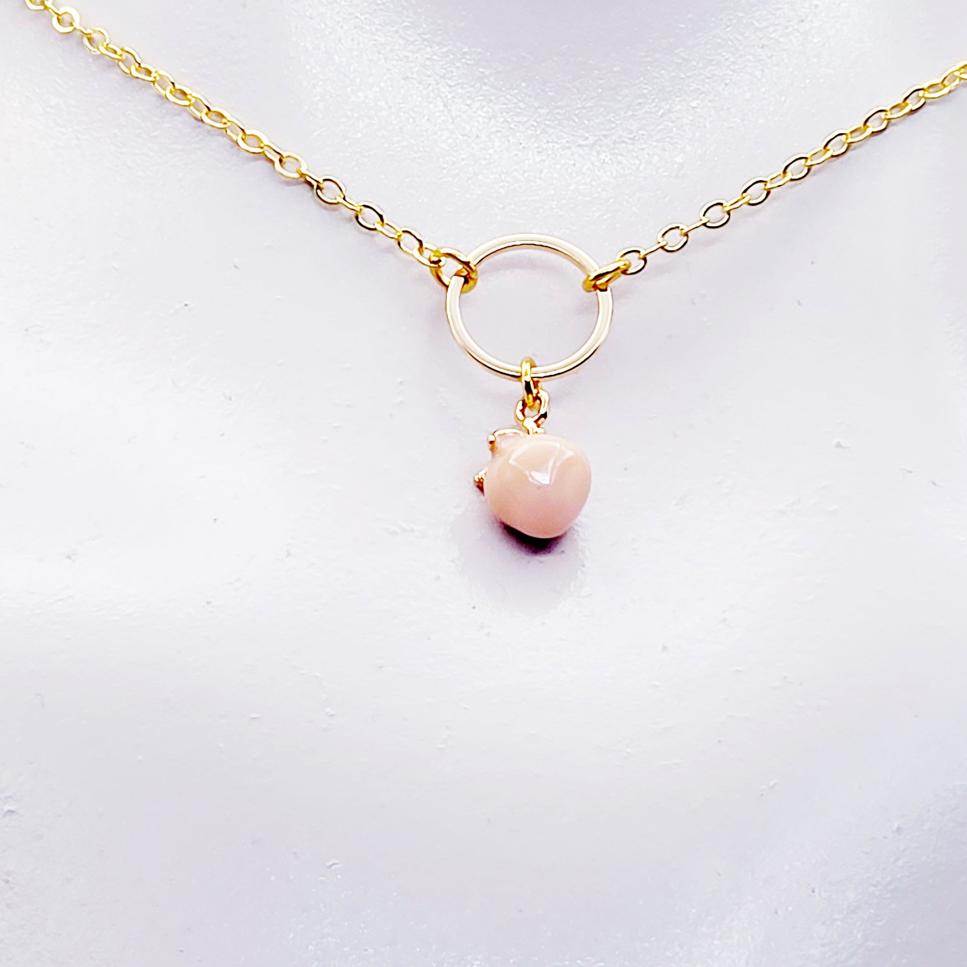 Gold Day Collar with Peach. 18K Gold Circle of O Discreet Collar for BDSM Submissive.