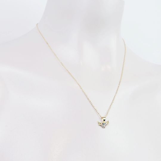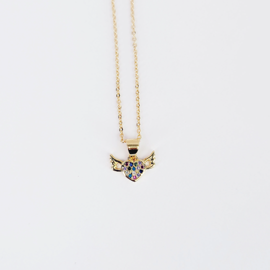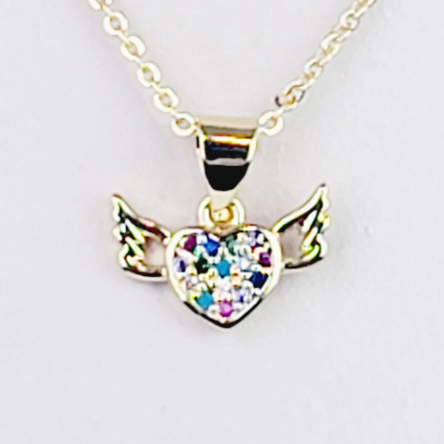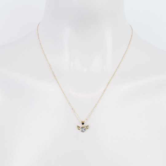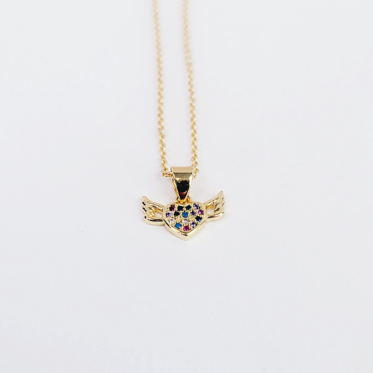 Gold Discreet Day Collar with Gemstone Heart with Wings, 18k Gold. Dainty Discreet Day Collar for BDSM Submissive.