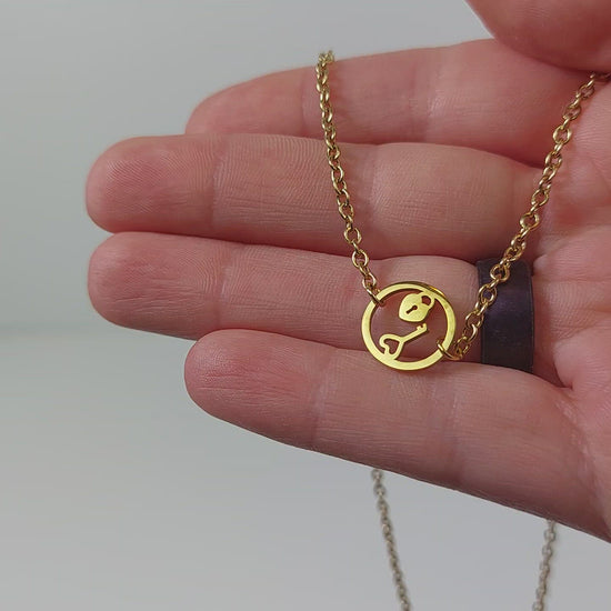 Gold Stainless Steel Discreet Day Collar, Circle of O Pendant with Padlock and Key Design
