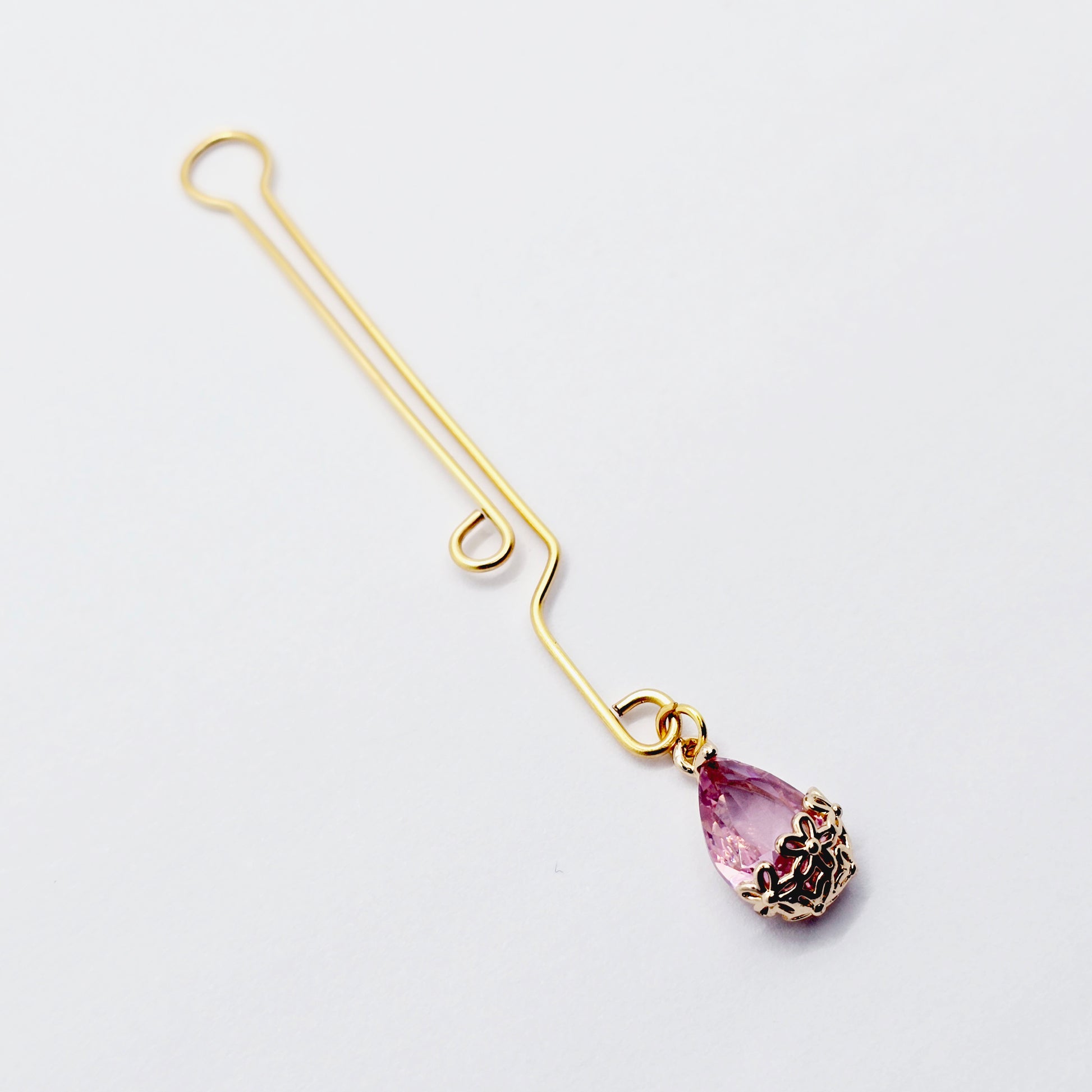 Limited Edition! Introducing our stunning Gold Labia Clip with Pink Cubic Zirconia Gemstone Flower Pendant, the perfect non-piercing genital jewelry for women.