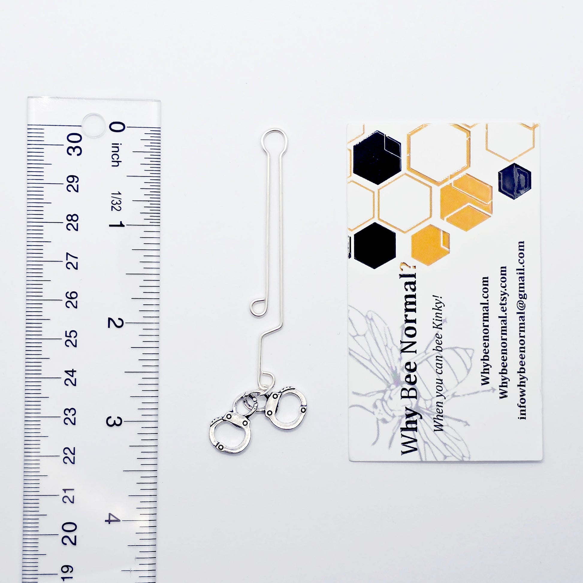 Handcuff clit / labia clamp. Approximately 3 inches long. BDSM, mature, intimate jewelry, Handmade. Give her an experience, jewelry she can feel.