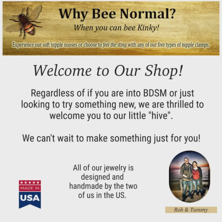 All clitoral/labia clips are handmade to aprox. 2.5 in. Please contact us with any questions about custom, sizing or adjustments, prior to placing your order. Keep in mind that all items are hand made and will not always look 100% like the featured picture above.