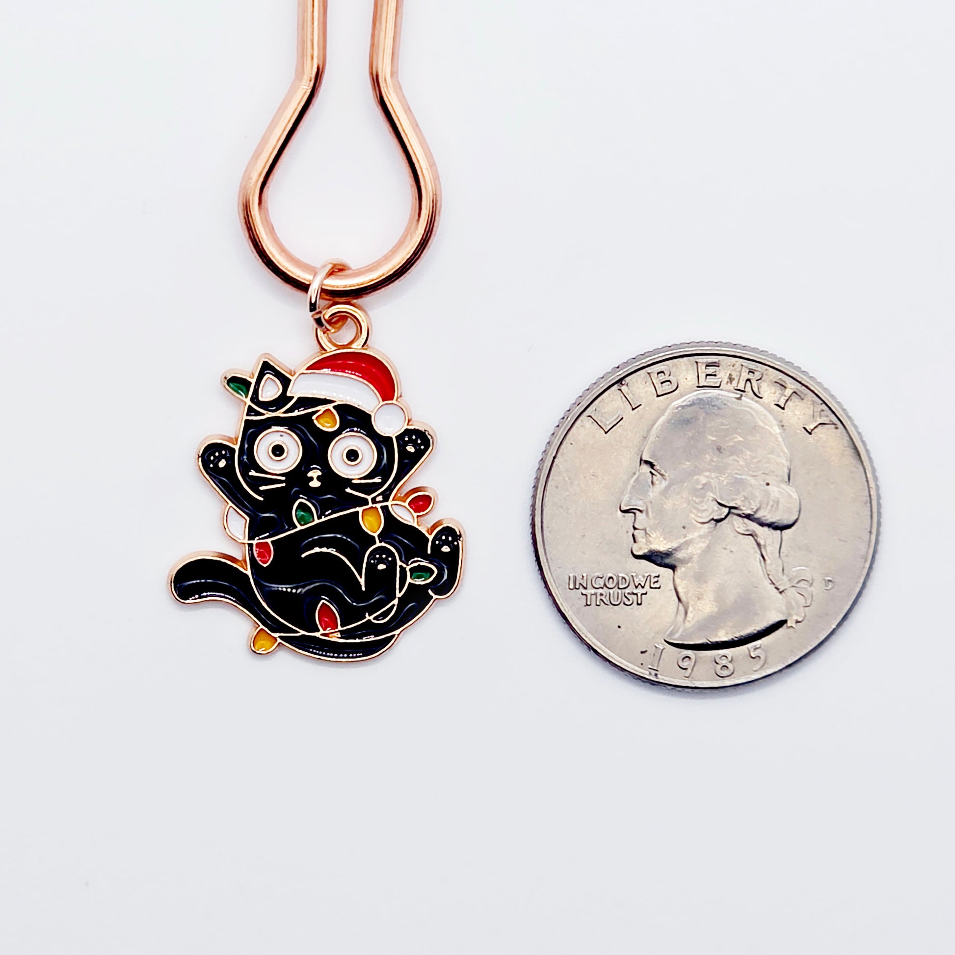 "Naughty Christmas Kitten" Nipple Clamps. Celebrate the holidays with fun and a little kink with these pretty little kitties. "Puurfect" gift for your naughty BDSM kitten. Rose Gold Straight Tweezer Nipple Clamps, great for beginners or those well versed in nipple play. Set of two.