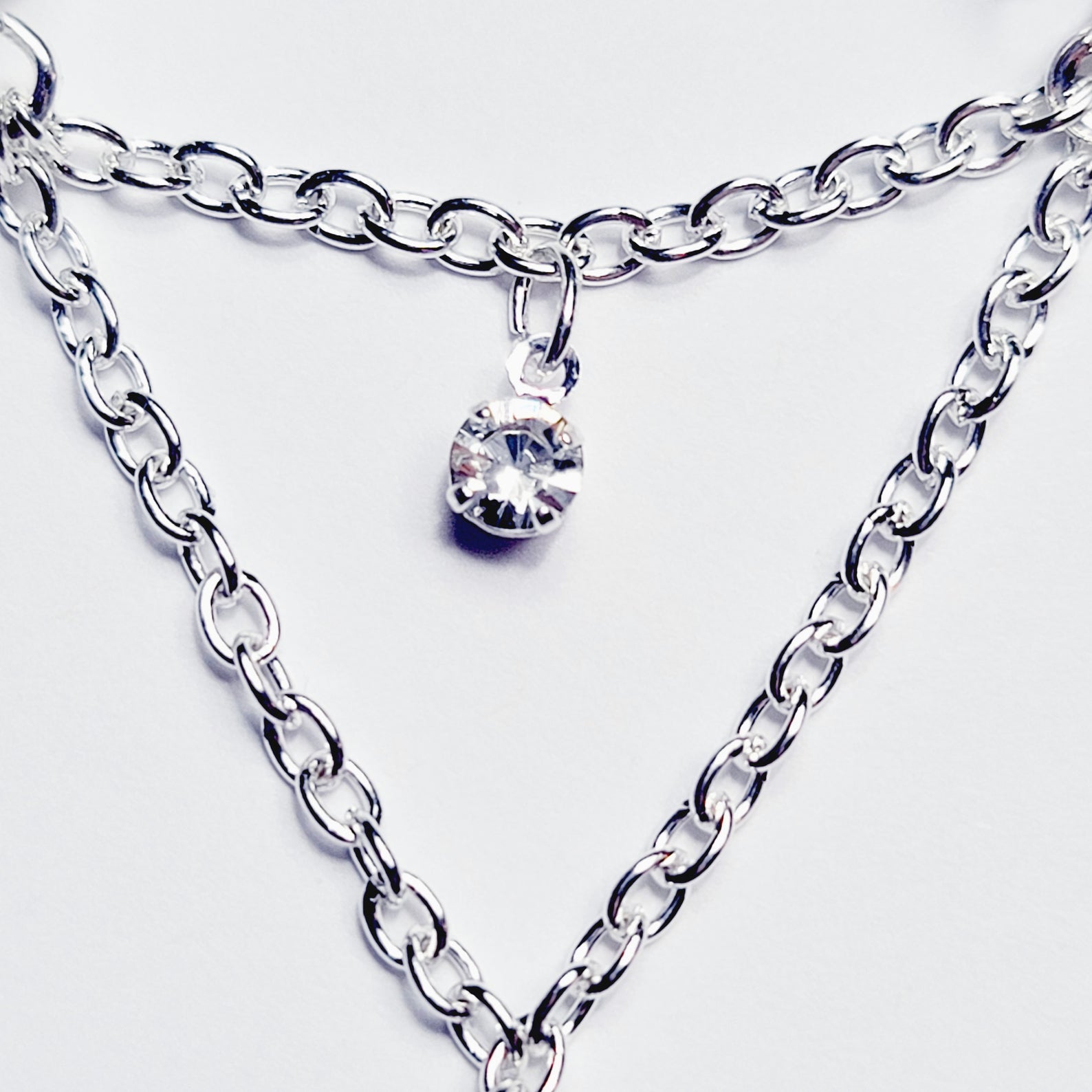 Silver Labia Chain Dangle with Heart and Sparkle. Non-Piercing Genital Jewelry.