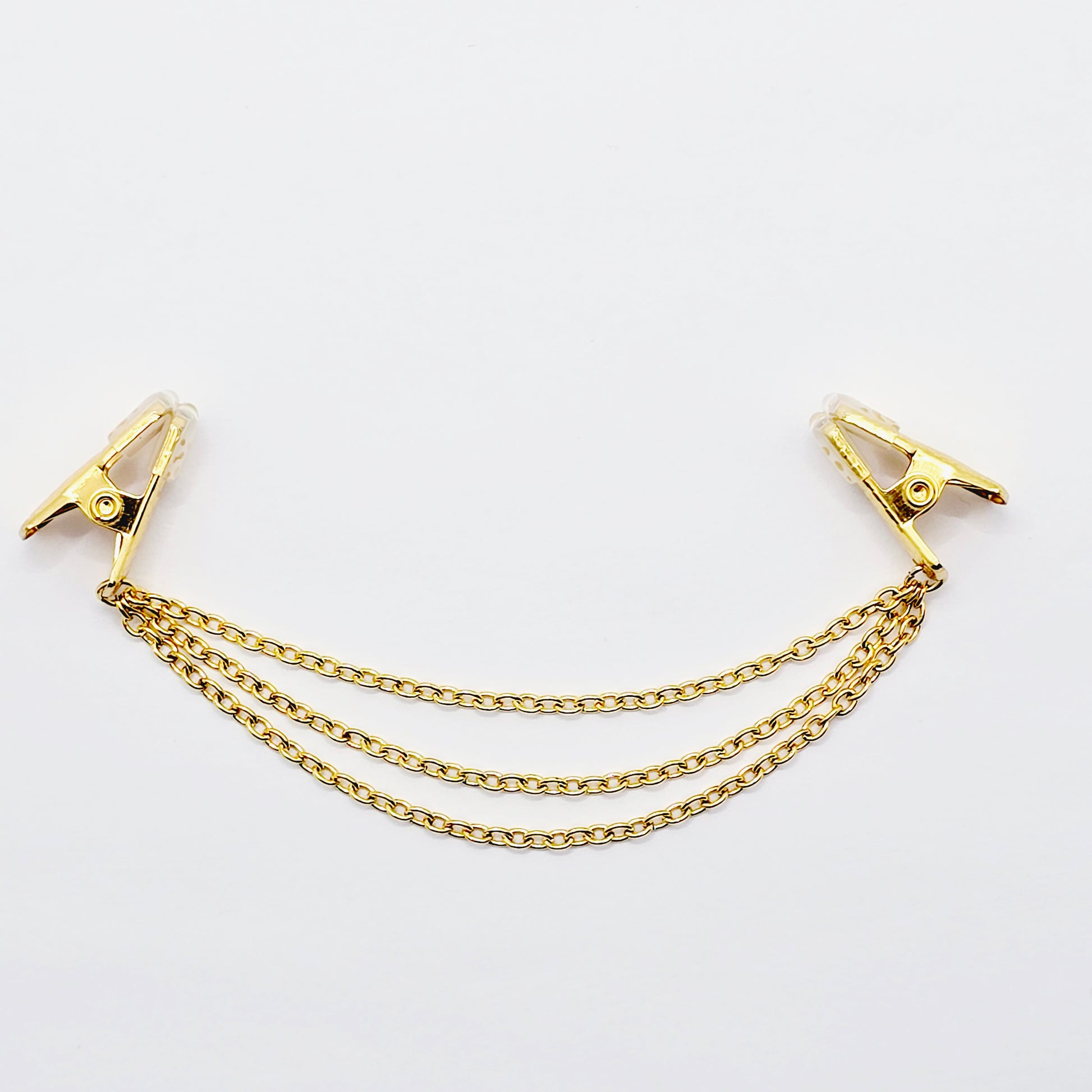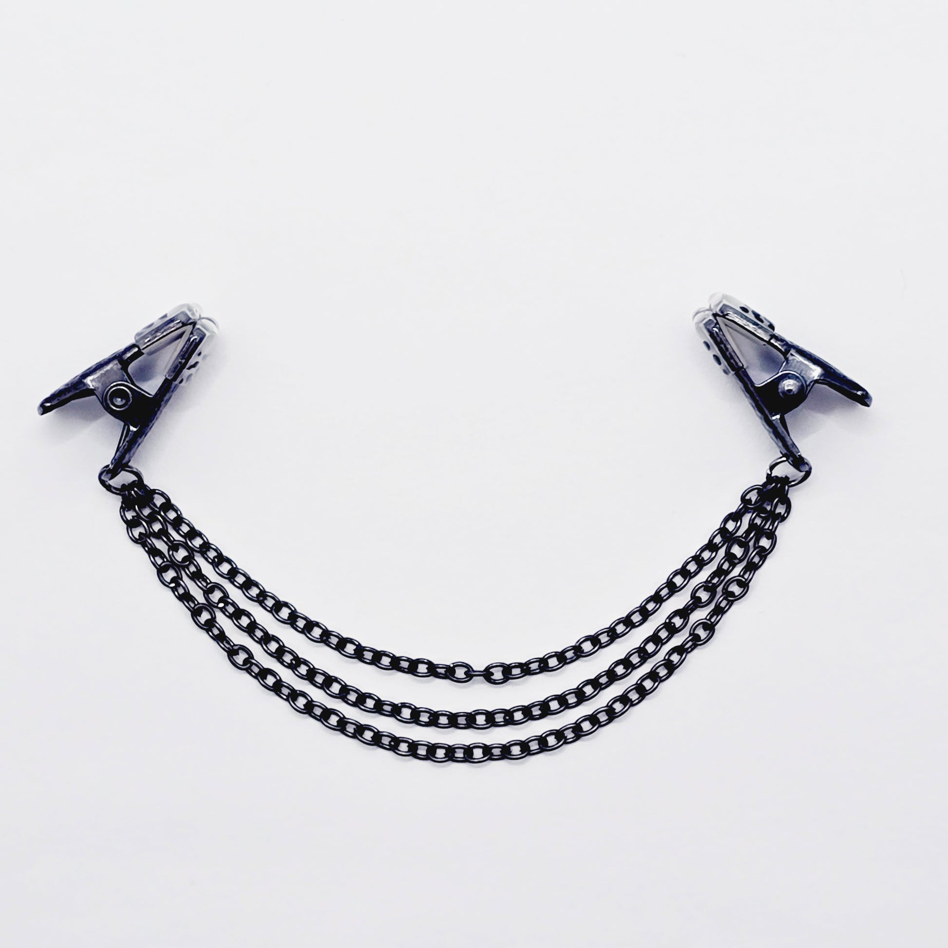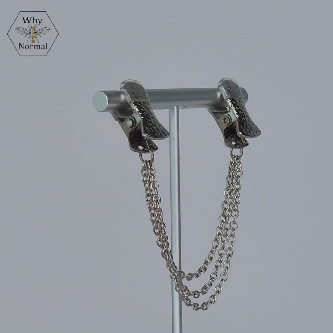 Sexy Labia Chain Dangle with New Clip Style! Multiple chains, and your choice of color. Silver, Gold, or Gunmetal black. Experience a new level of sensation with these higher pressure labia clamps. Non-Piercing Intimate Genital Jewelry for Women. Suggested for wear on outer labia lips.ย