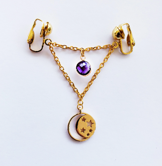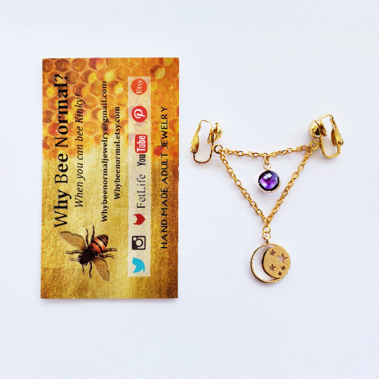 Labia Chain Dangle with Moon and Stars. Non Piercing Vaginal Jewelry.