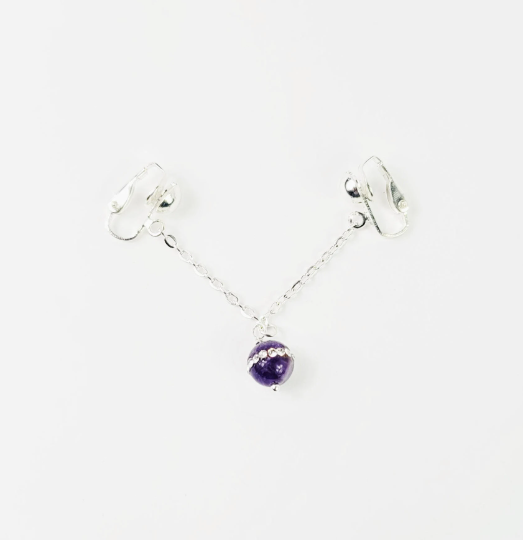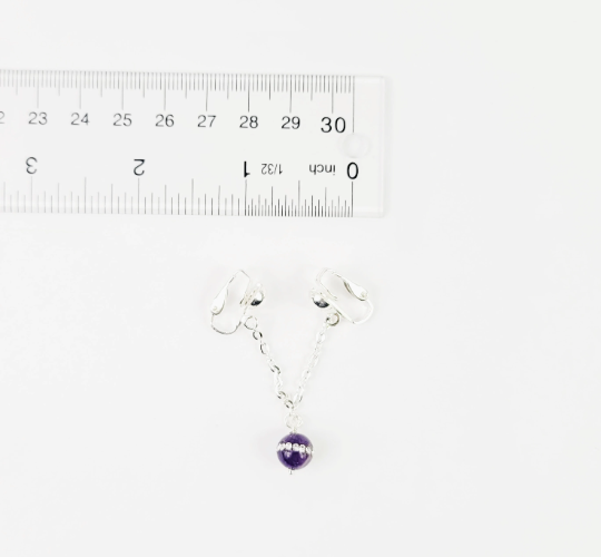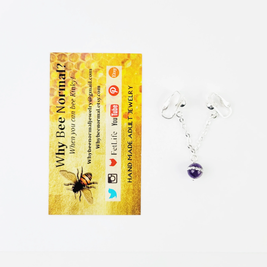 Labia Chain Dangle with Sparkling Amethyst Stone Bead. Non Piercing. BDSM