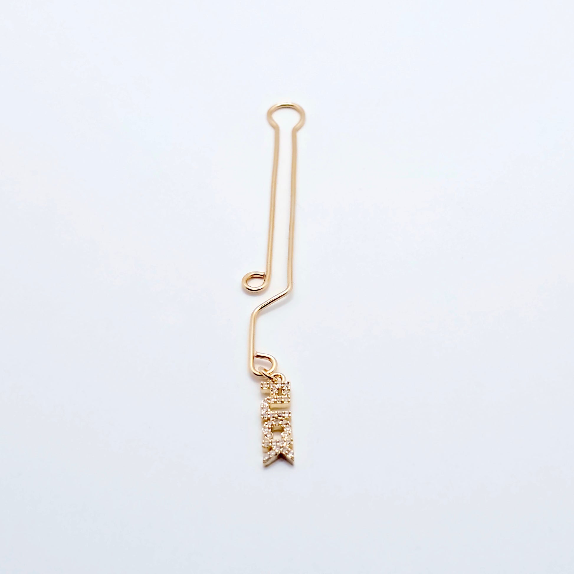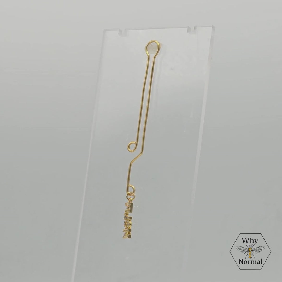 Gold Labia Clip with elegant yet blunt cubic zirconia FUCK pendant. Non-Piercing Erotic Intimate Jewelry Clip for Women. Sexy gift for her.