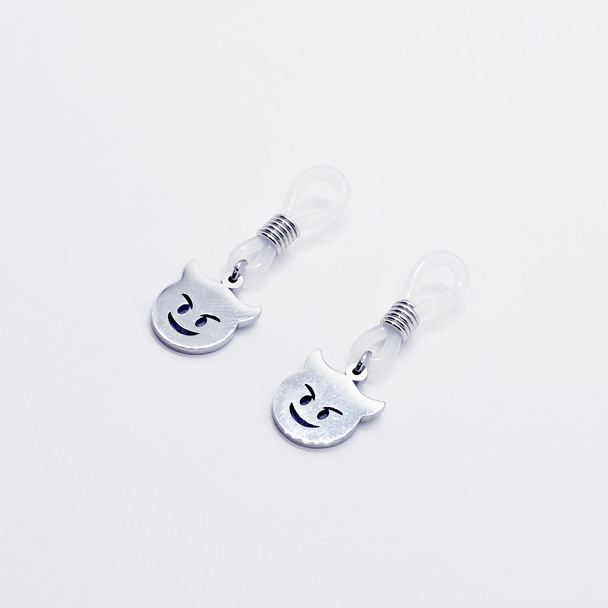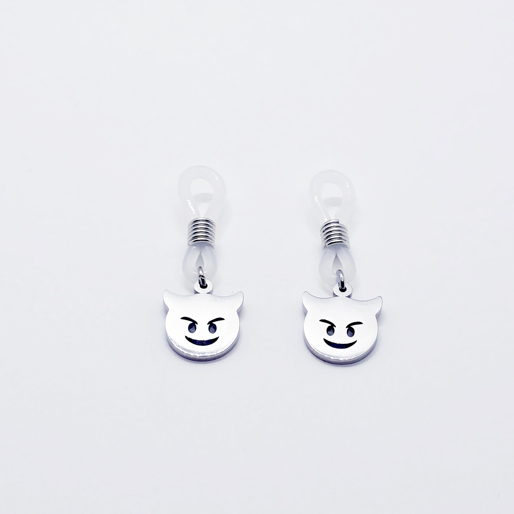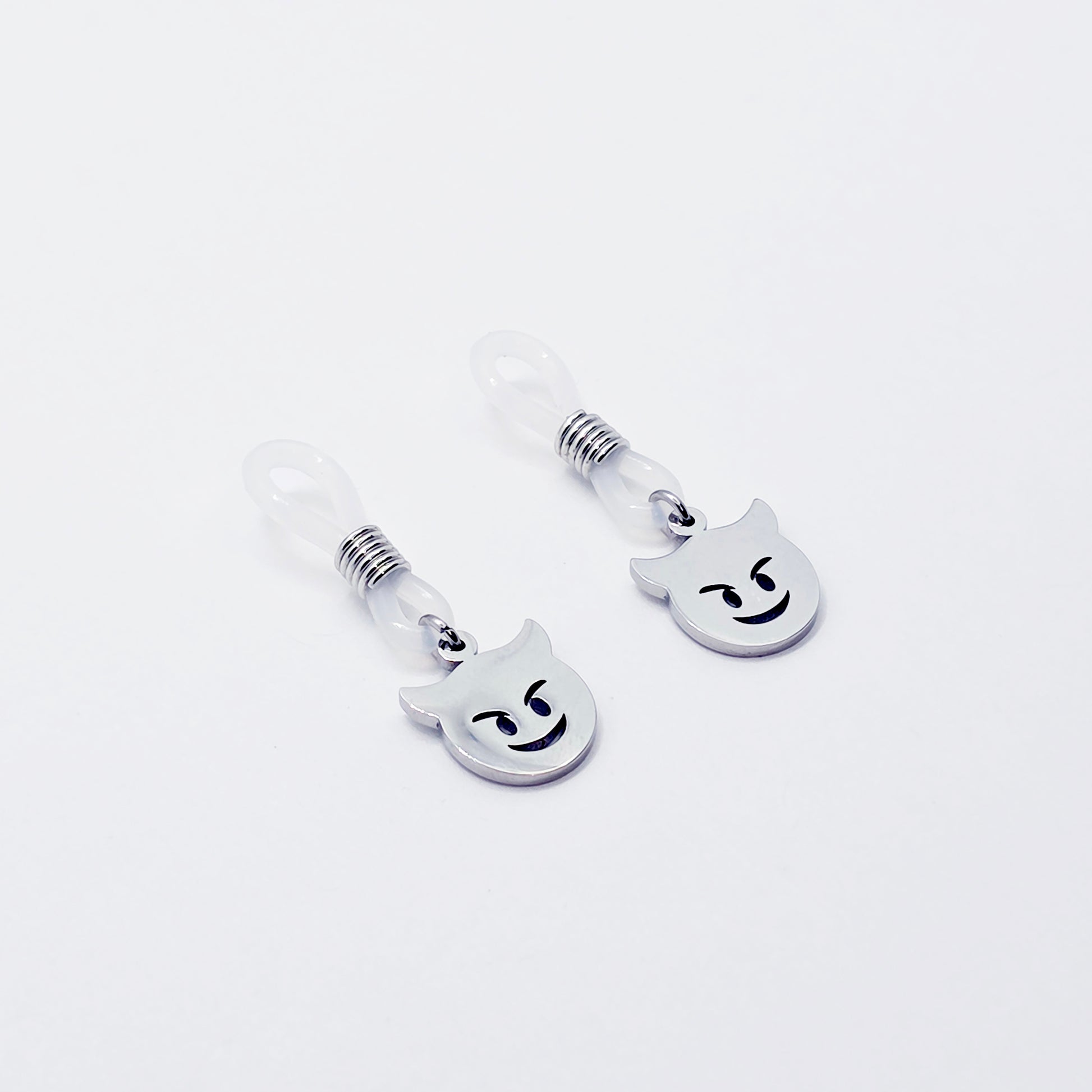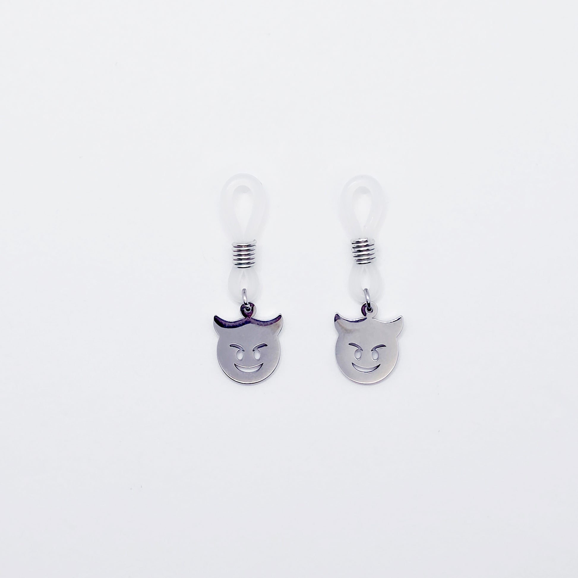 Small nipple nooses with stainless steel devil pendants. Unisex, fake piercing, non-piercing nipple jewelry for men or women with narrow nipples. Not recommended for nipples over 10mm wide.