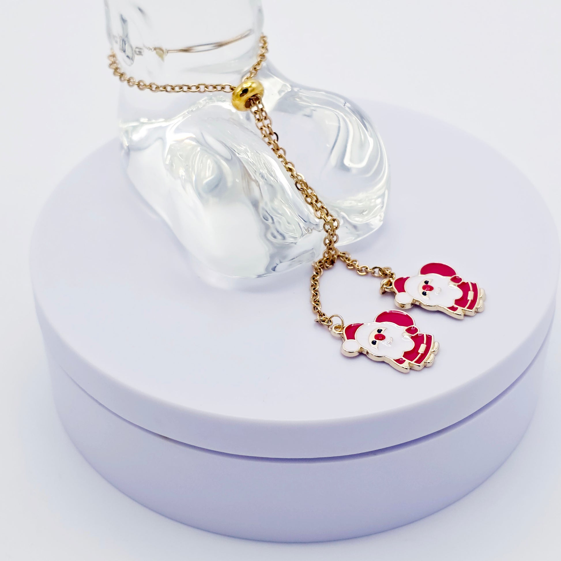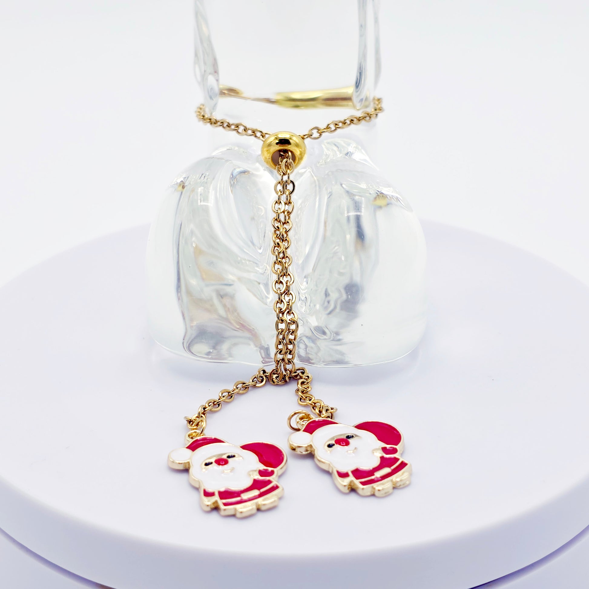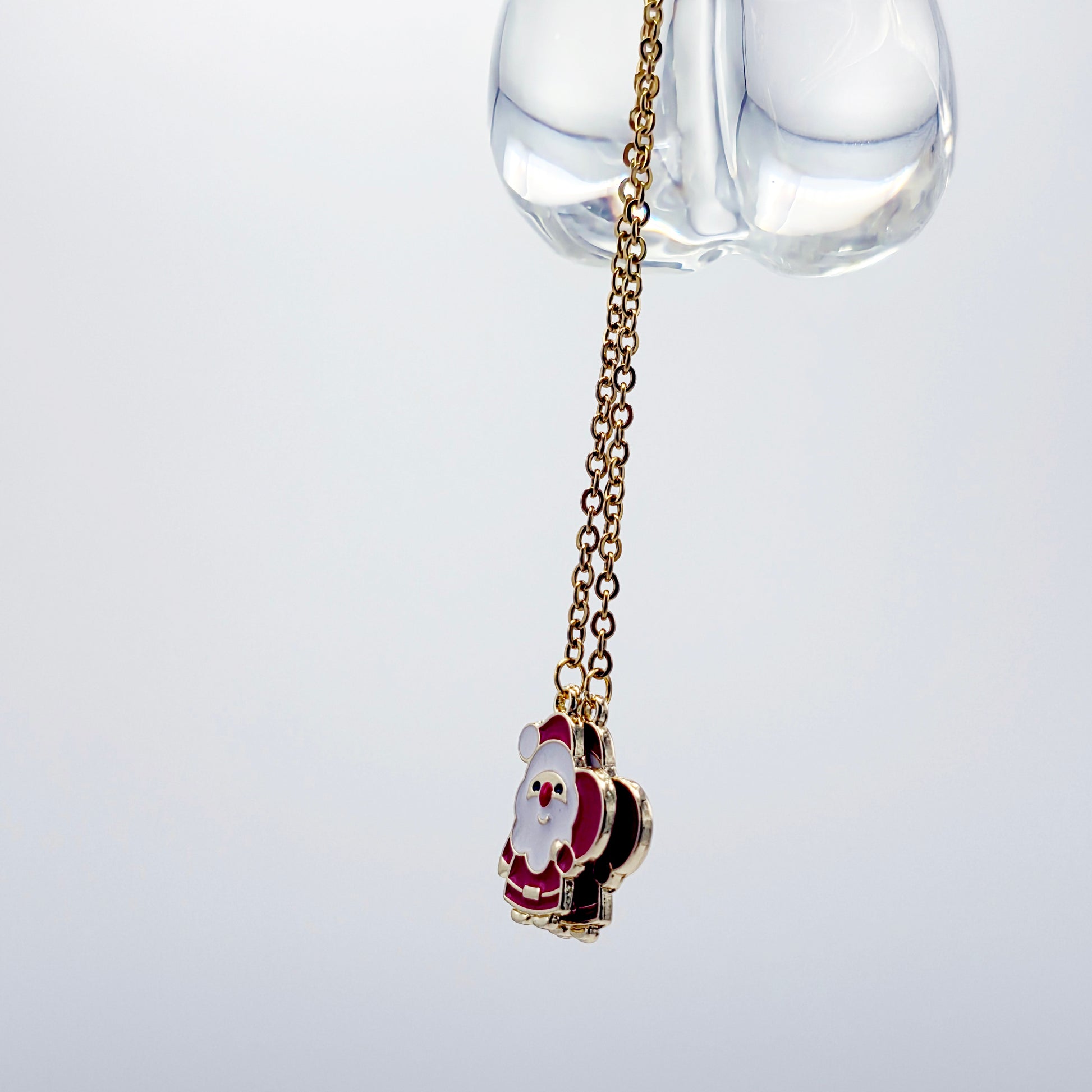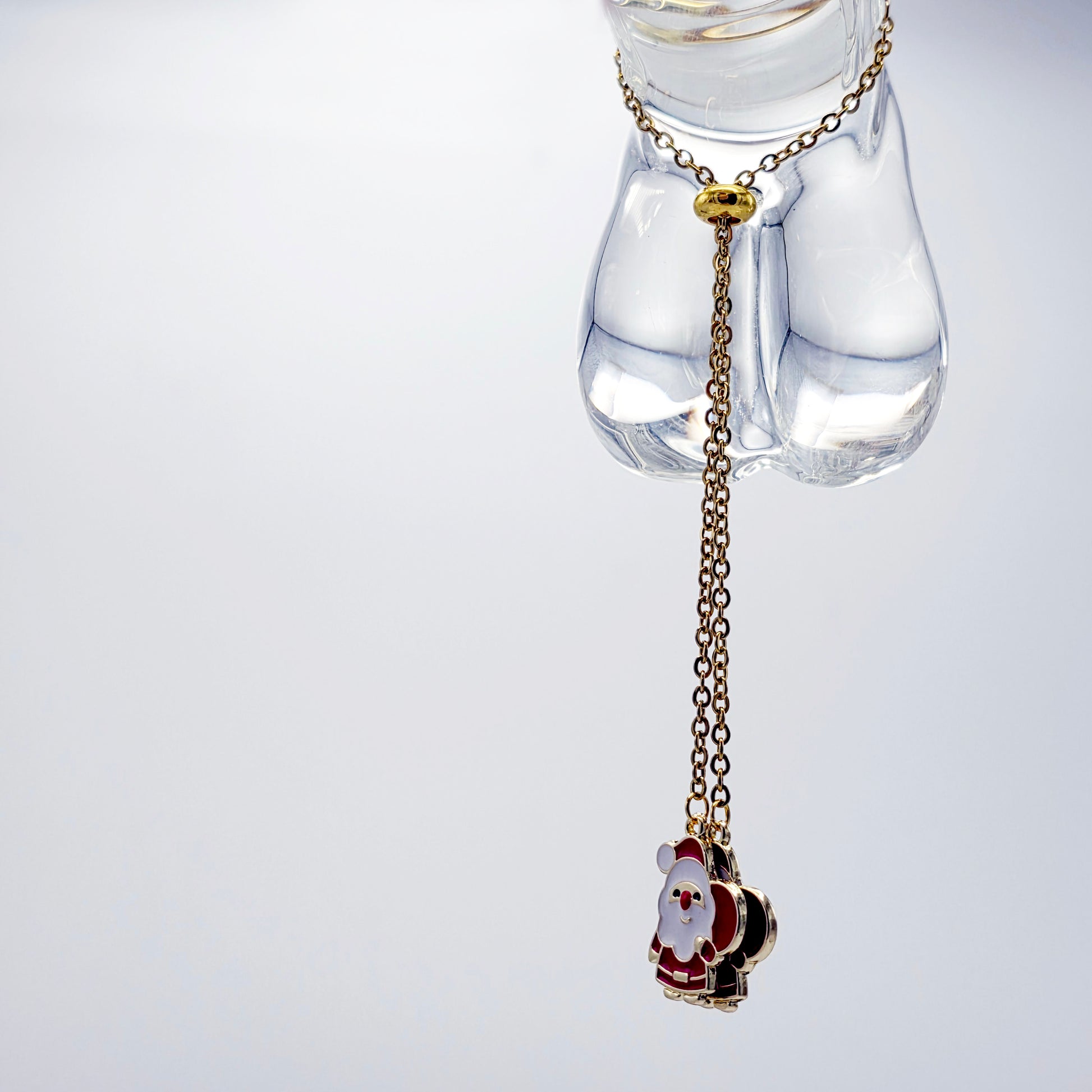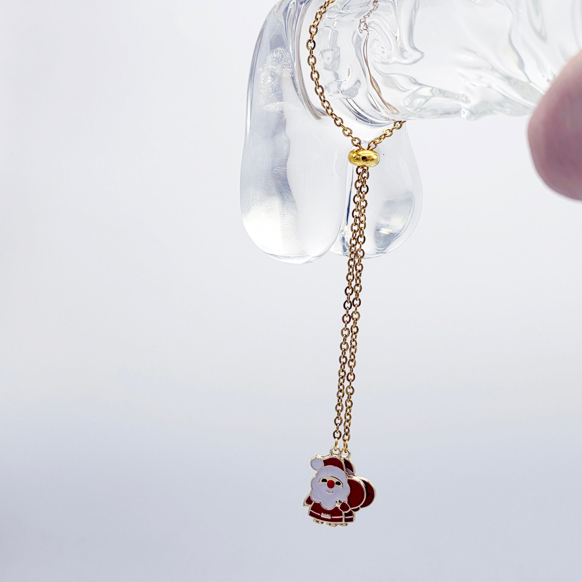 Gold-chained penis noose with Santa pendants. Kinky Christmas Jewelry, Cock and Ball Tassel. One size fits most. Versatile wear.ย