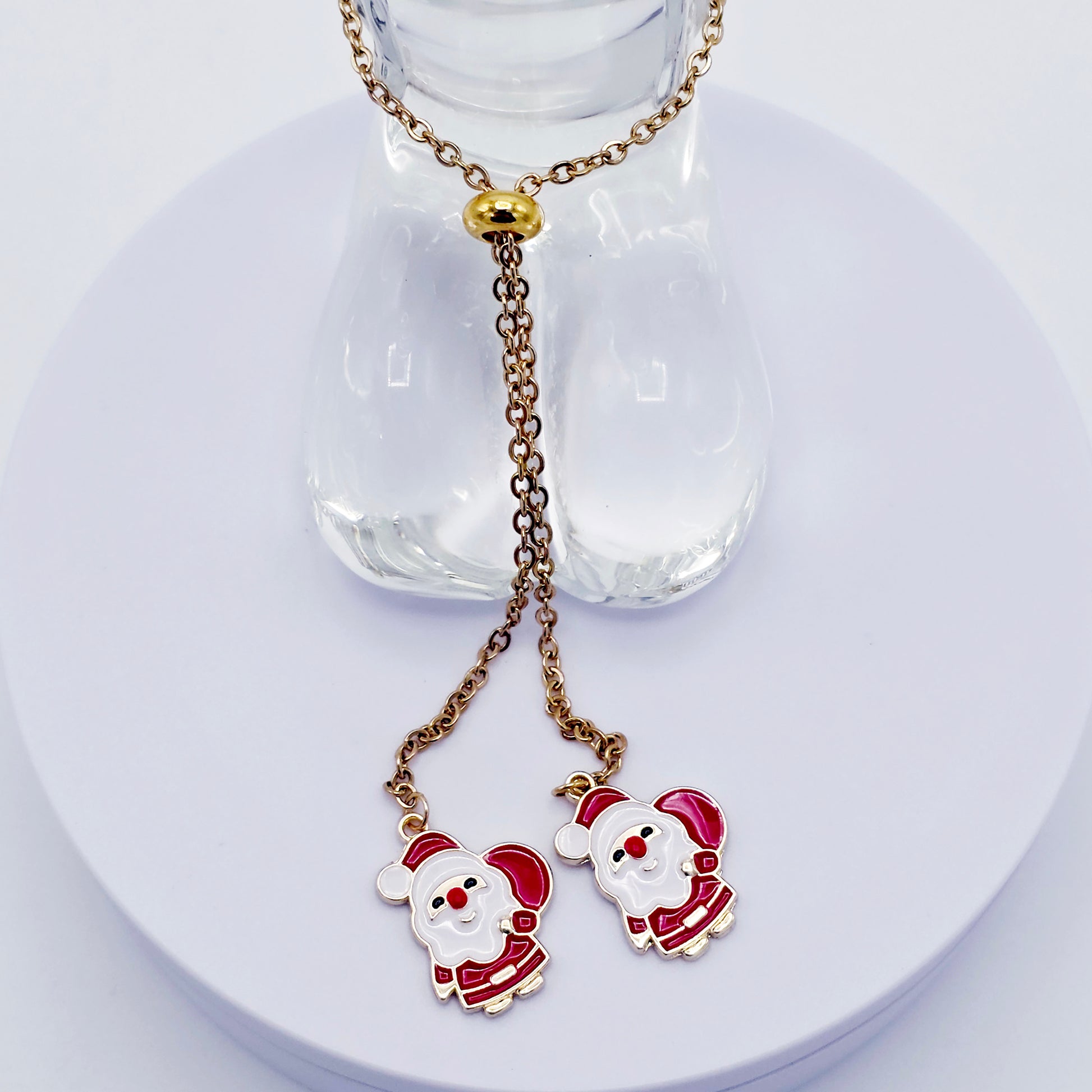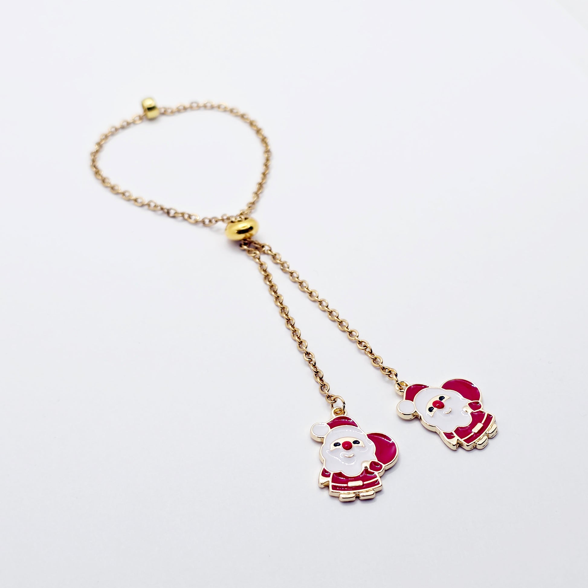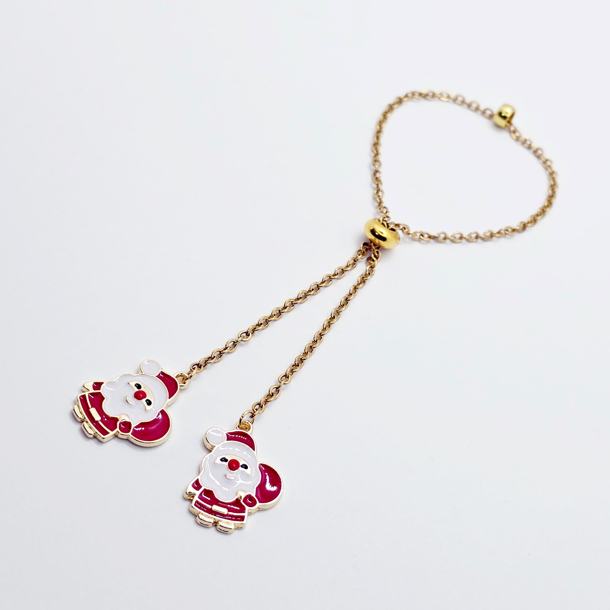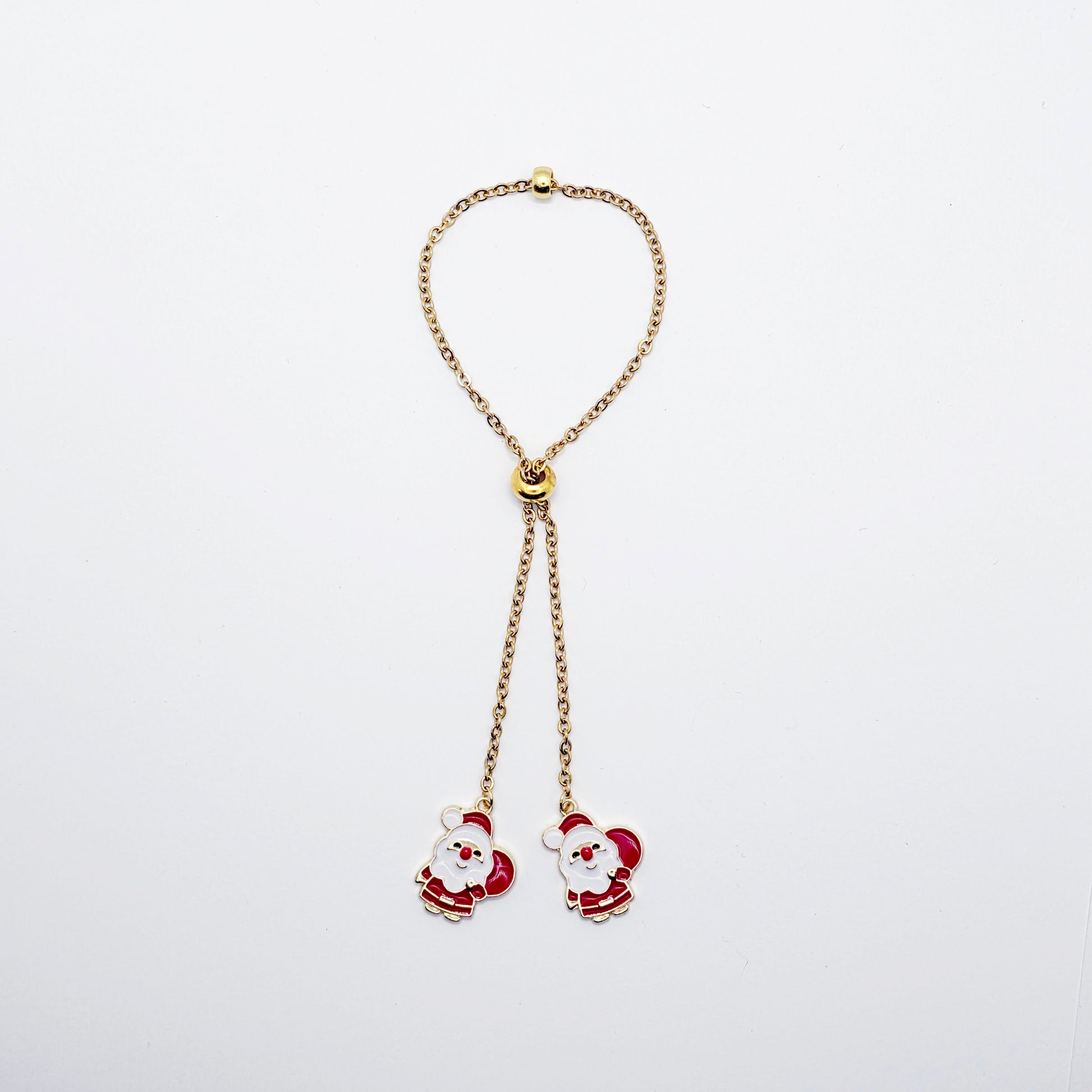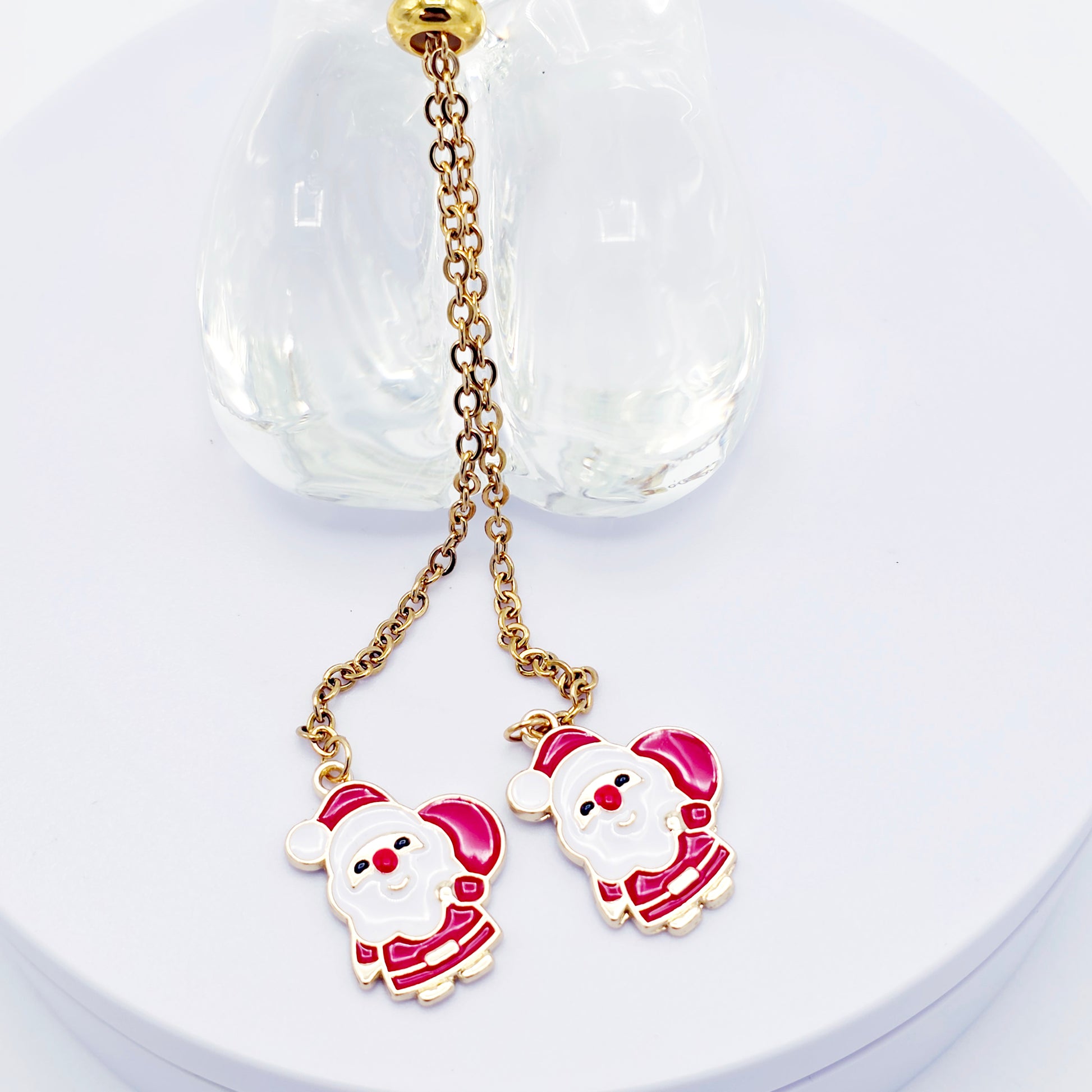 Gold-chained penis noose with Santa pendants. Kinky Christmas Jewelry, Cock and Ball Tassel. One size fits most. Versatile wear.ย