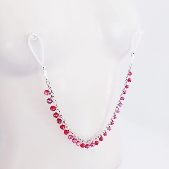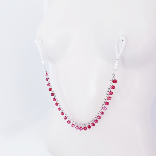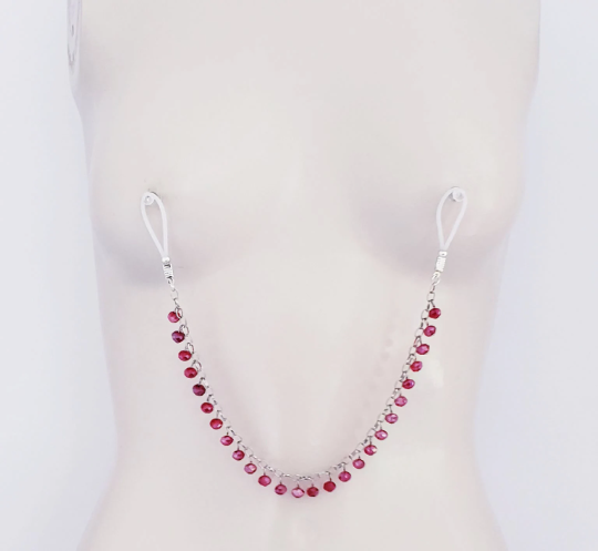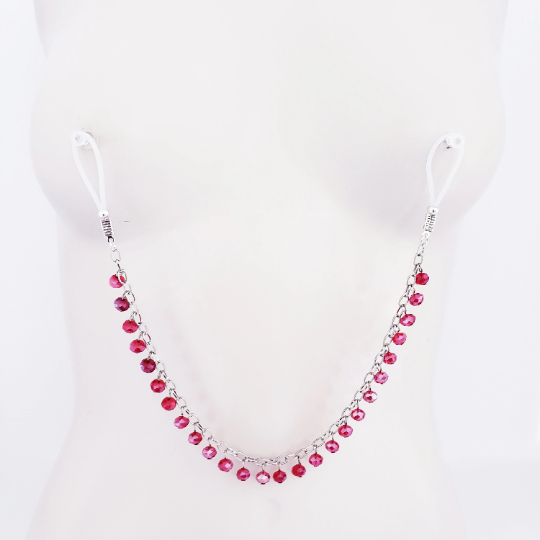 Nipple Chain with Red Bead Dangles, Non Piercing. Or Your Choice of Nipple Clamps.BDSM