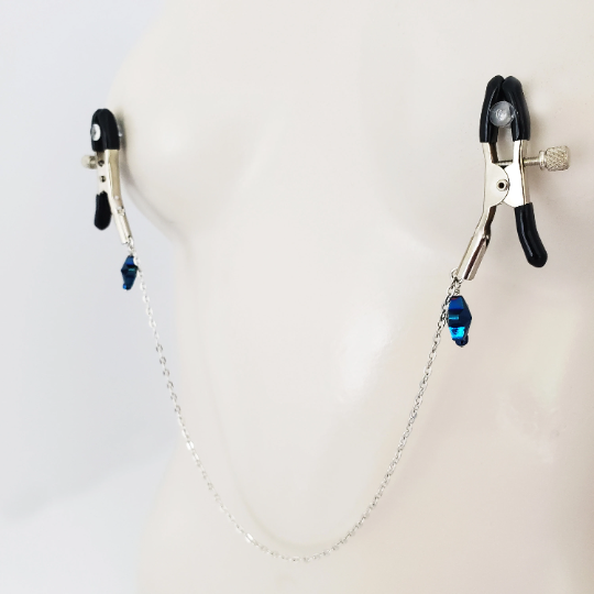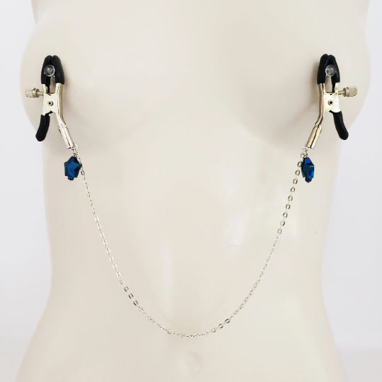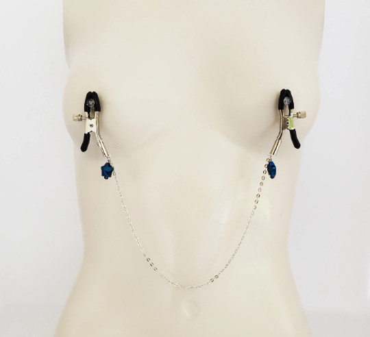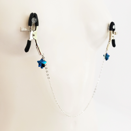 Nipple Chain with Stars on Non Piercing Nipple Nooses or Clamps. BDSM