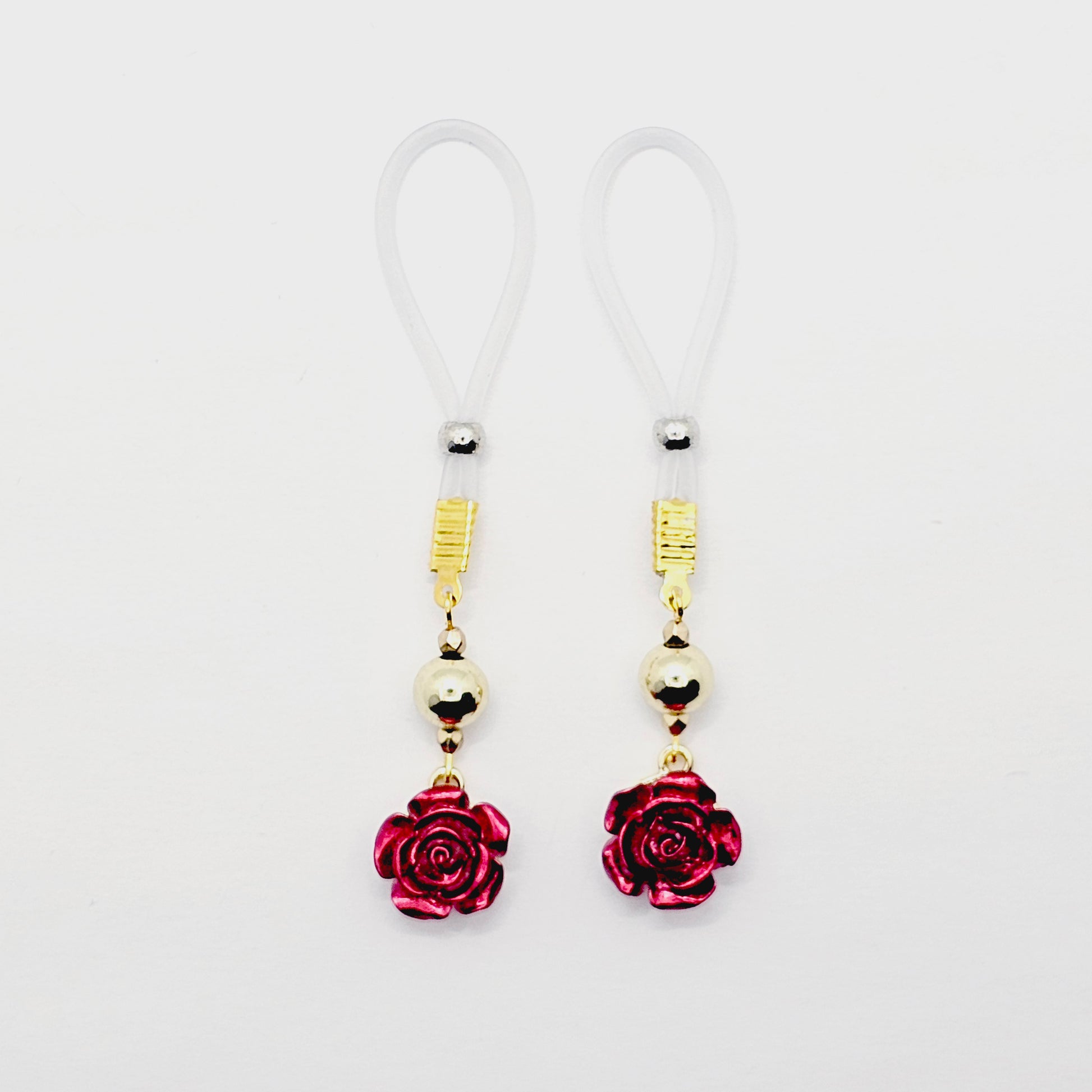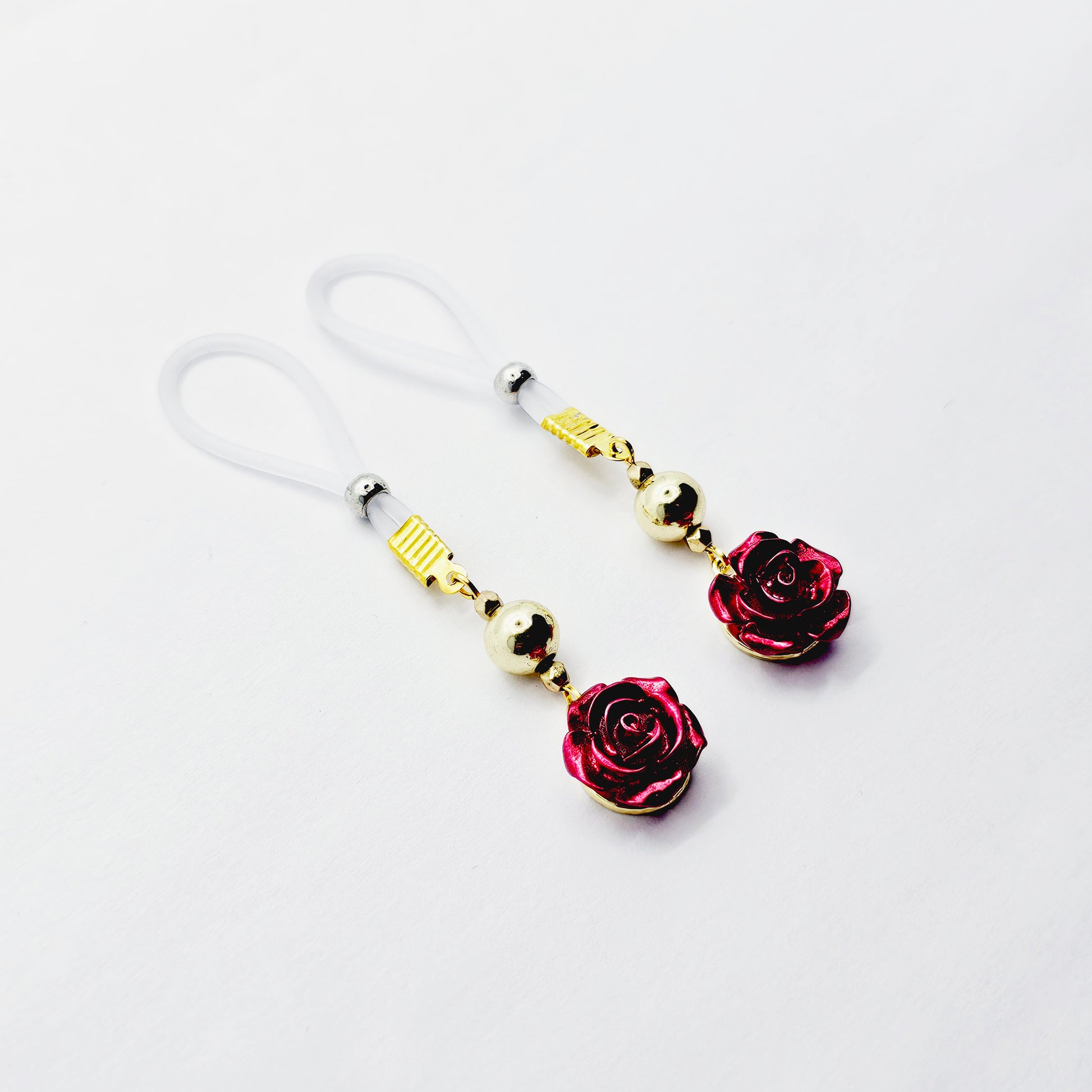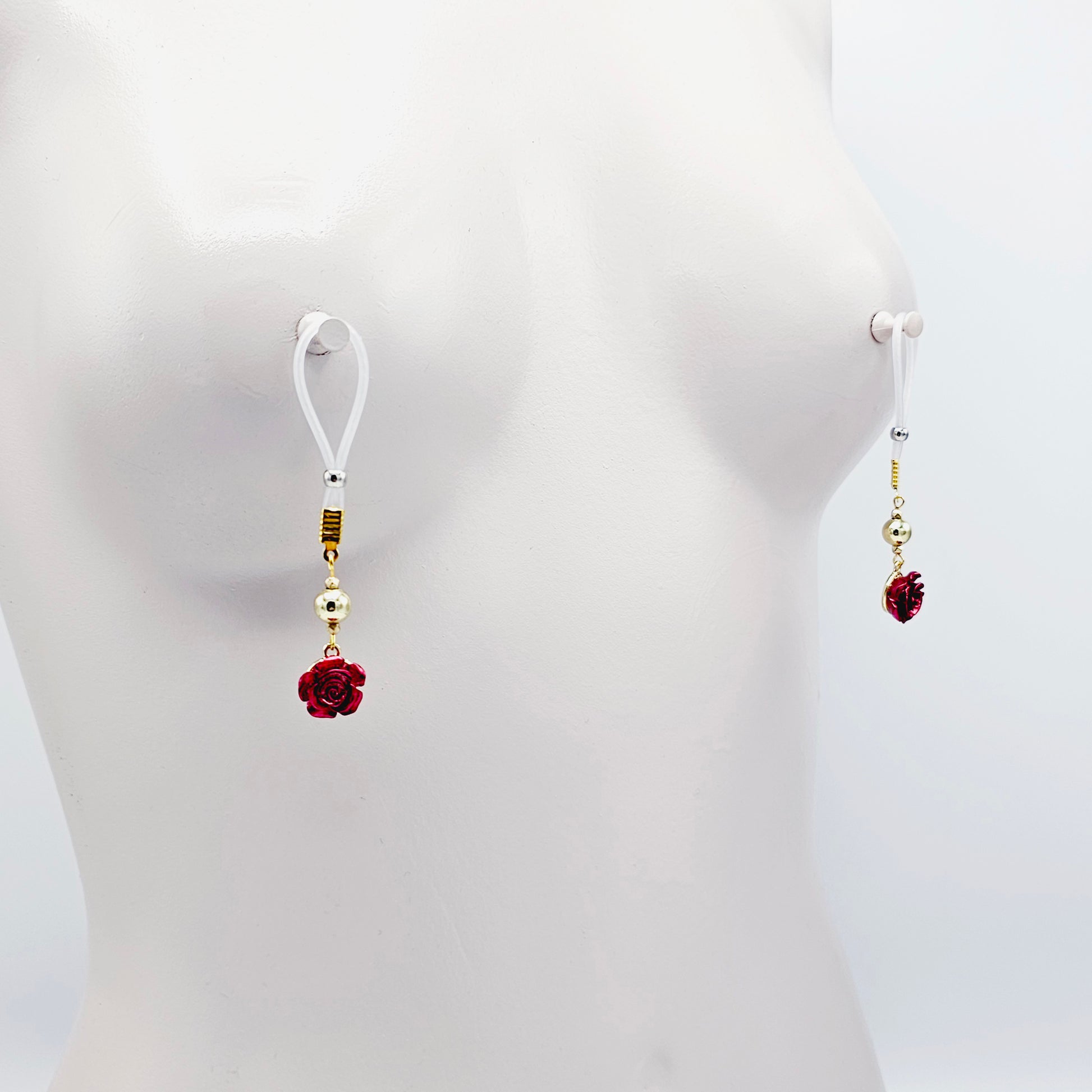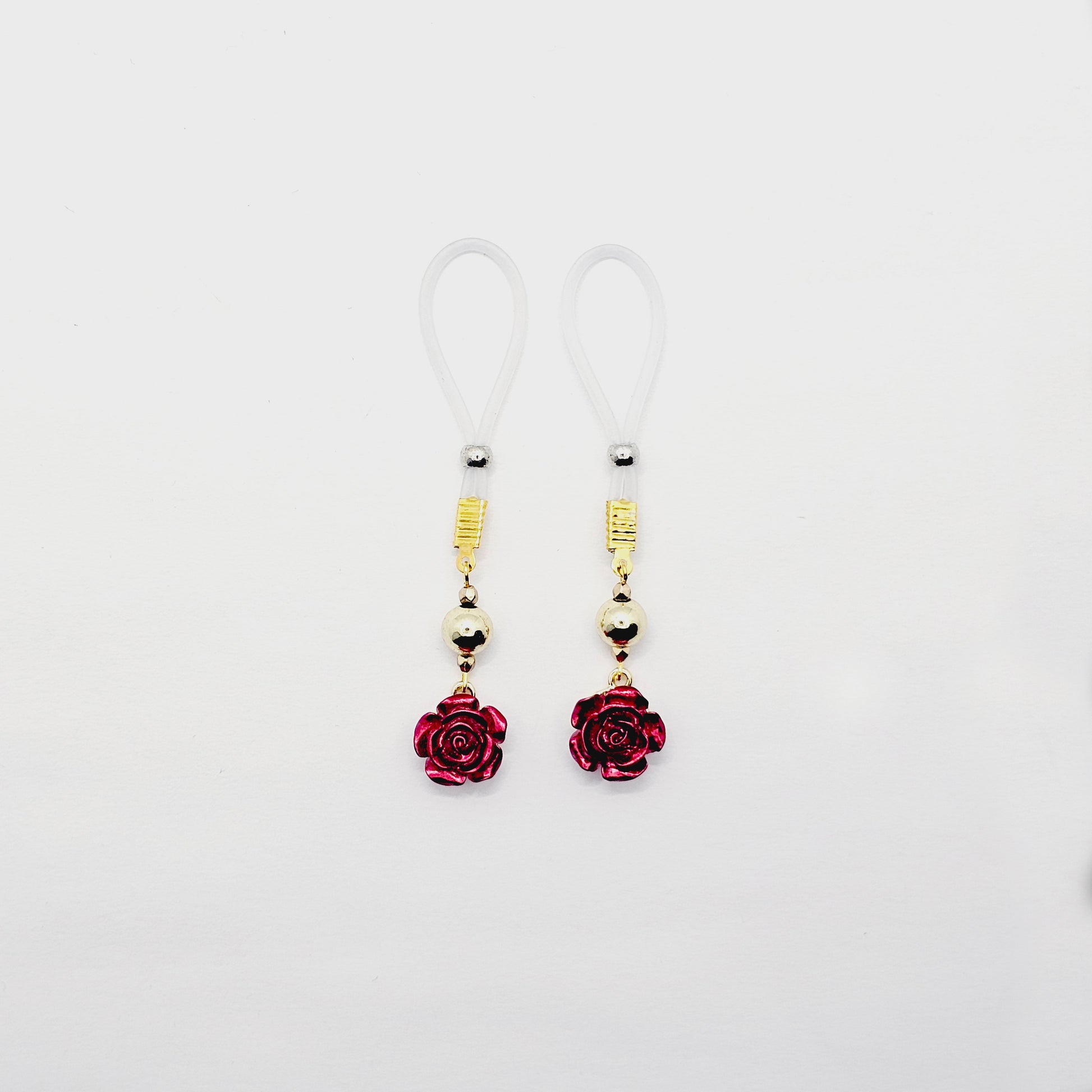Nipple Nooses or Nipple Clamps with Gold and Red Roses
