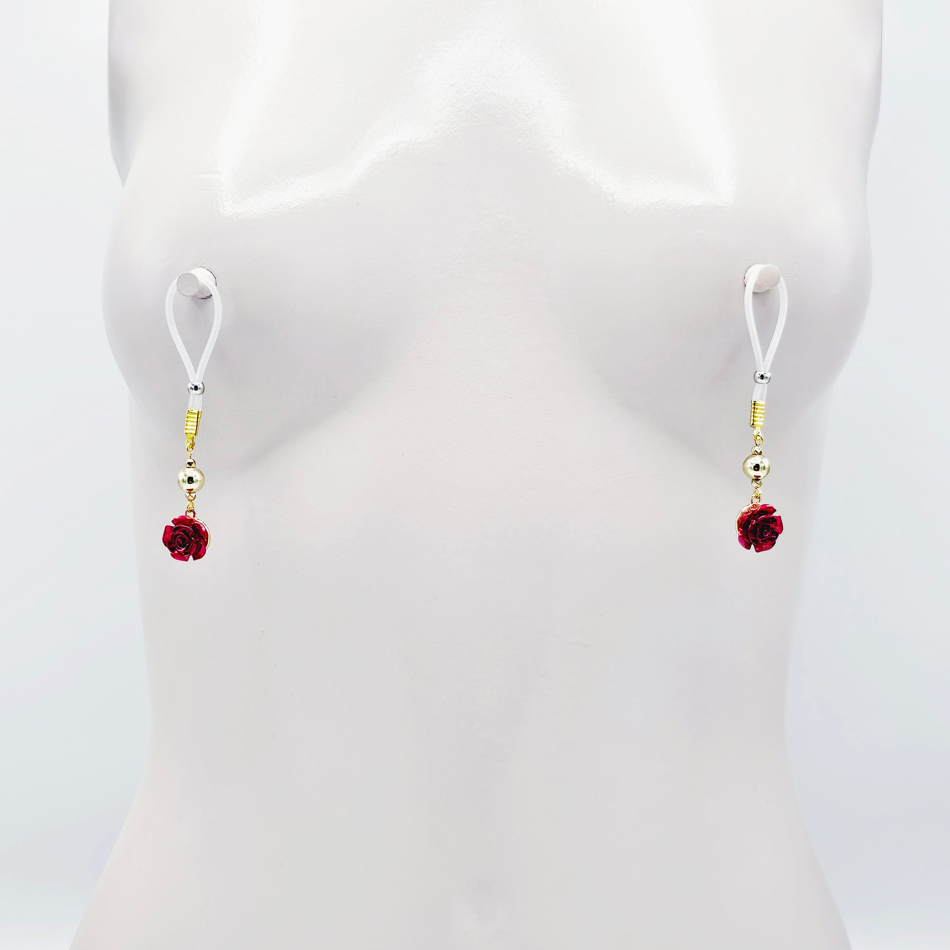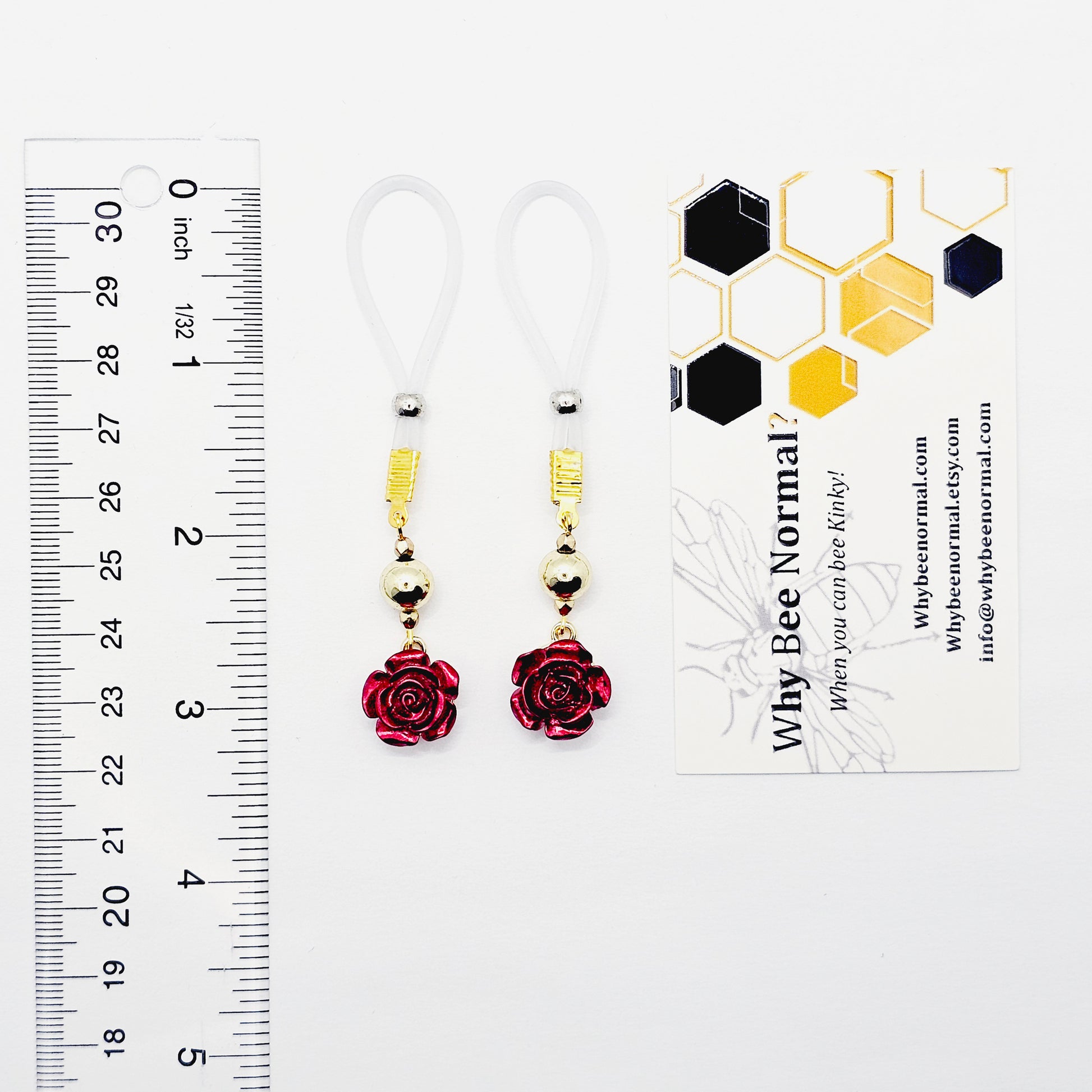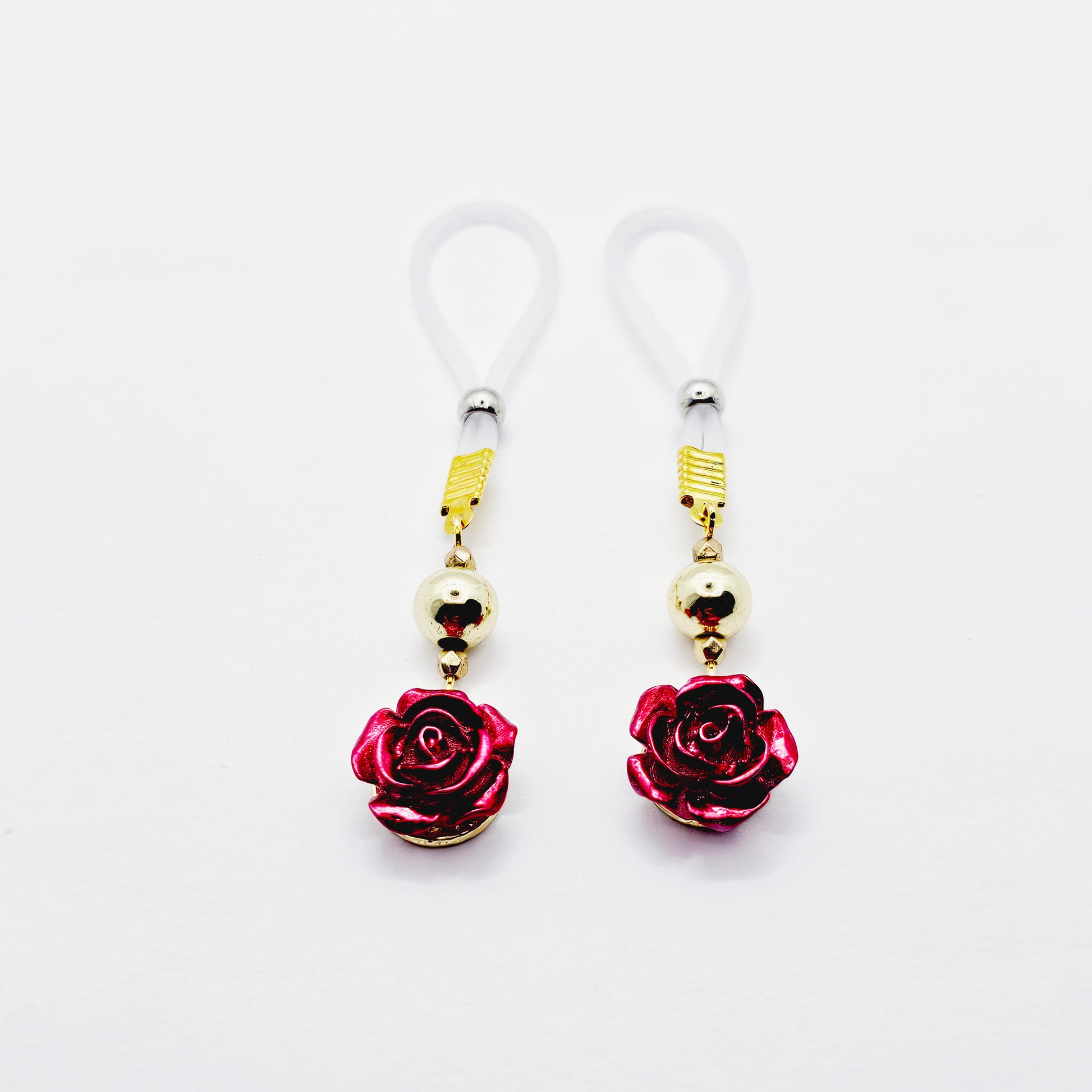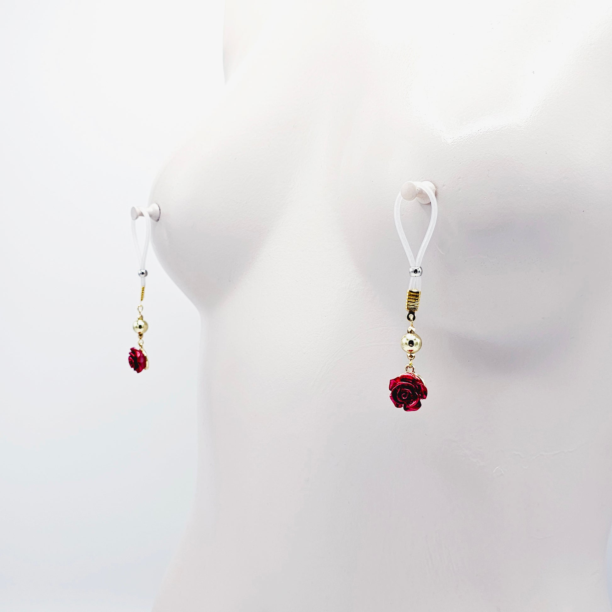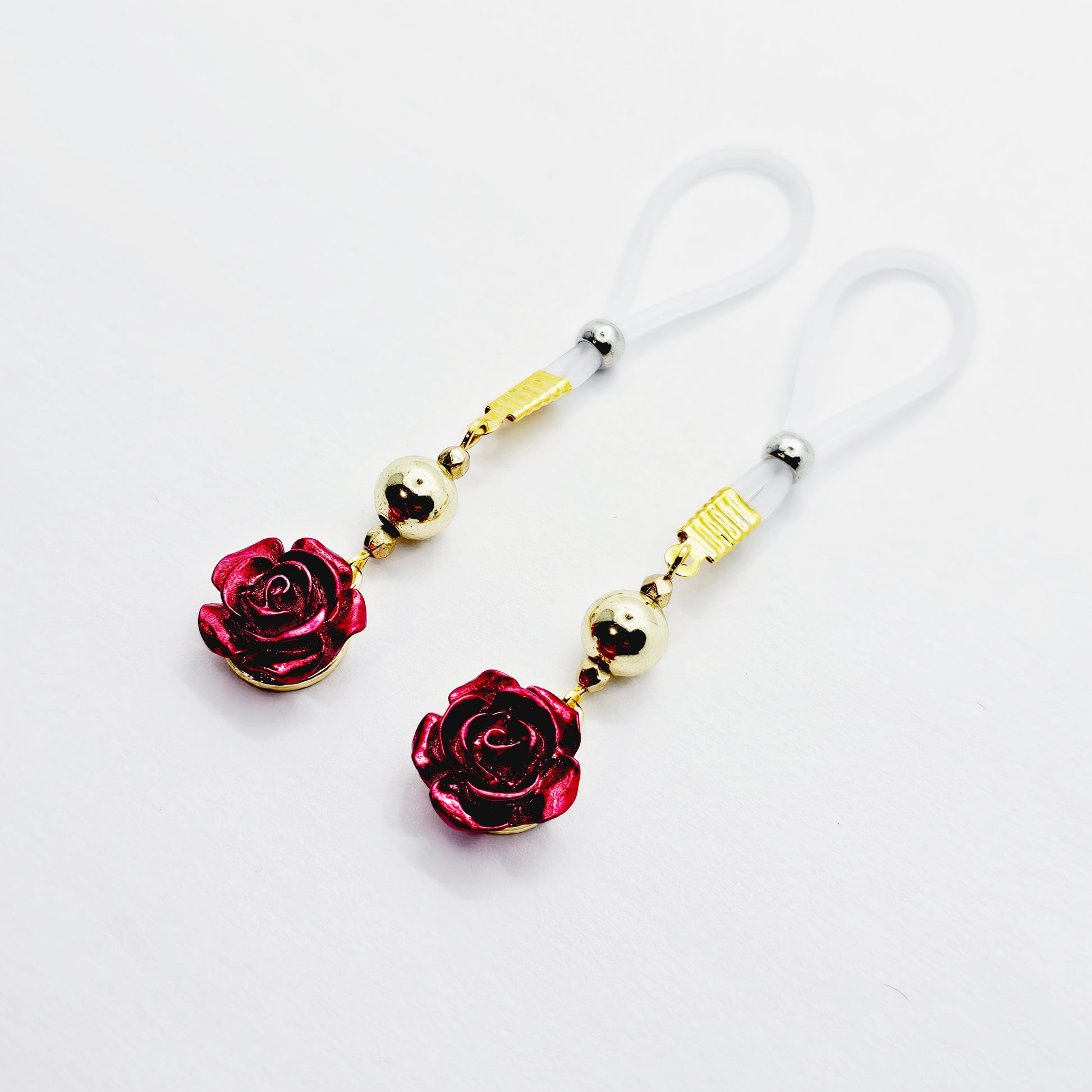 Nipple Nooses or Nipple Clamps with Gold and Red Roses