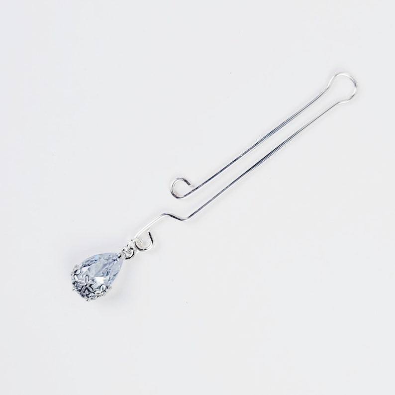 Labia Clip with Cubic Zirconia Pendant with Flowers. Non Piercing Intimate Jewelry/Sex Toy for Women. BDSM Submissive.