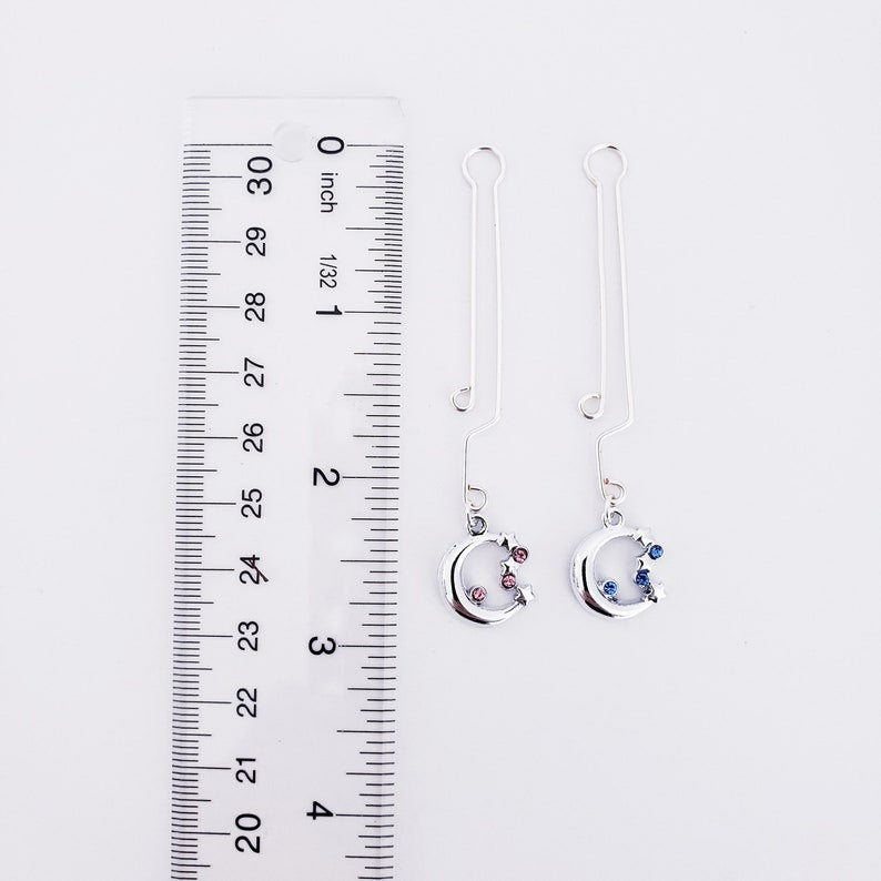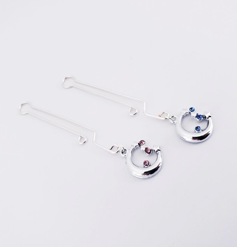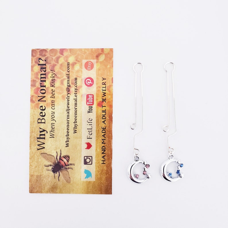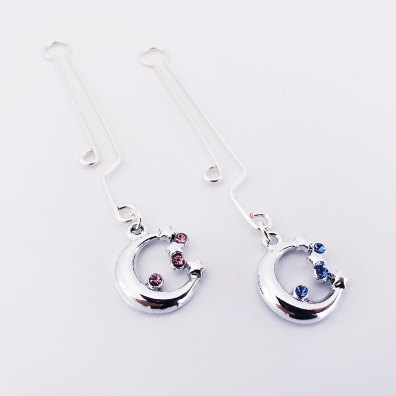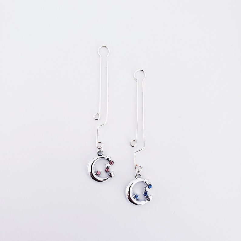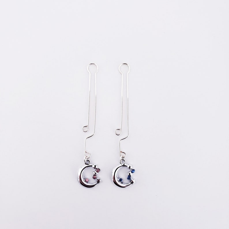 Labia Clip with Gemstone Moon and Stars. Non Piercing Vaginal Jewelry for Women. BDSM Submissive