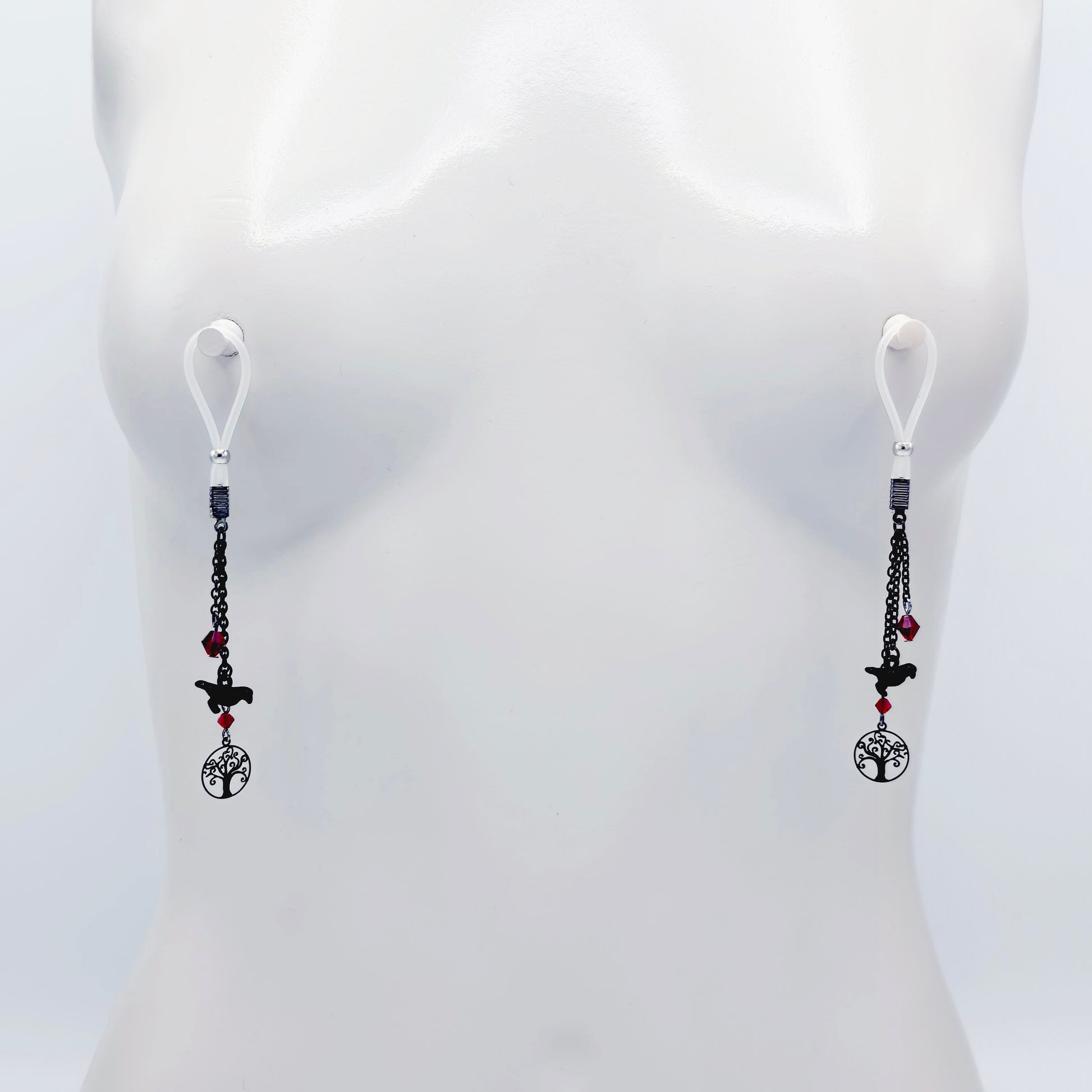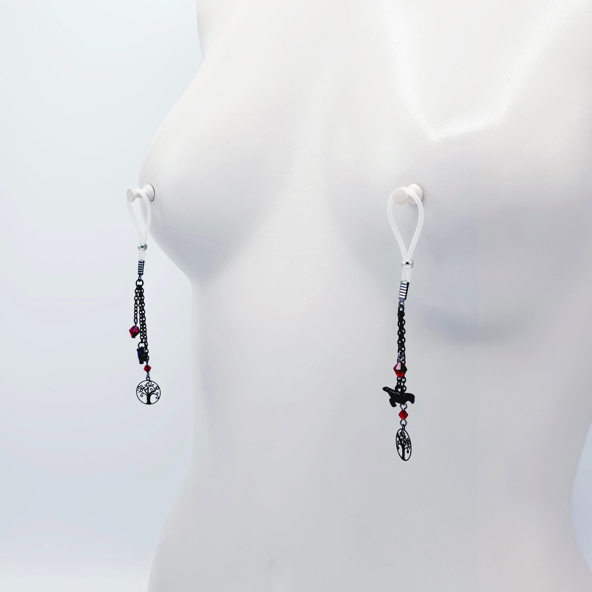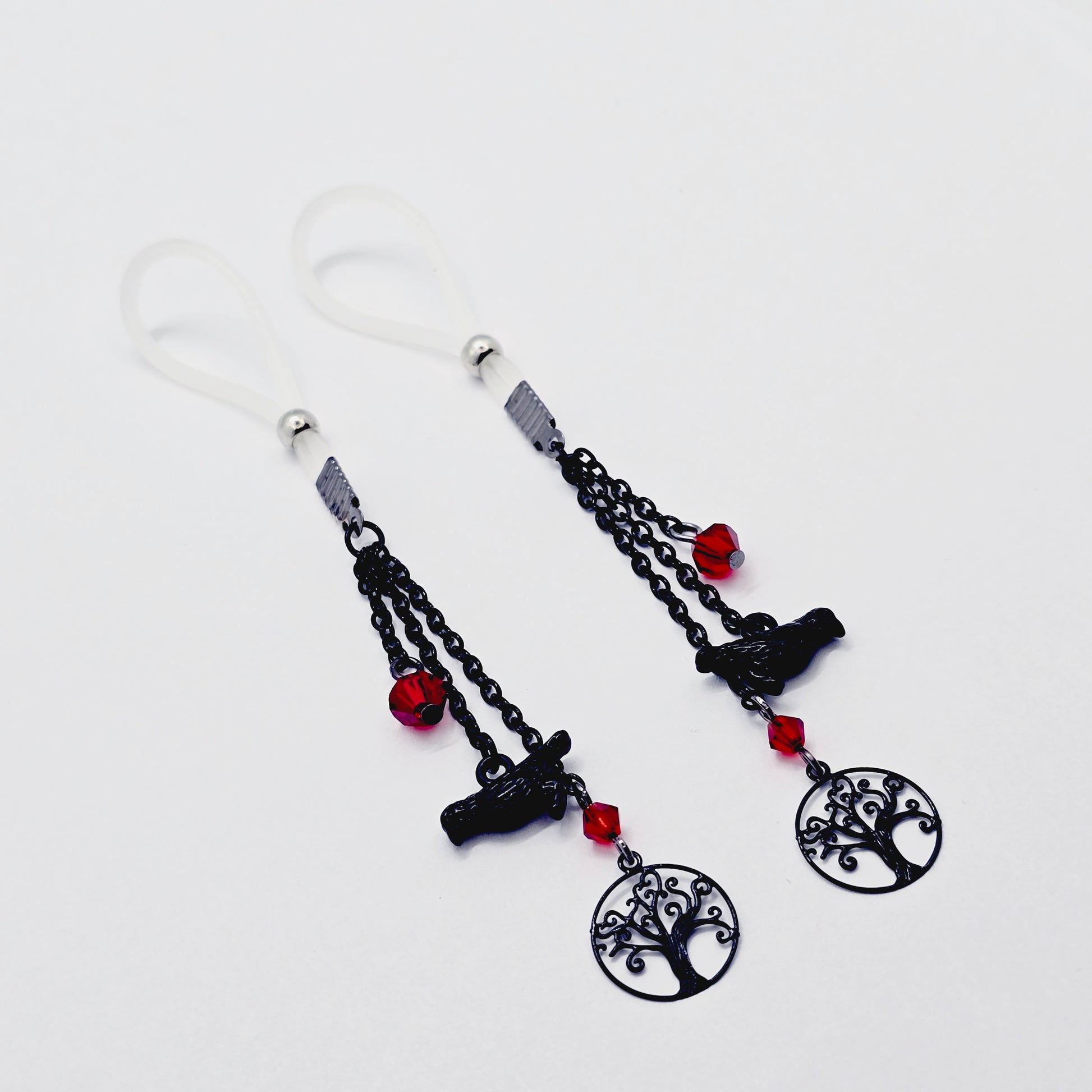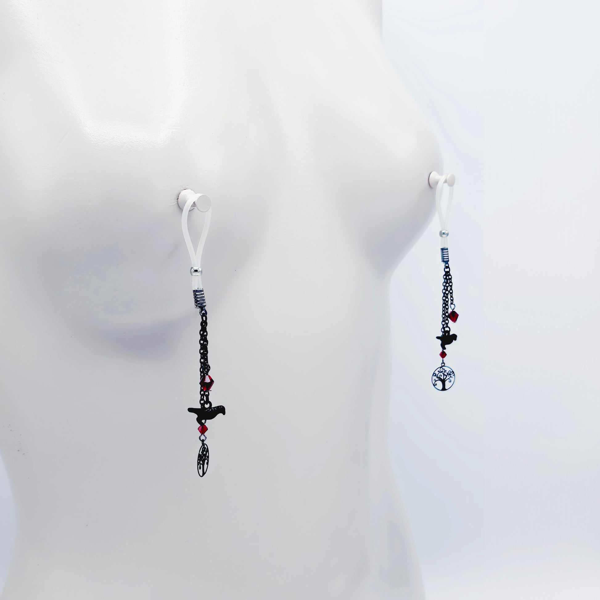 Non-Piercing Nipple Dangles with Ravens. Nipple Nooses or Your Choice of Nipple Clamps.