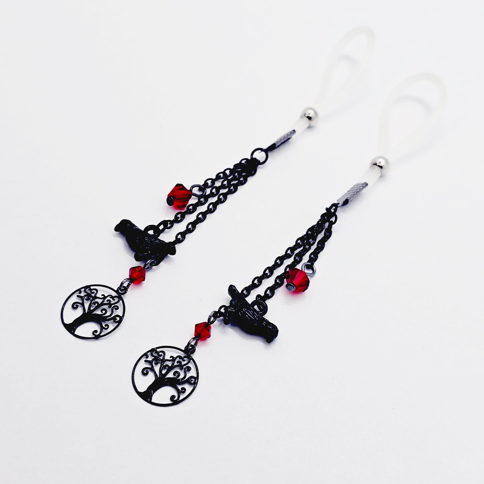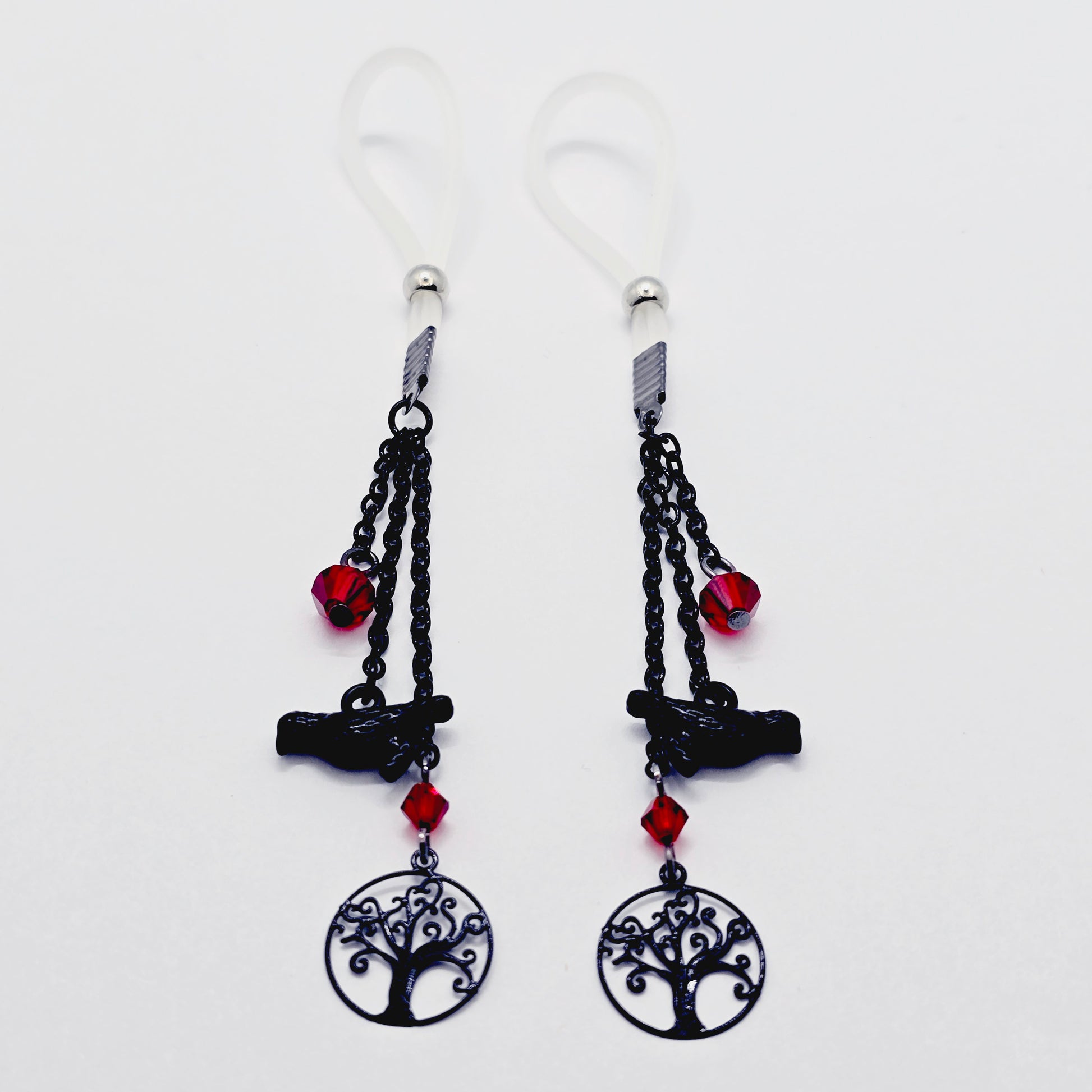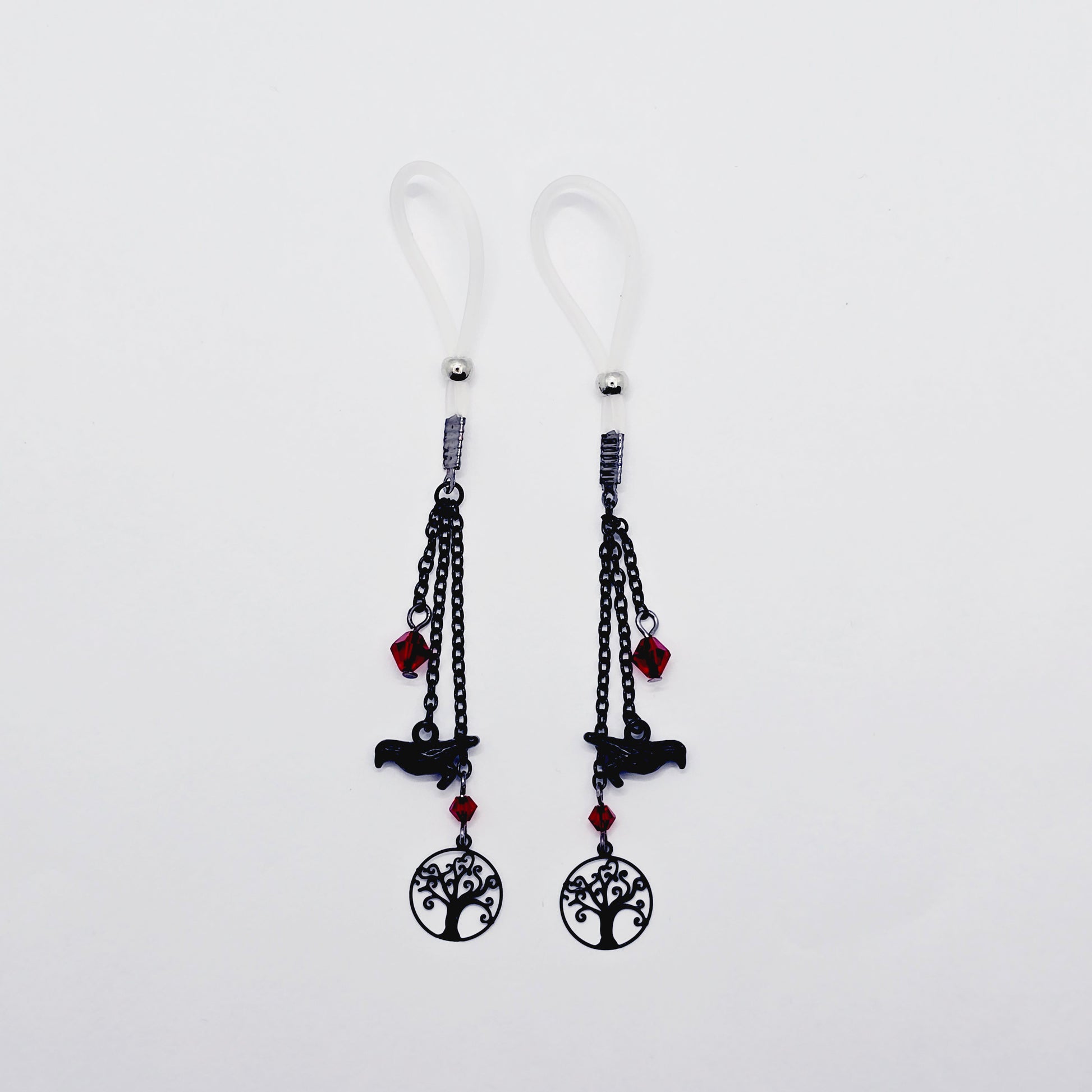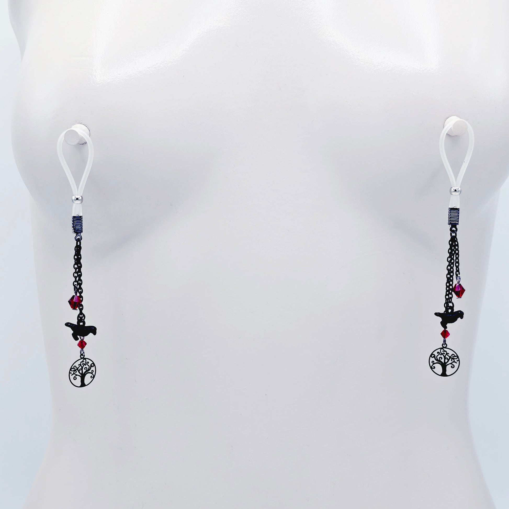 Non-Piercing Nipple Dangles with Ravens. Nipple Nooses or Your Choice of Nipple Clamps.