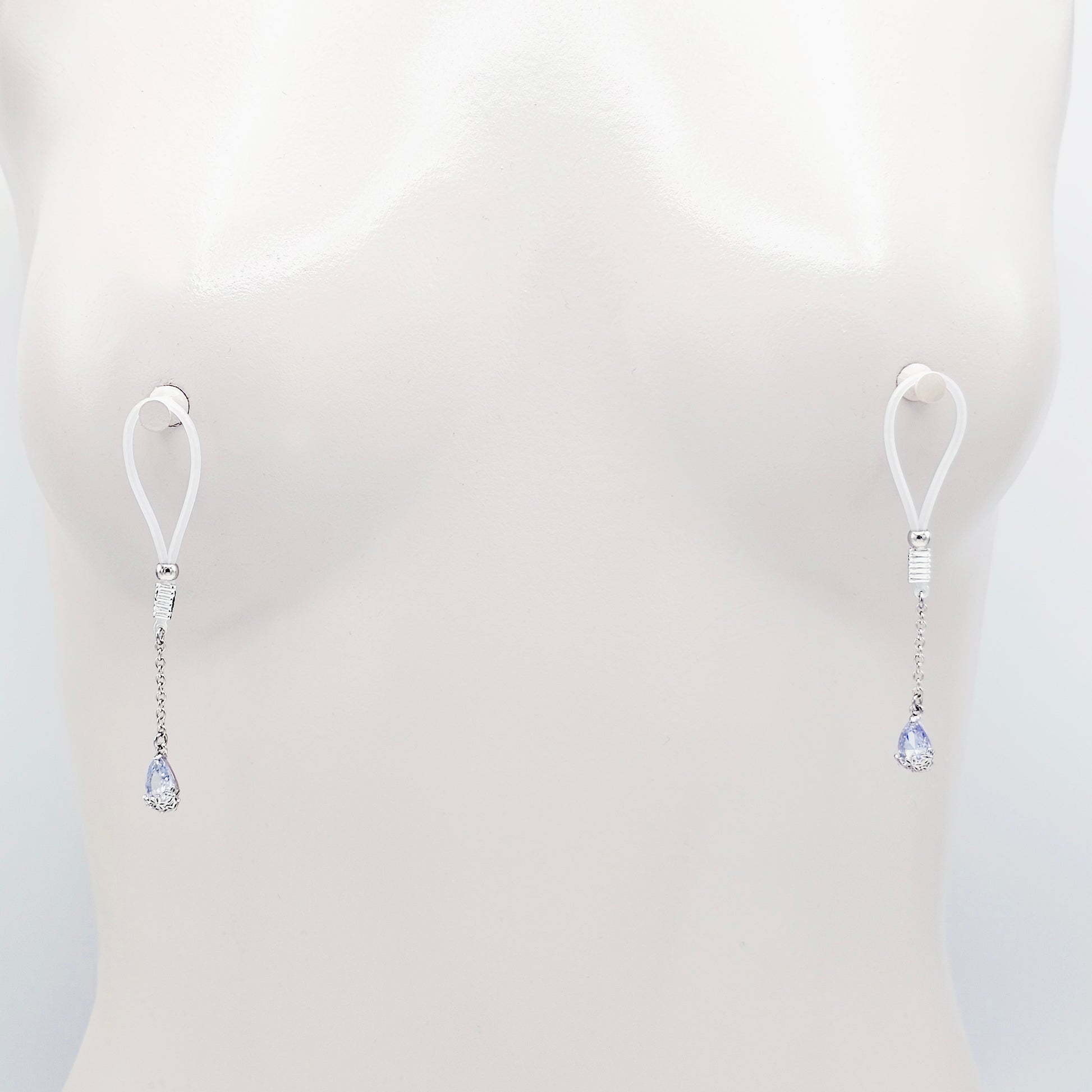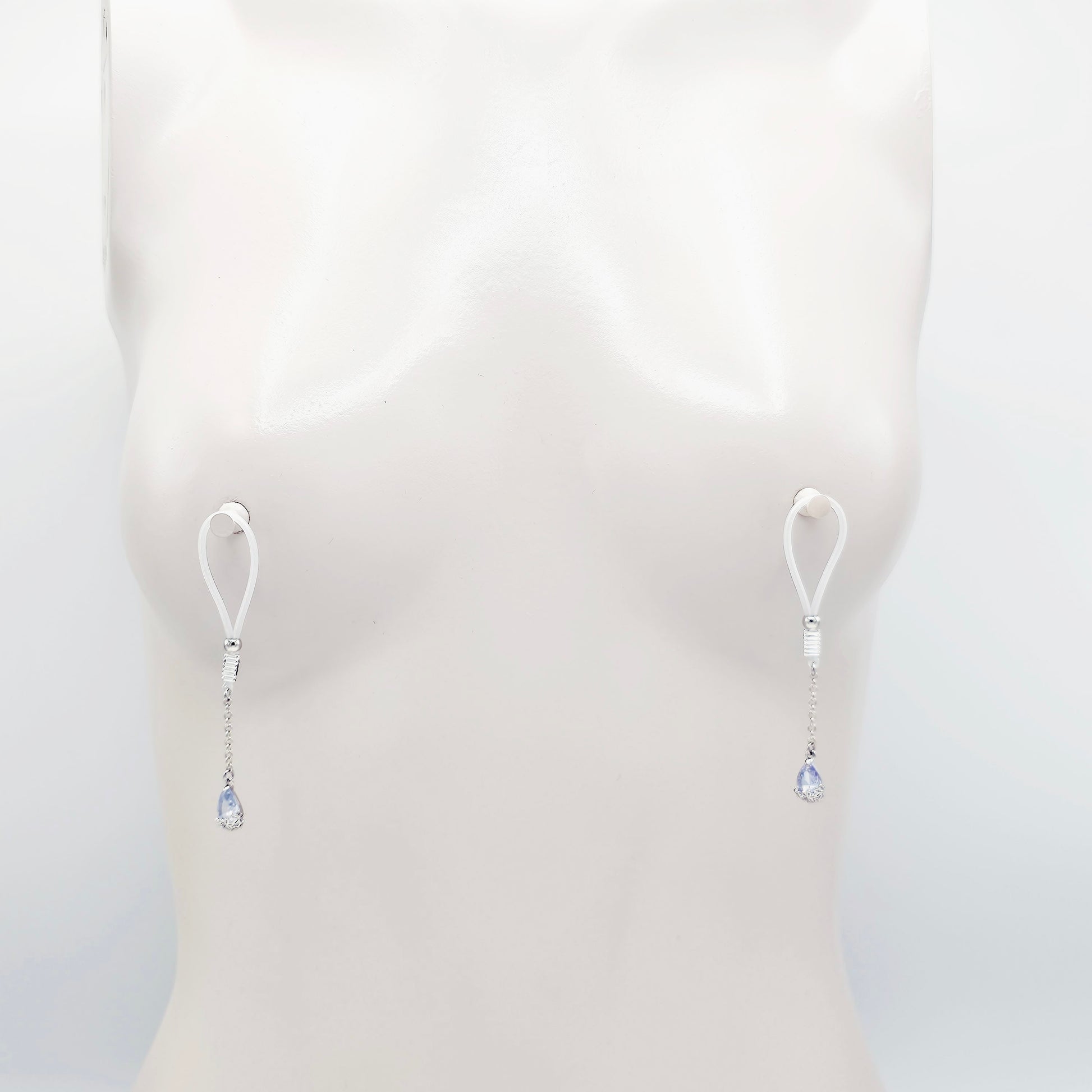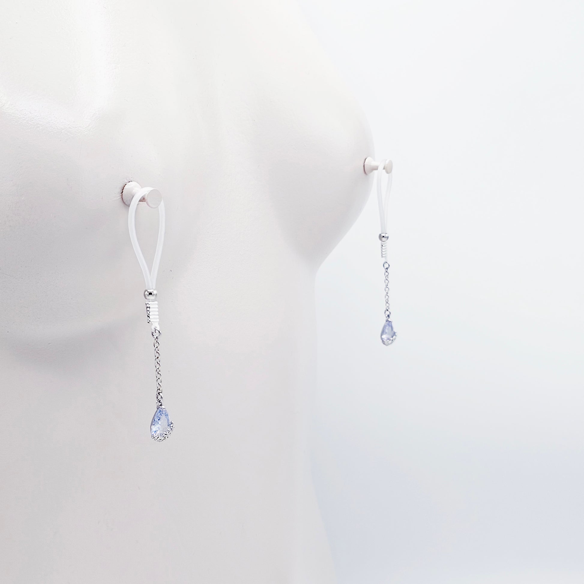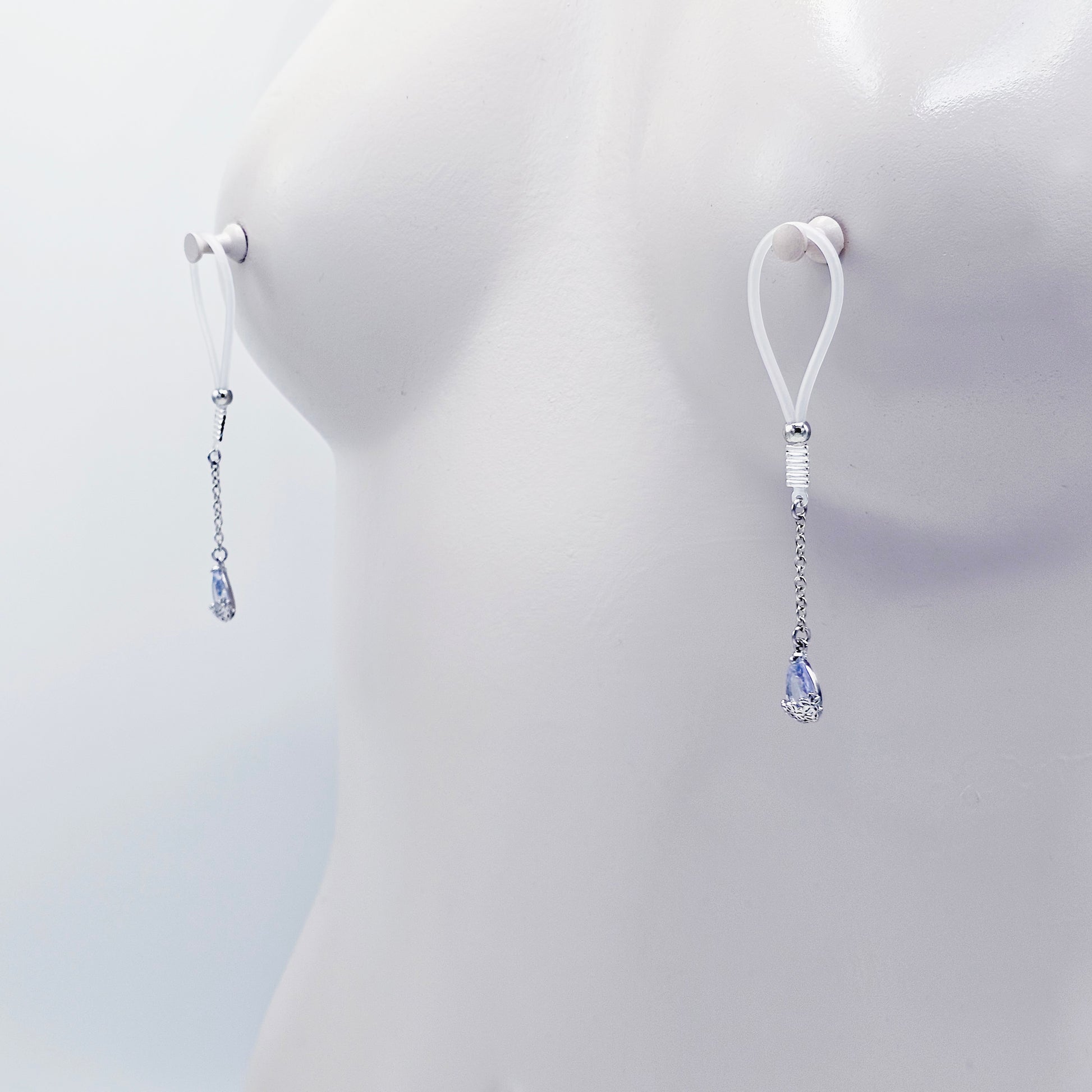 Non Piercing Nipple Dangles on Nipple Nooses or Clamps with Dazzling Cubic Zirconia Pendants.