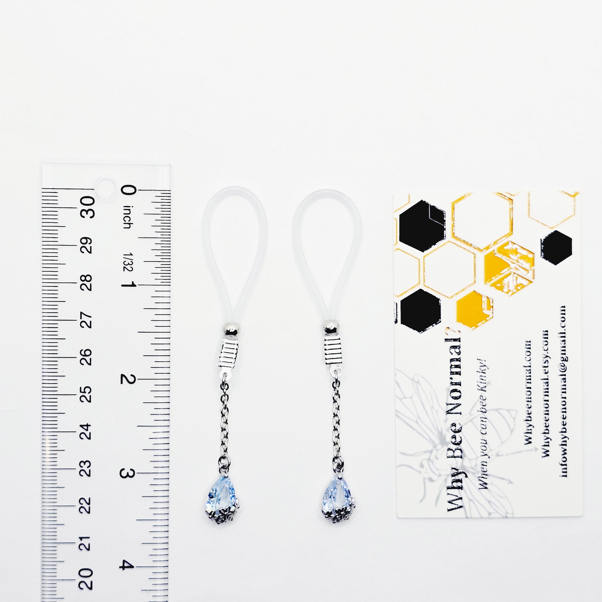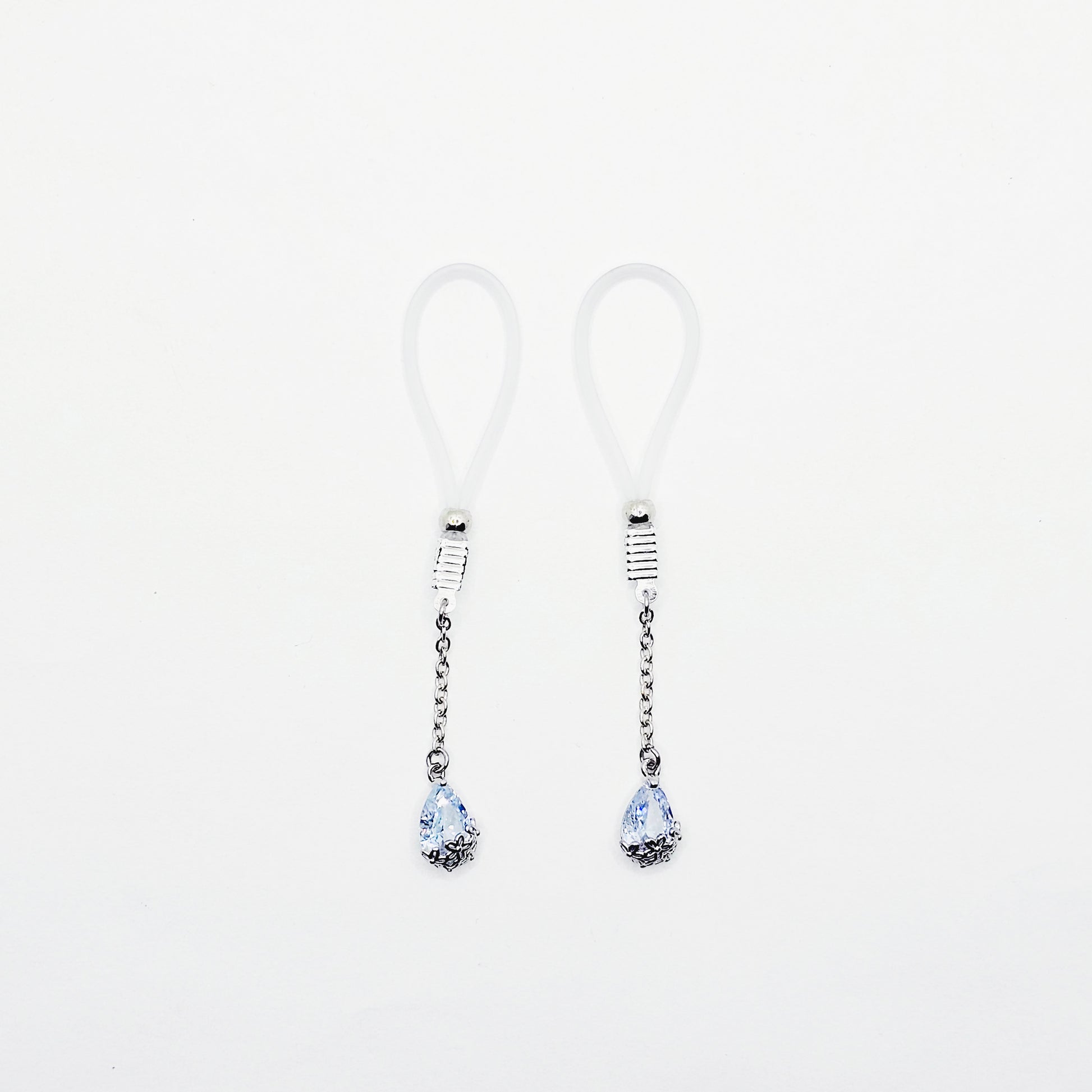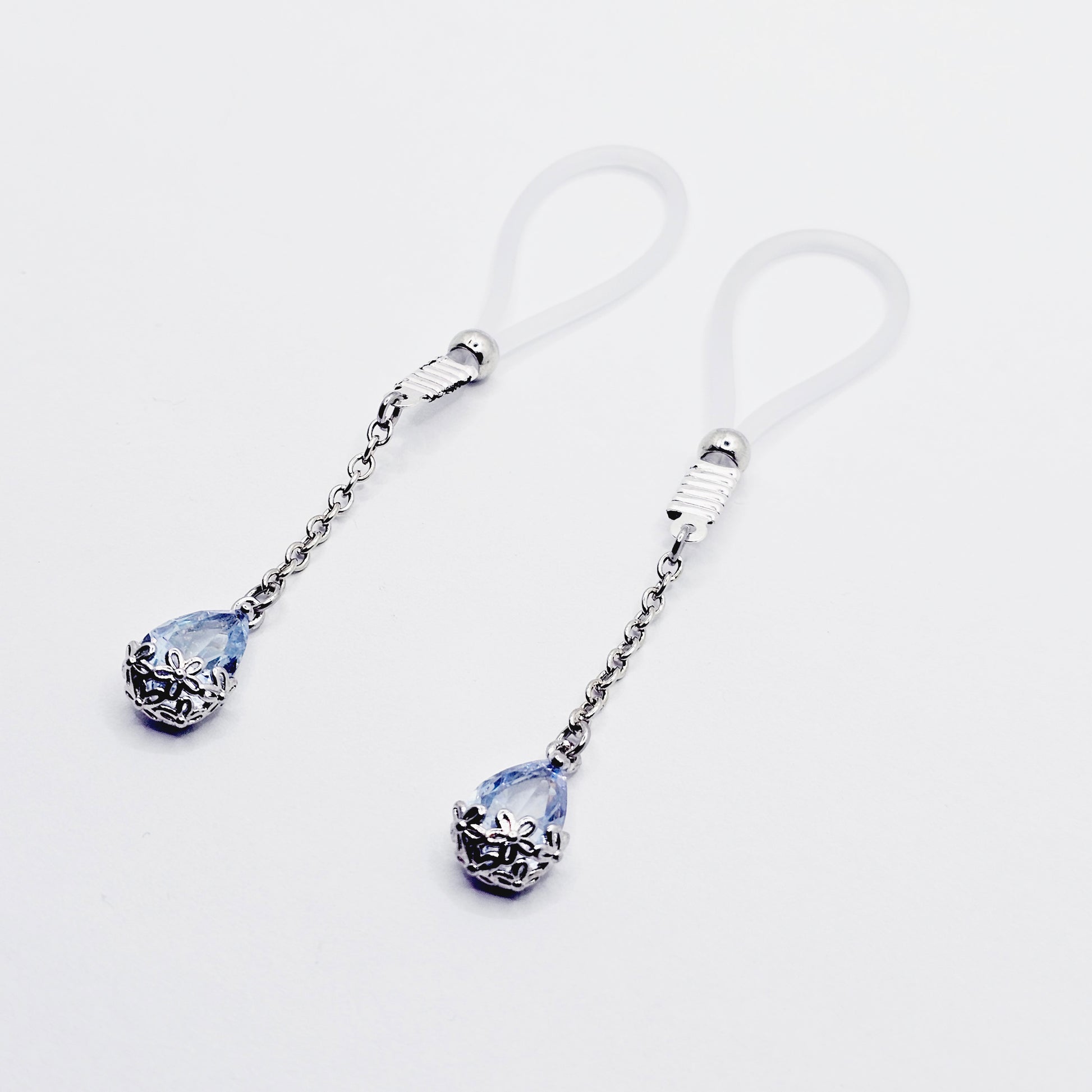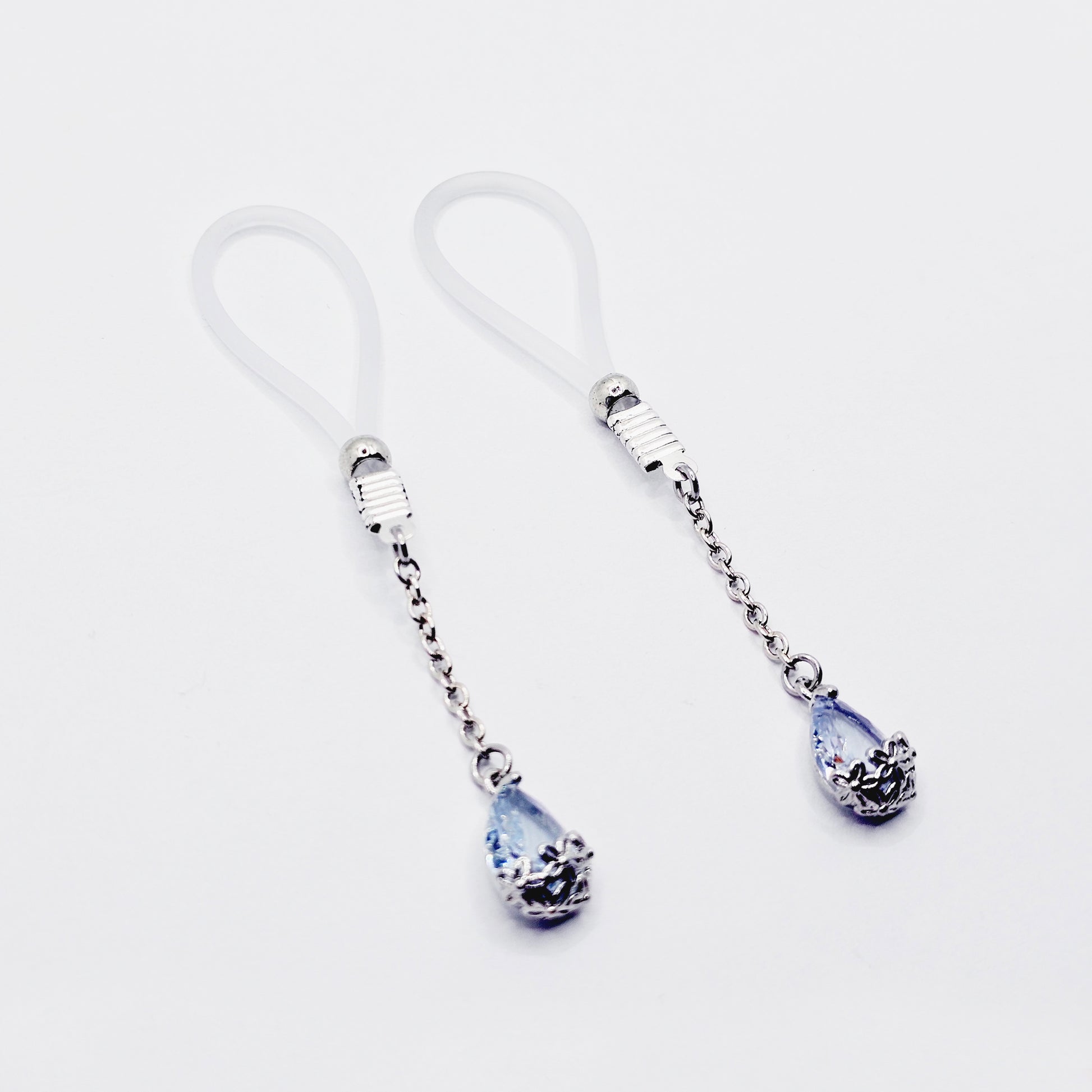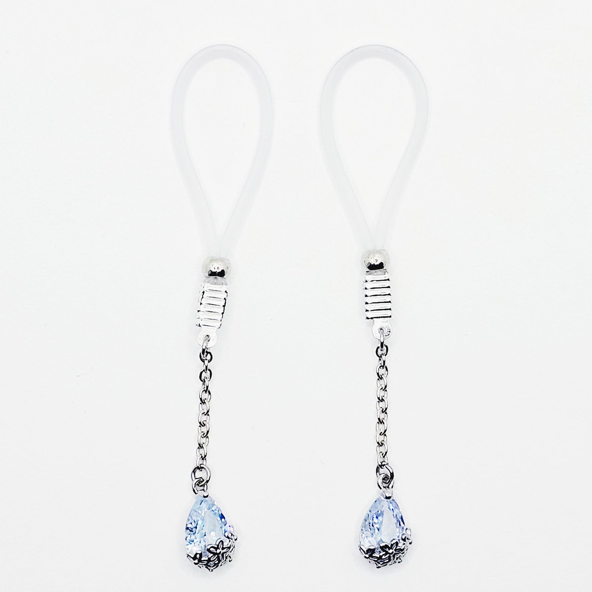 Non Piercing Nipple Dangles on Nipple Nooses or Clamps with Dazzling Cubic Zirconia Pendants.
