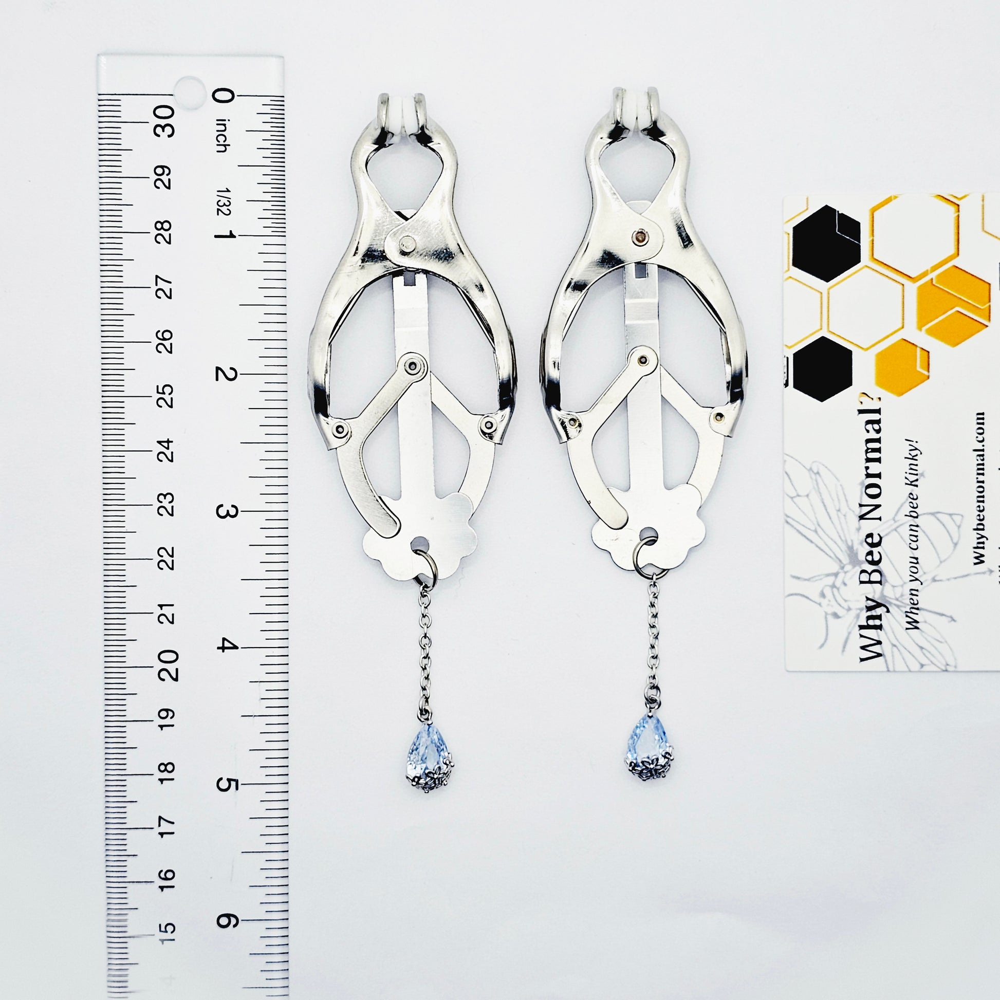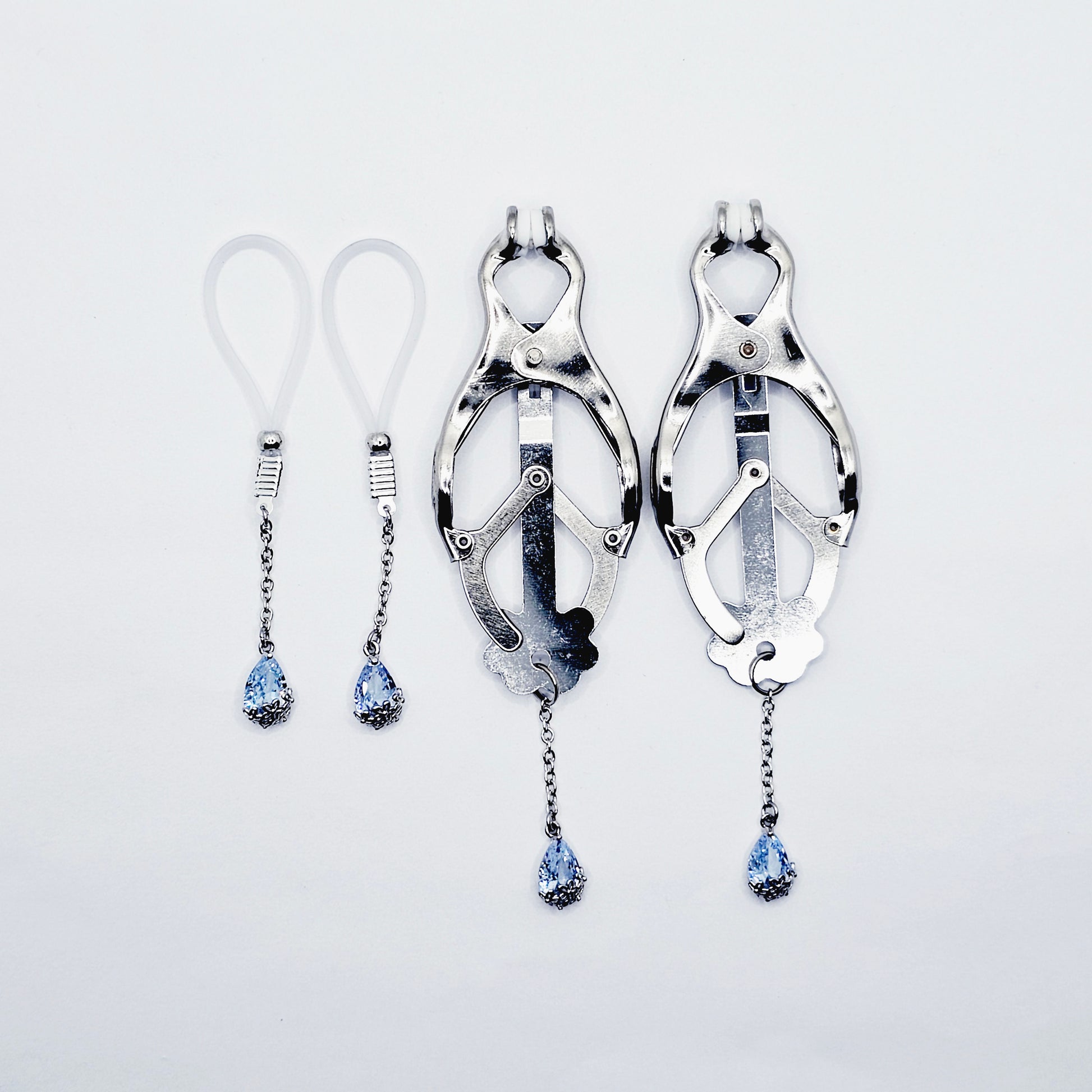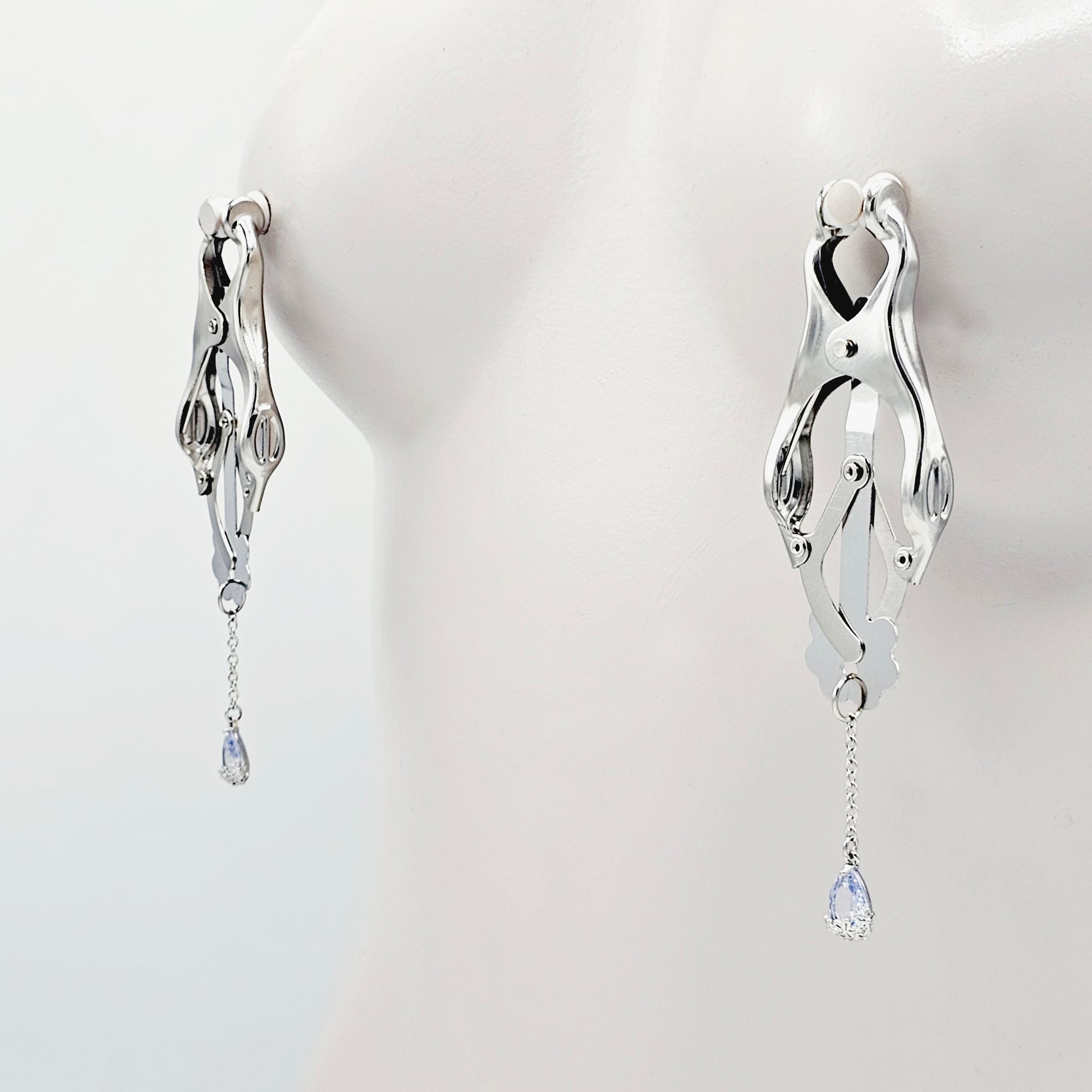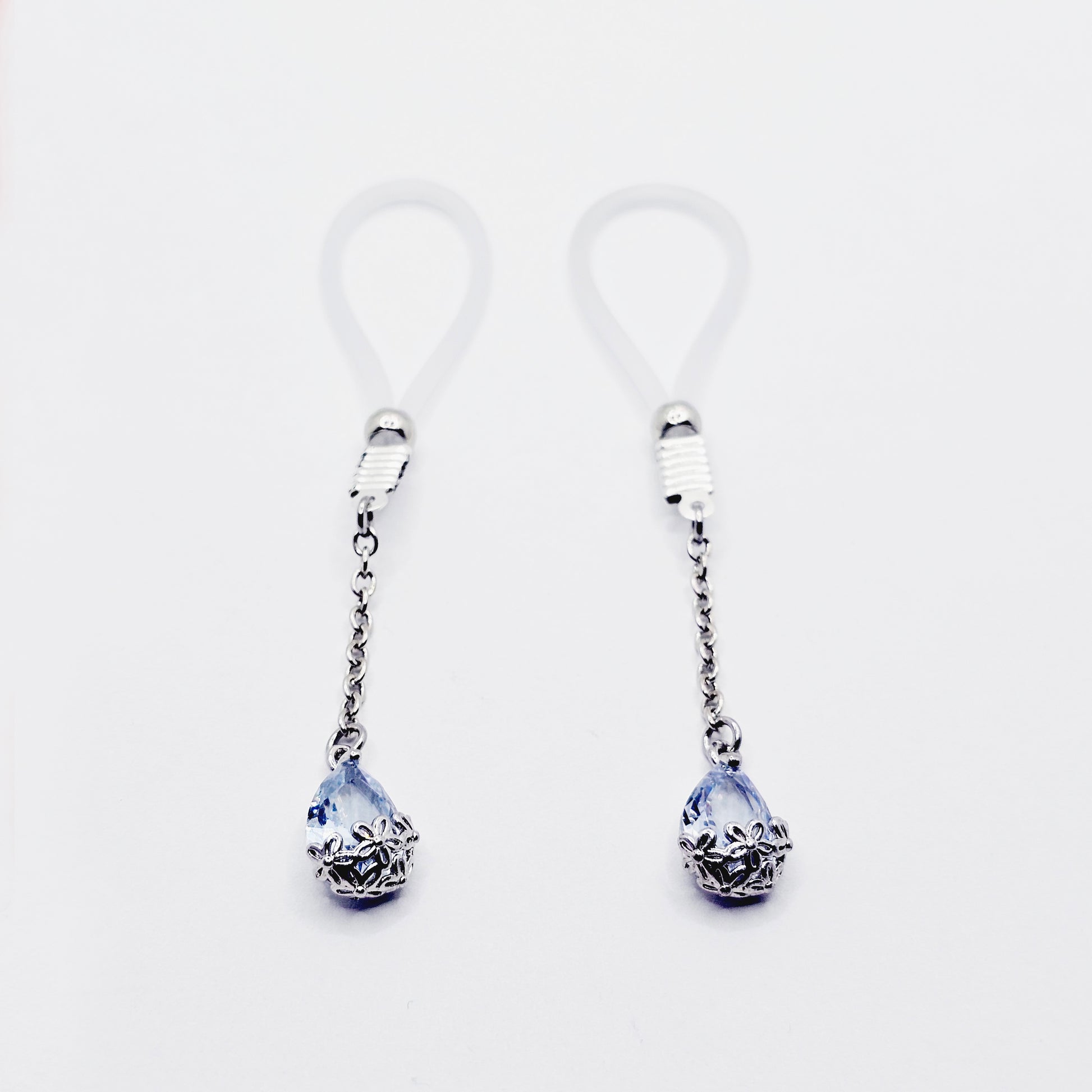 Non Piercing Nipple Dangles on Nipple Nooses or Clamps with Dazzling Cubic Zirconia Pendants.