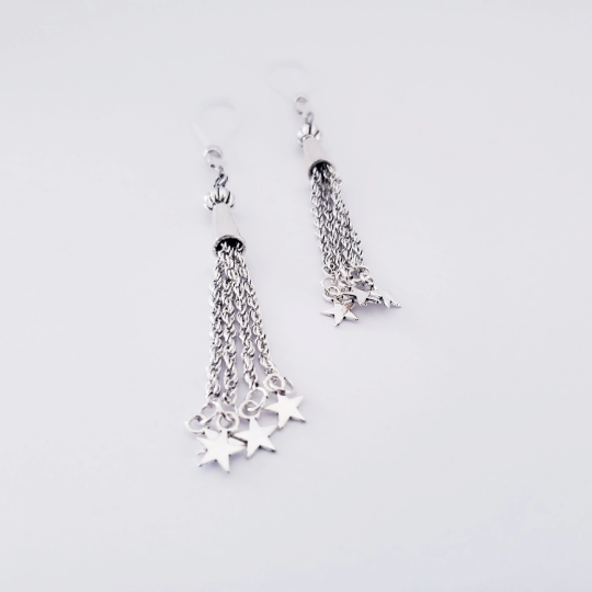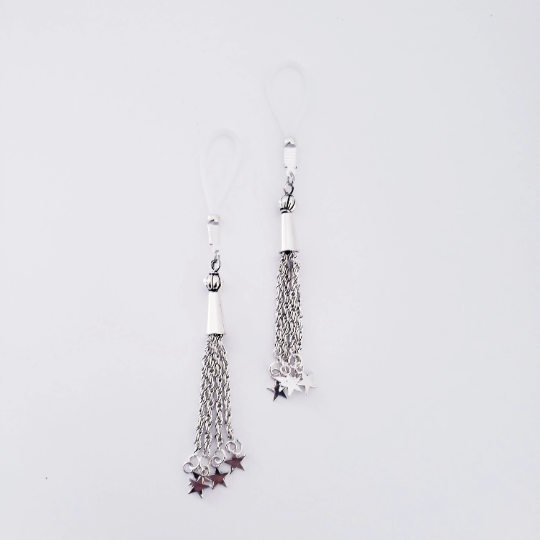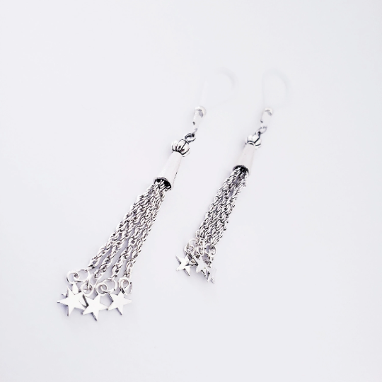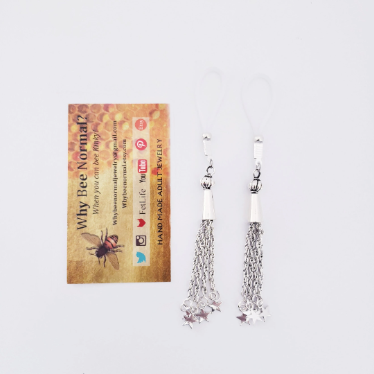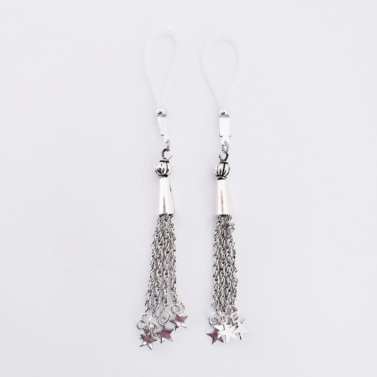 Non Piercing Nipple Dangles with Silver Stars. Choose Nooses or Clamps.