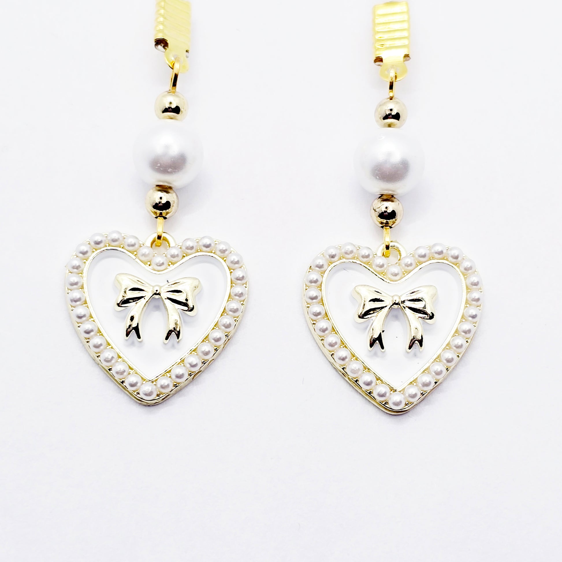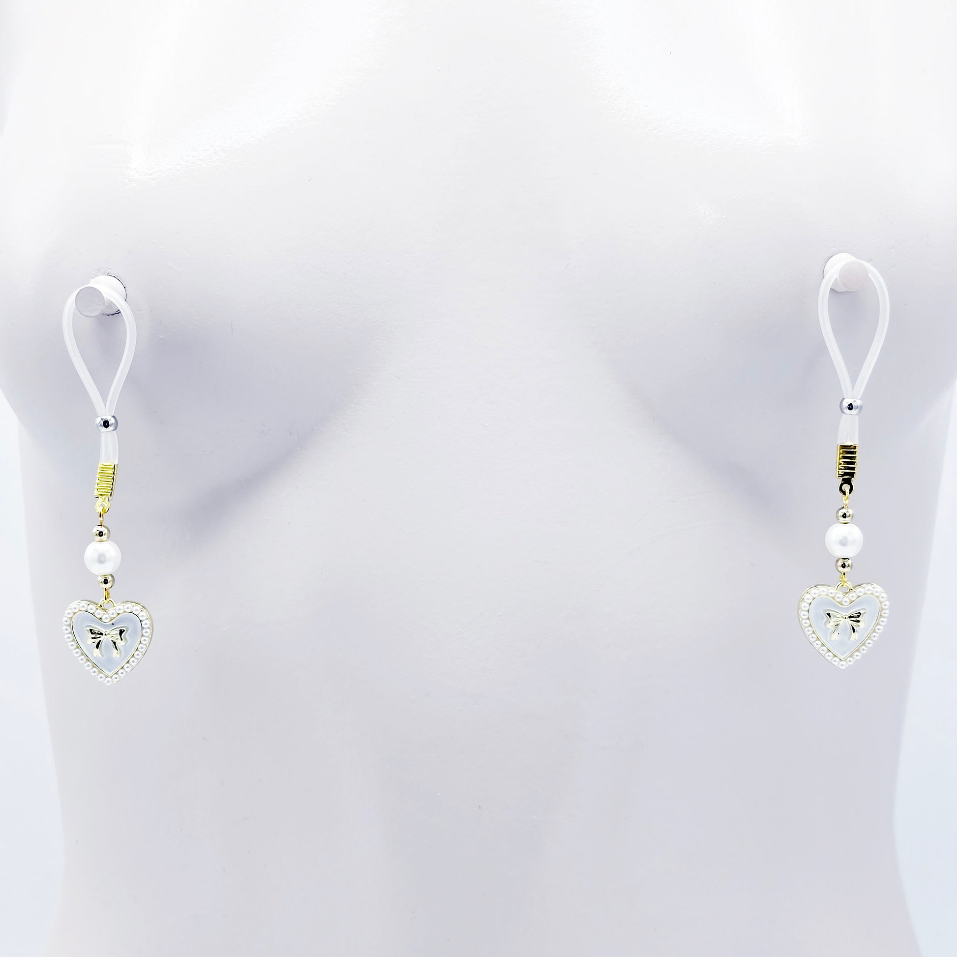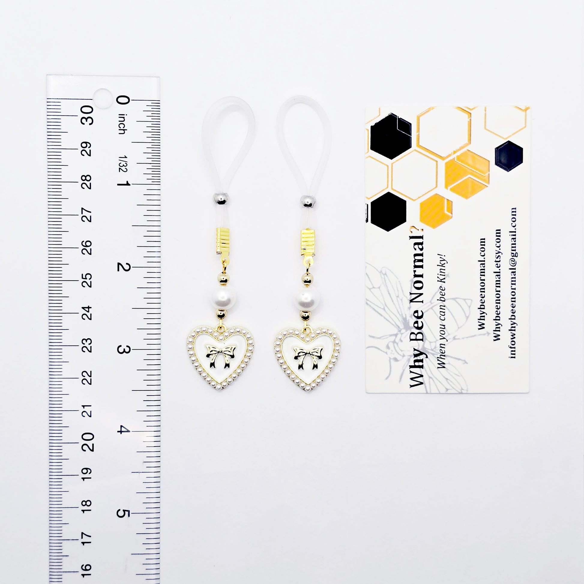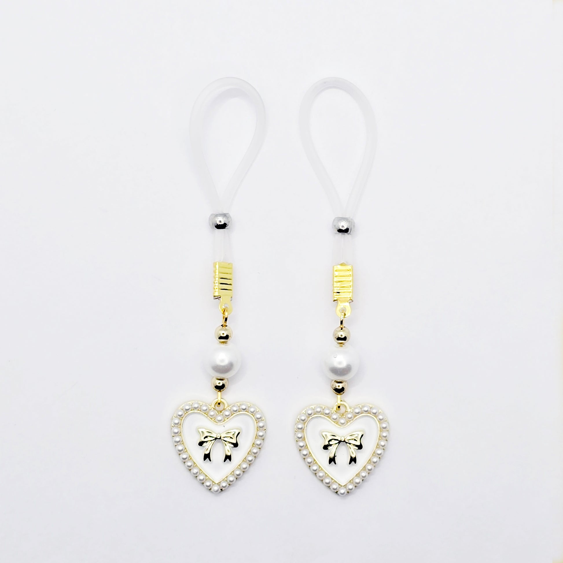 Non-Piercing Nipple Nooses or Clamps with Pearls and Hearts with Bows. Sexy Valentine's Gift for Her.