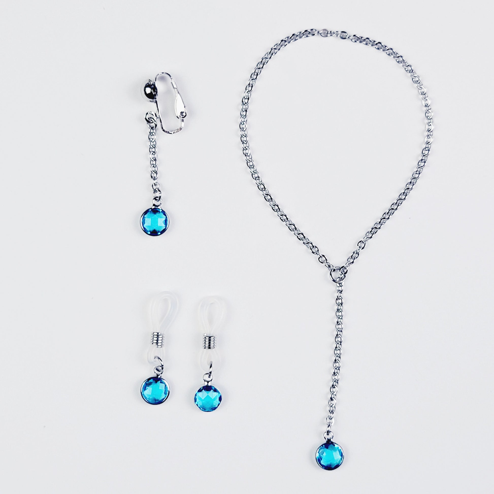 Non Piercing Nipple Nooses with Blue Gemstone. Small Nipple Dangles, Not Pierced.
