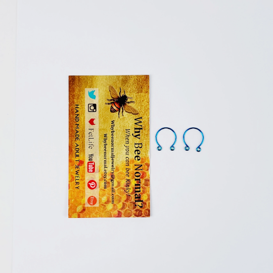 Non Piercing Nipple Rings, Blue Niobium. Hypoallergenic. Not Pierced.