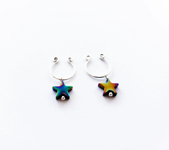 Non Piercing Nipple Rings with Metallic Star. Submissive, DDLG, Fake Nipple Piercings, BDSM