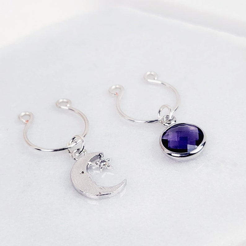 Nipple Rings with Silver Star, Moon, and Purple Gem