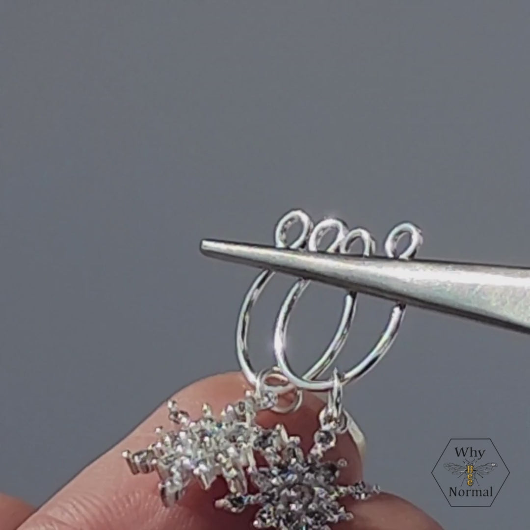 Non-Piercing Nipple Rings with Sterling Silver and Cubic Zirconia Snowflakes.