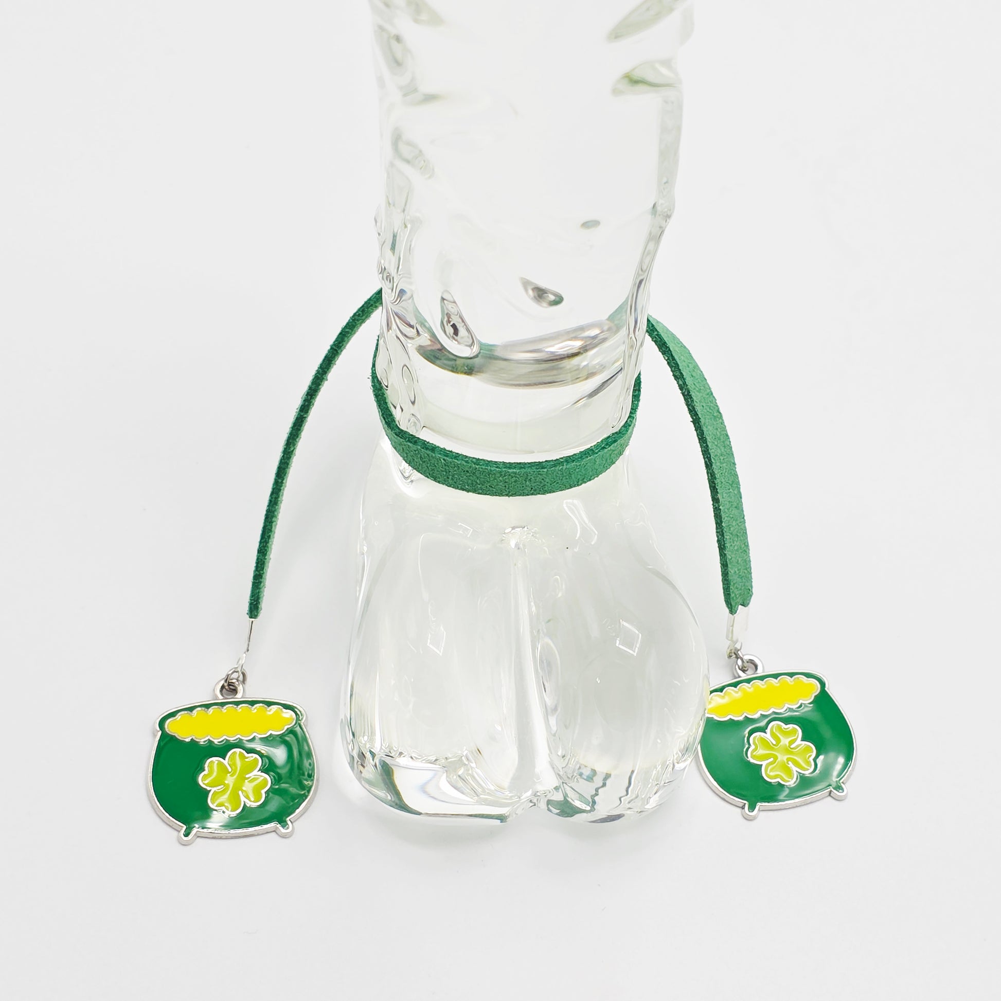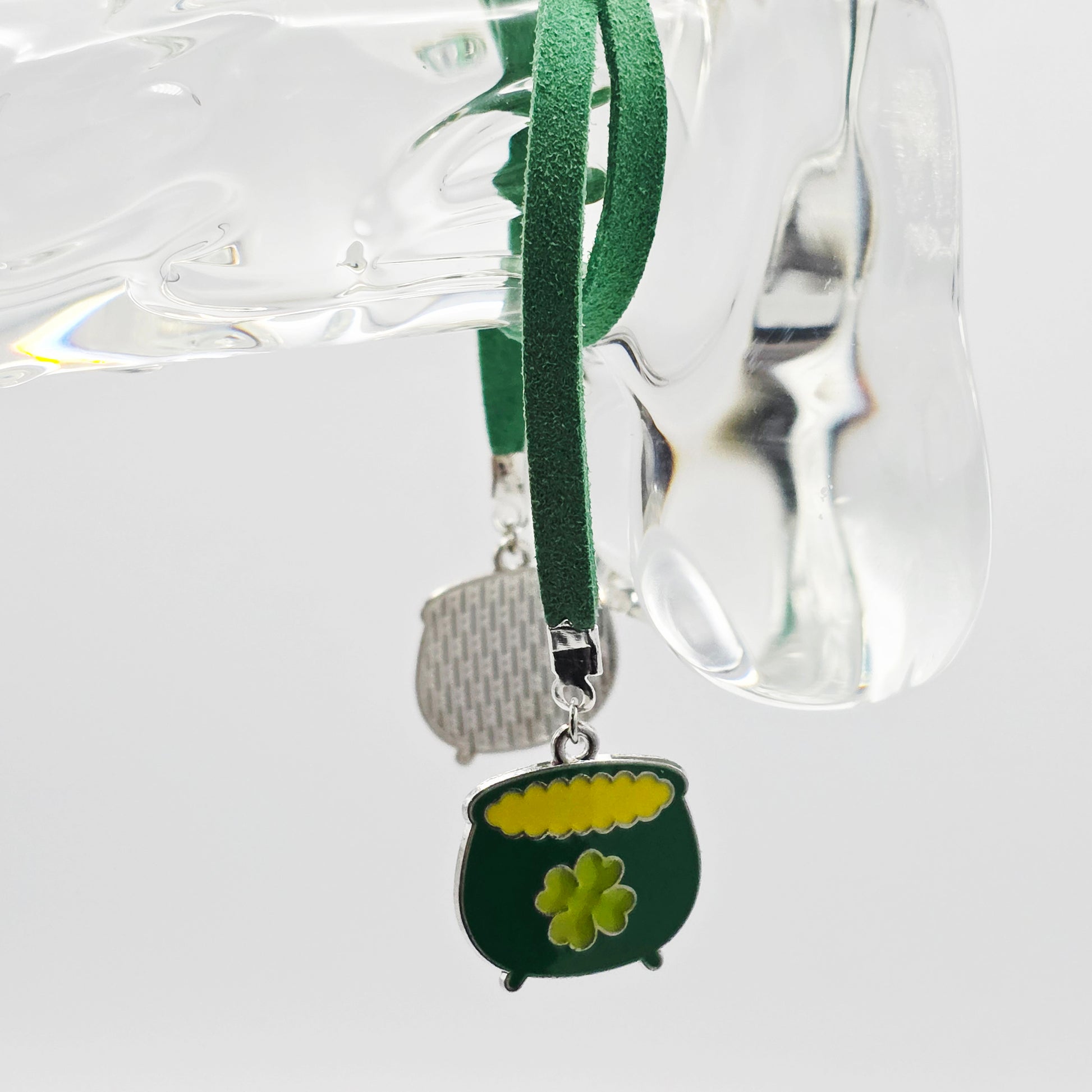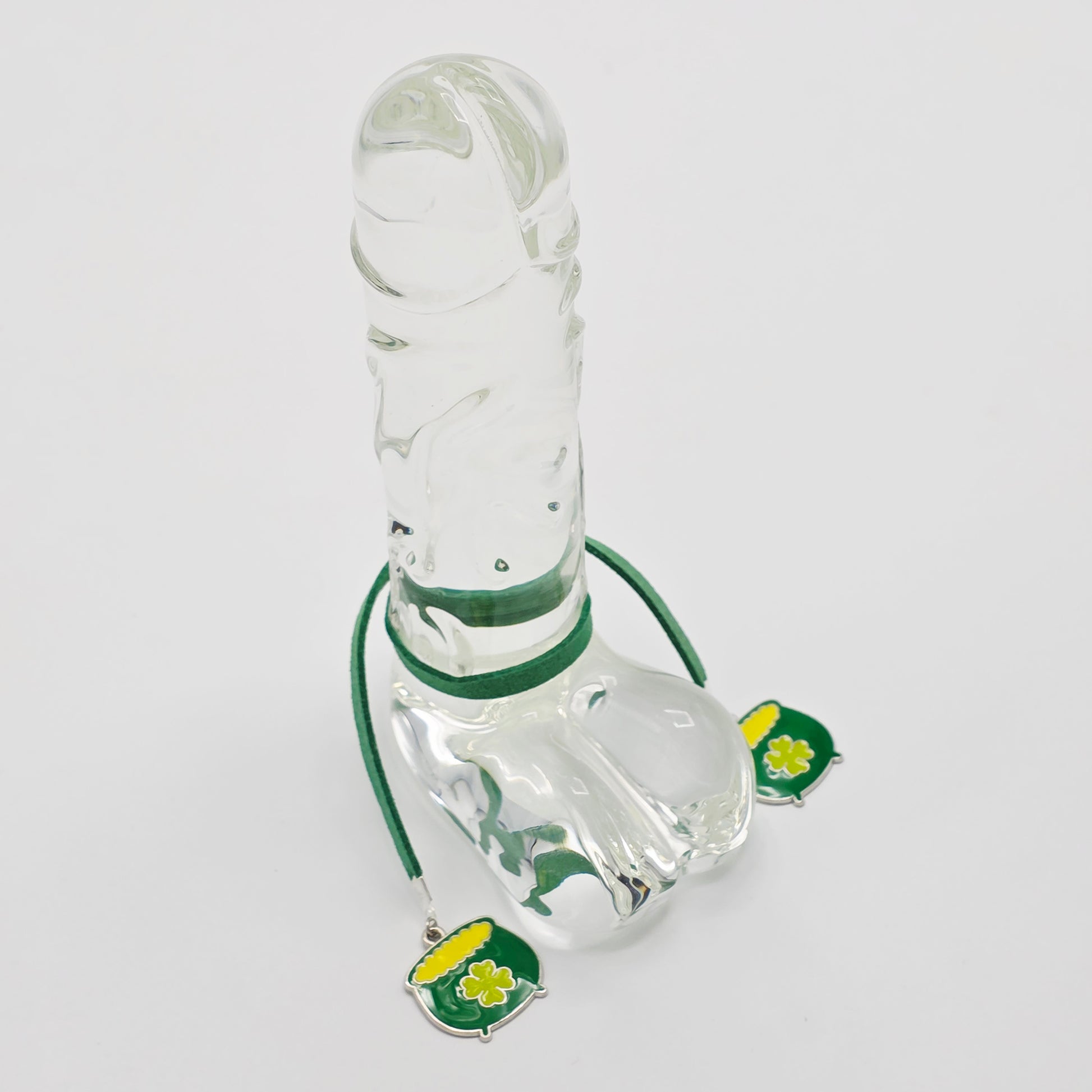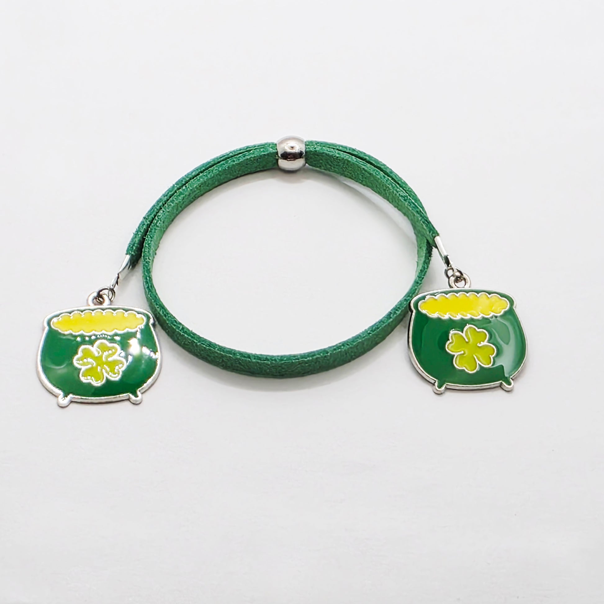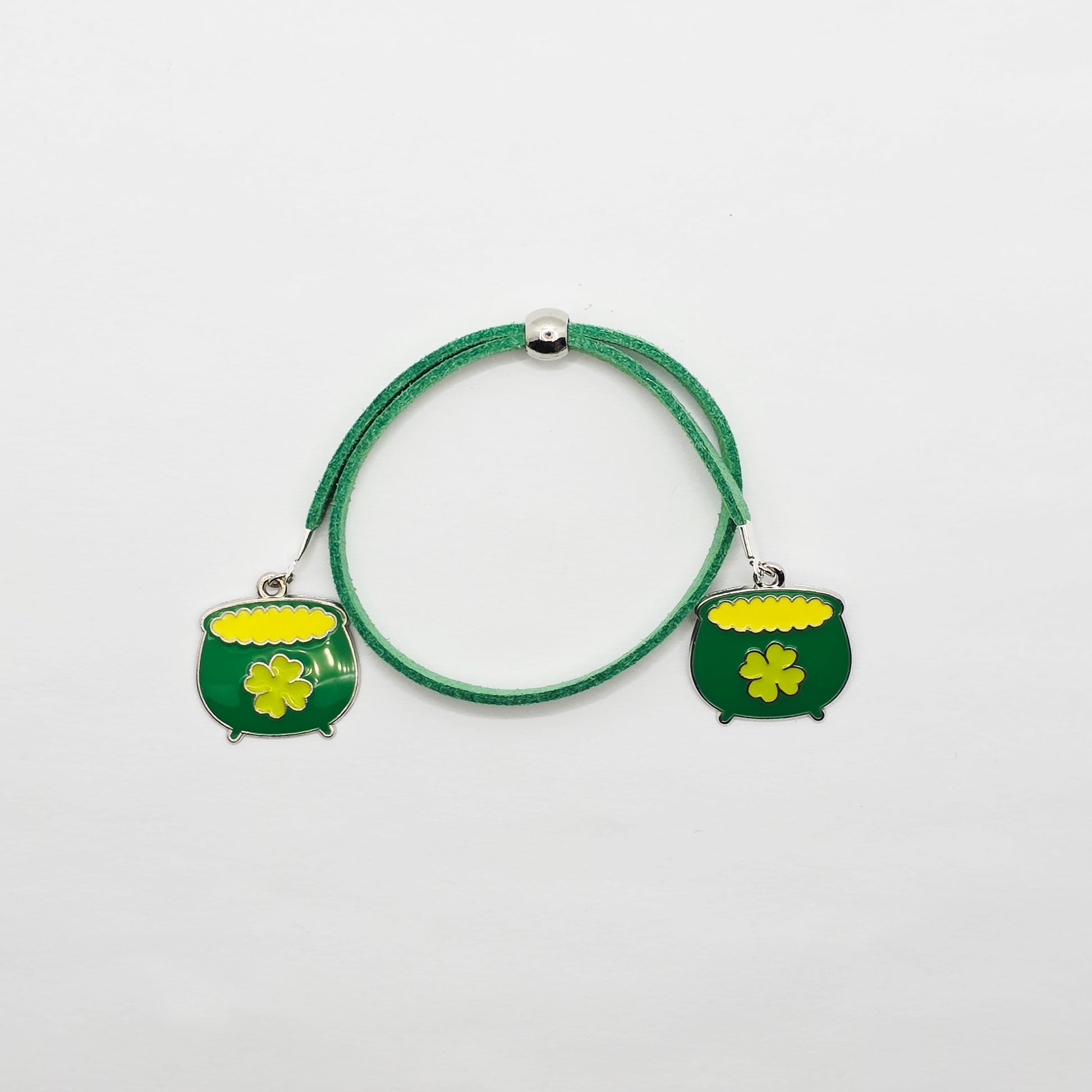 Where is your pot of gold for Saint Patrick's Day? Add some flare to your St Patty's wear! No measuring needed as this festive and fun penis noose is adjustable and fits most. Green faux suade penis noose bracelet with Shamrock Pot of Gold pendants.ย