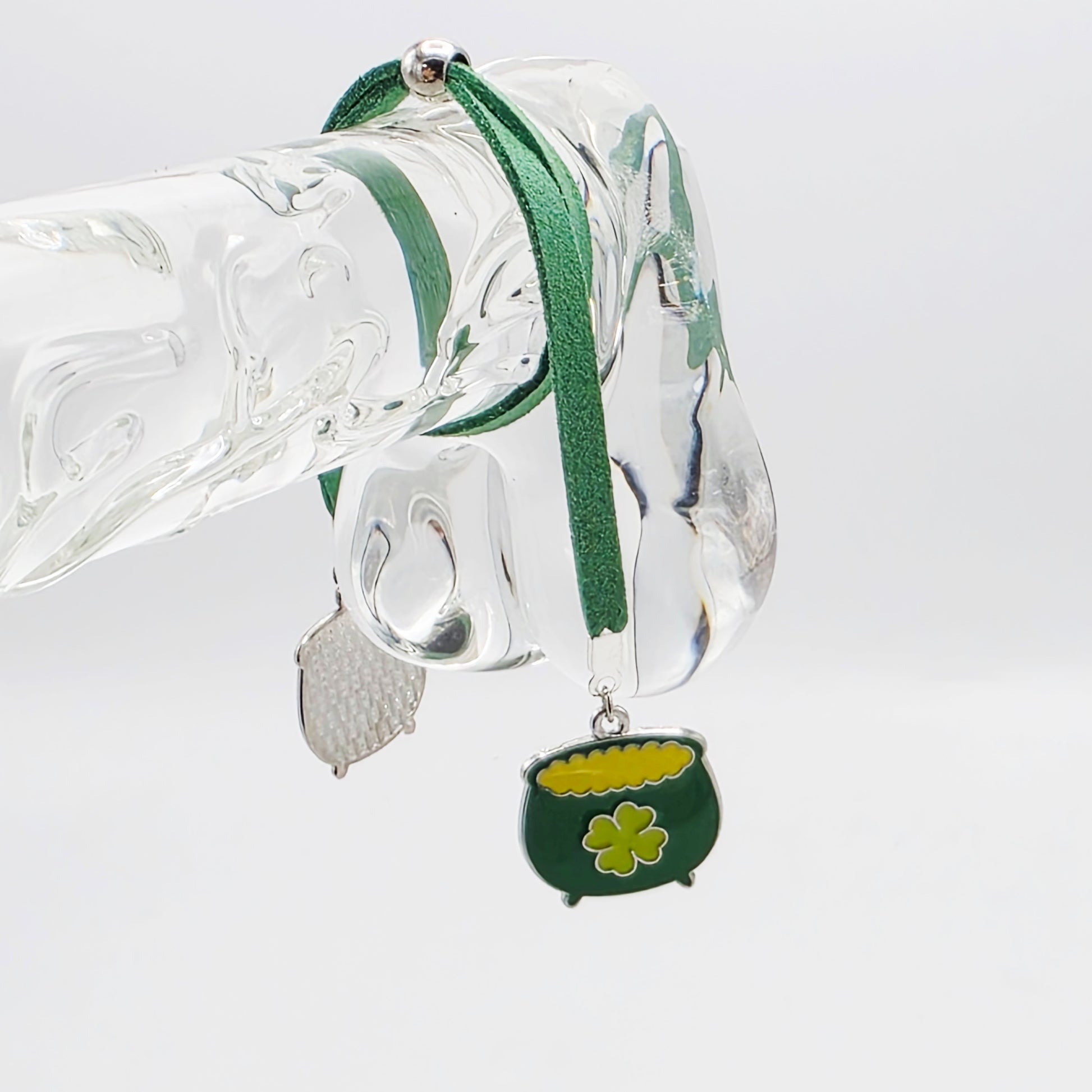 Pot O' Gold Penis Noose. Green Adjustable Cock Bracelet with Shamrock Pots of Gold Pendants.
