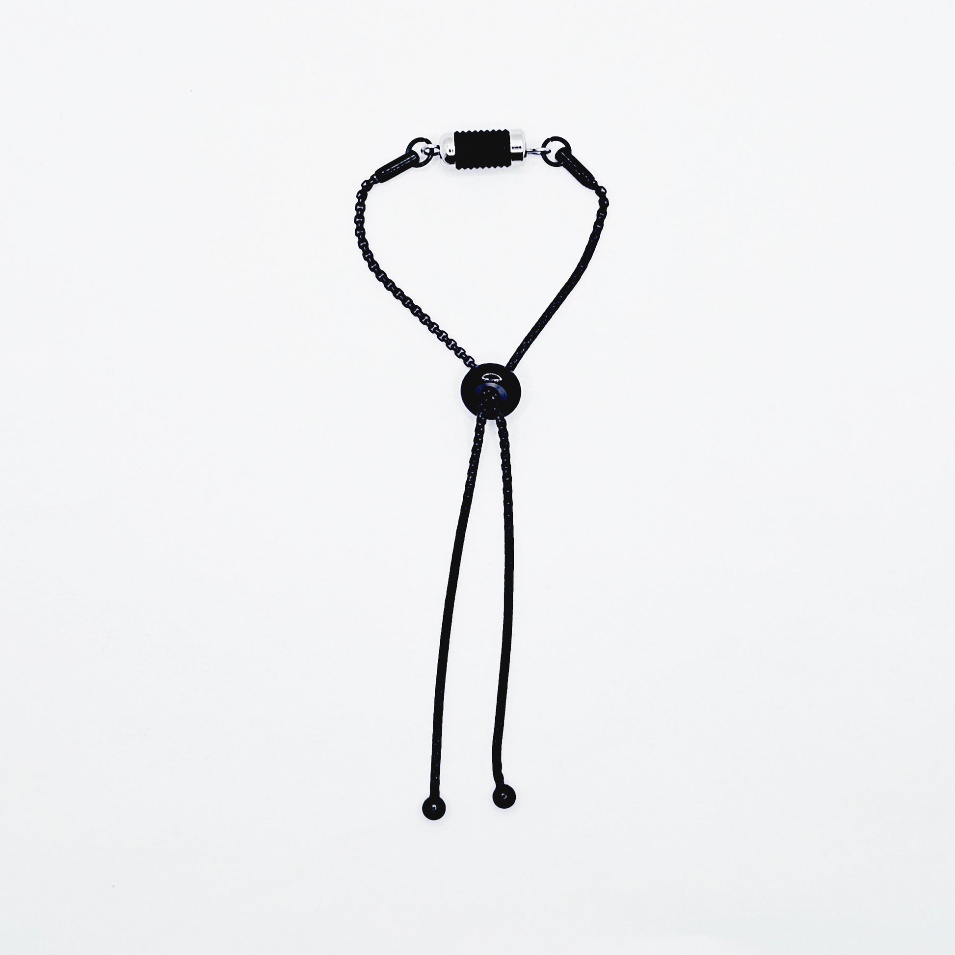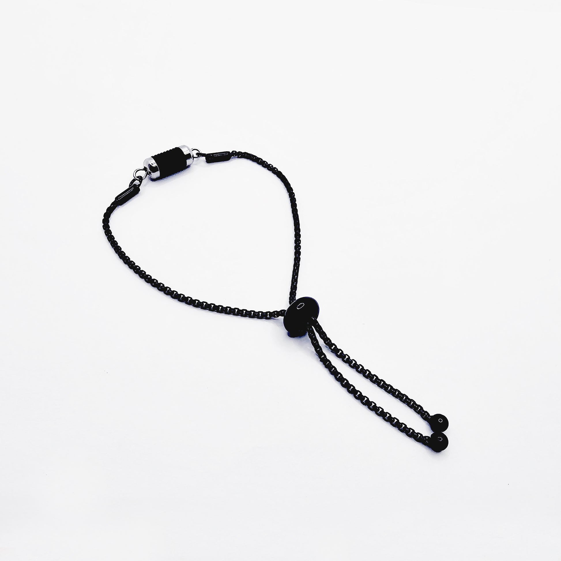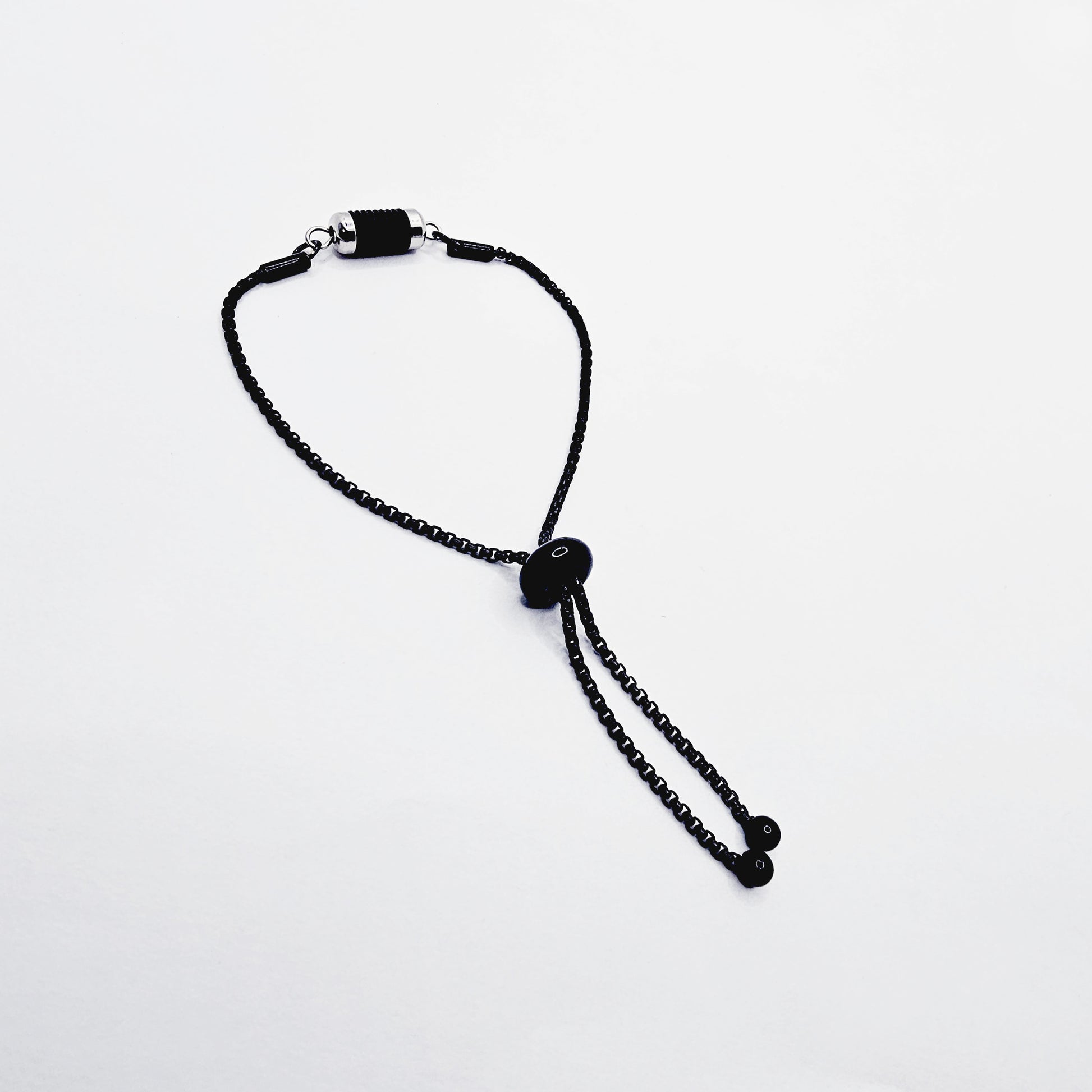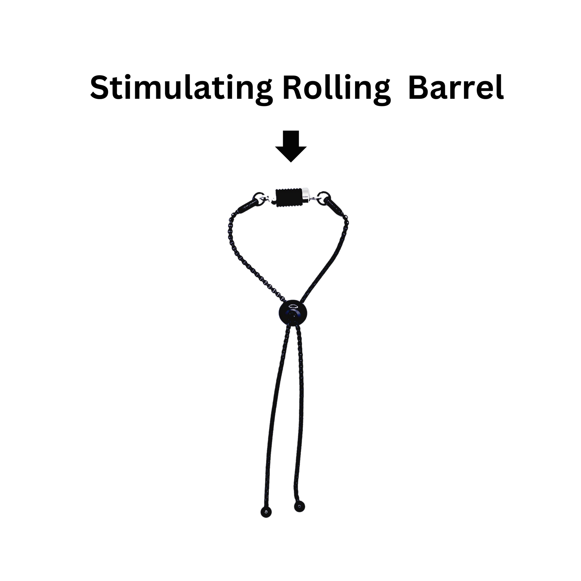 Penis Chain Noose Bracelet. Black Stainless Steel Adjustable Bolo Style Cock Ring with Stimulating Barrel Roller