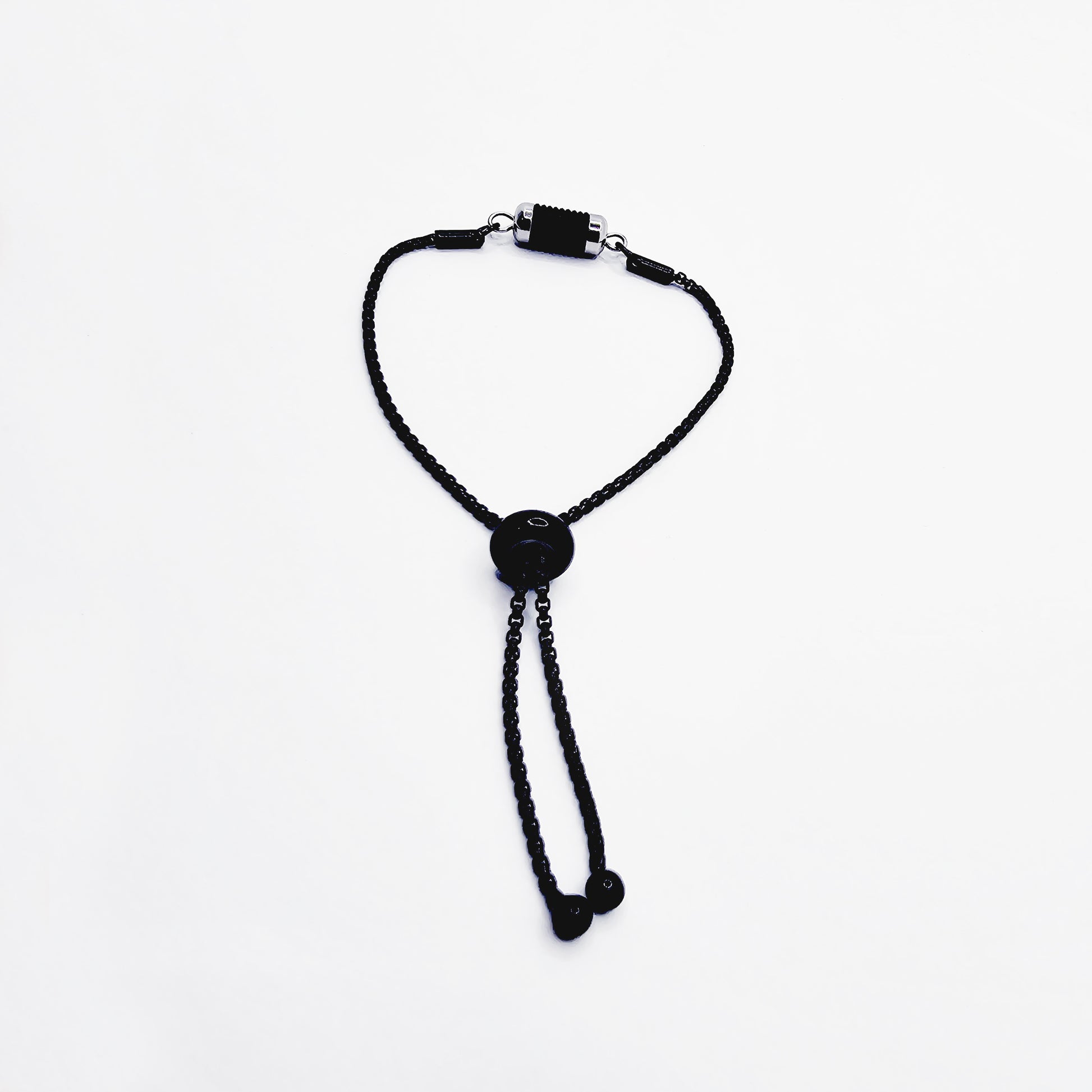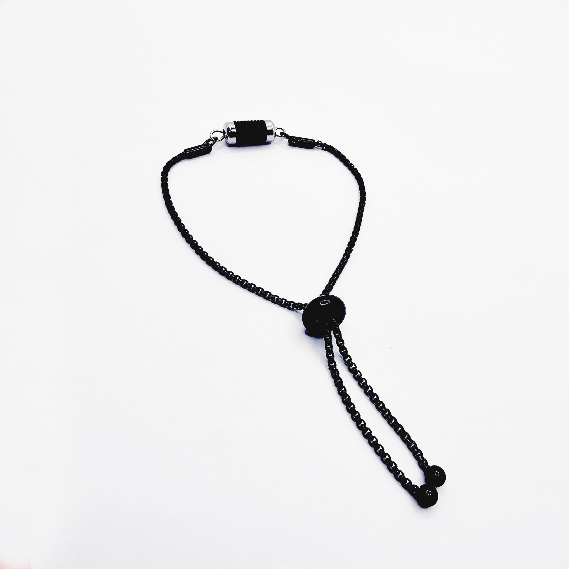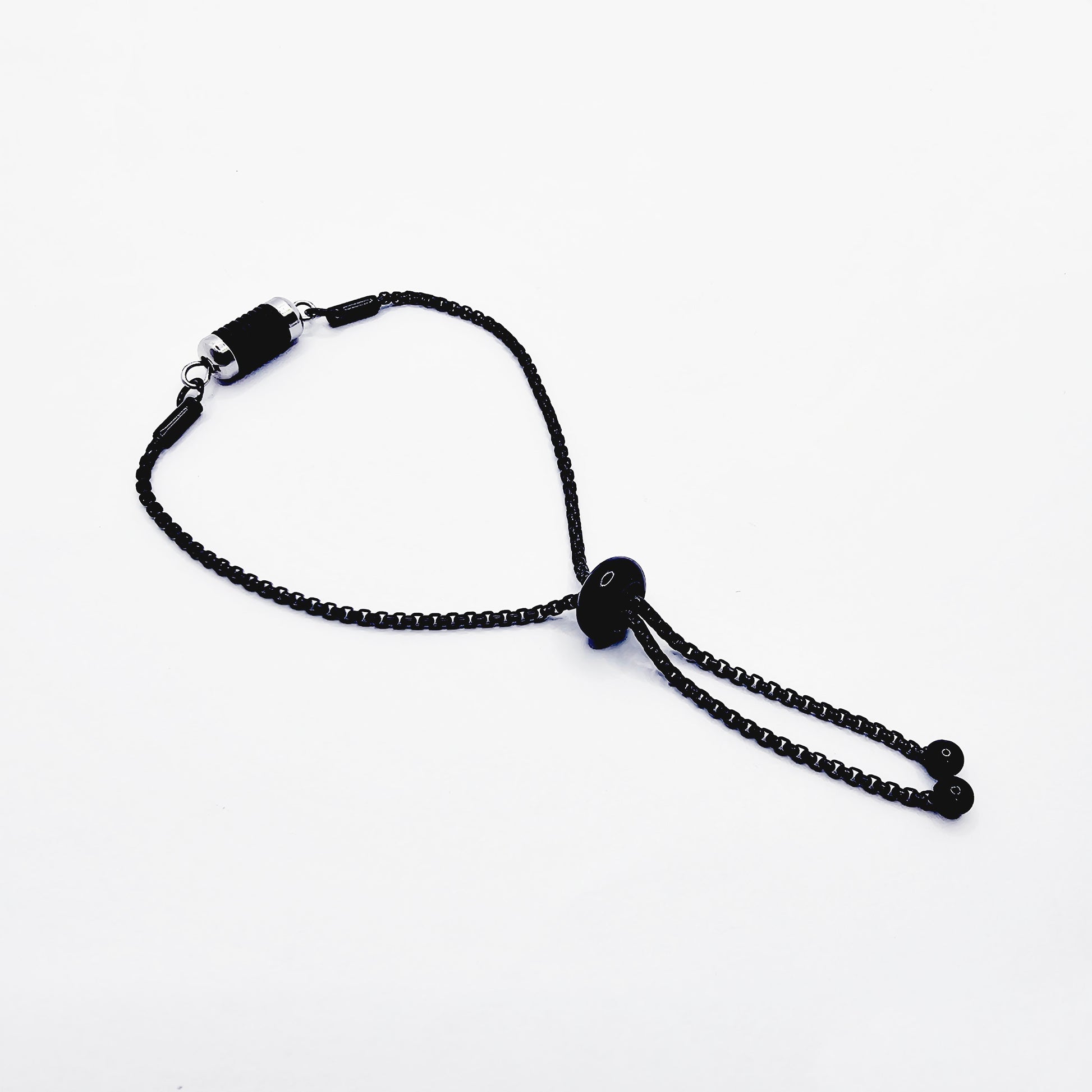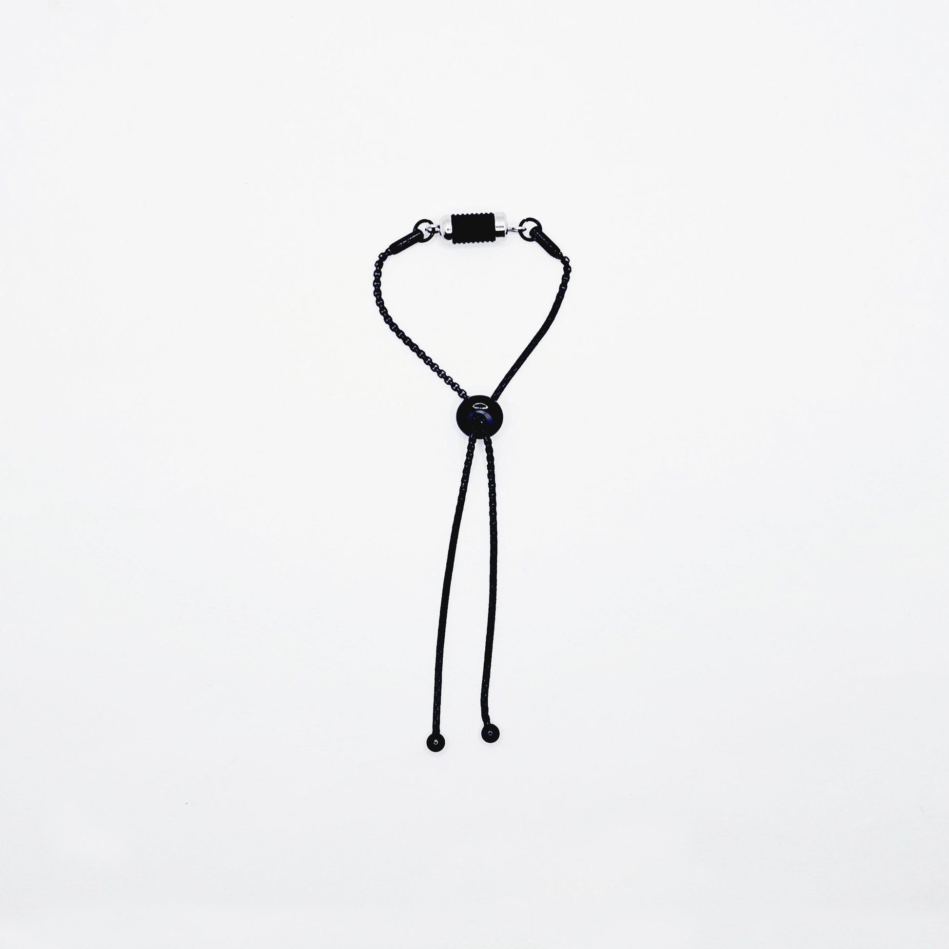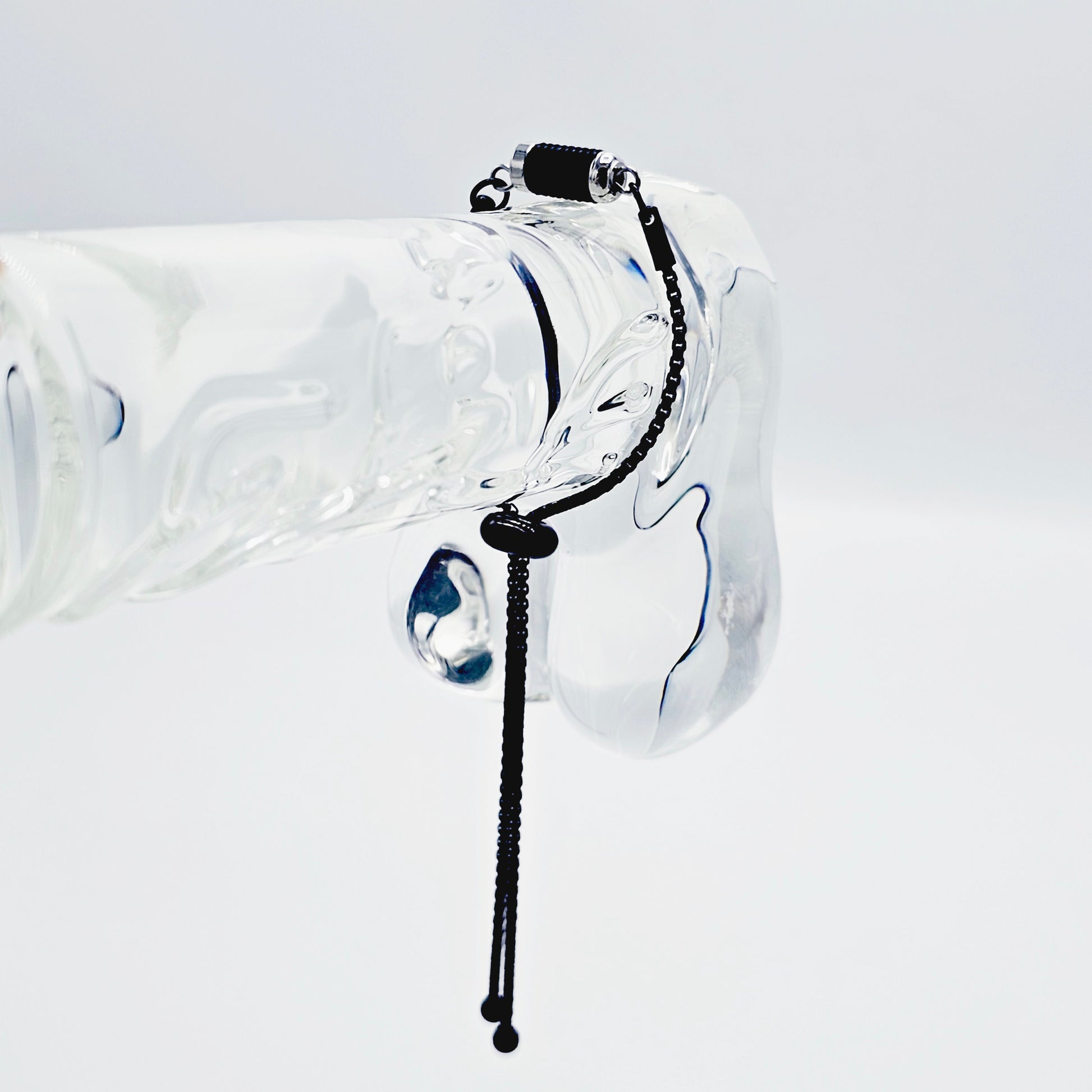Penis Chain Noose Bracelet. Black Stainless Steel Adjustable Bolo Style Cock Ring with Stimulating Barrel Roller