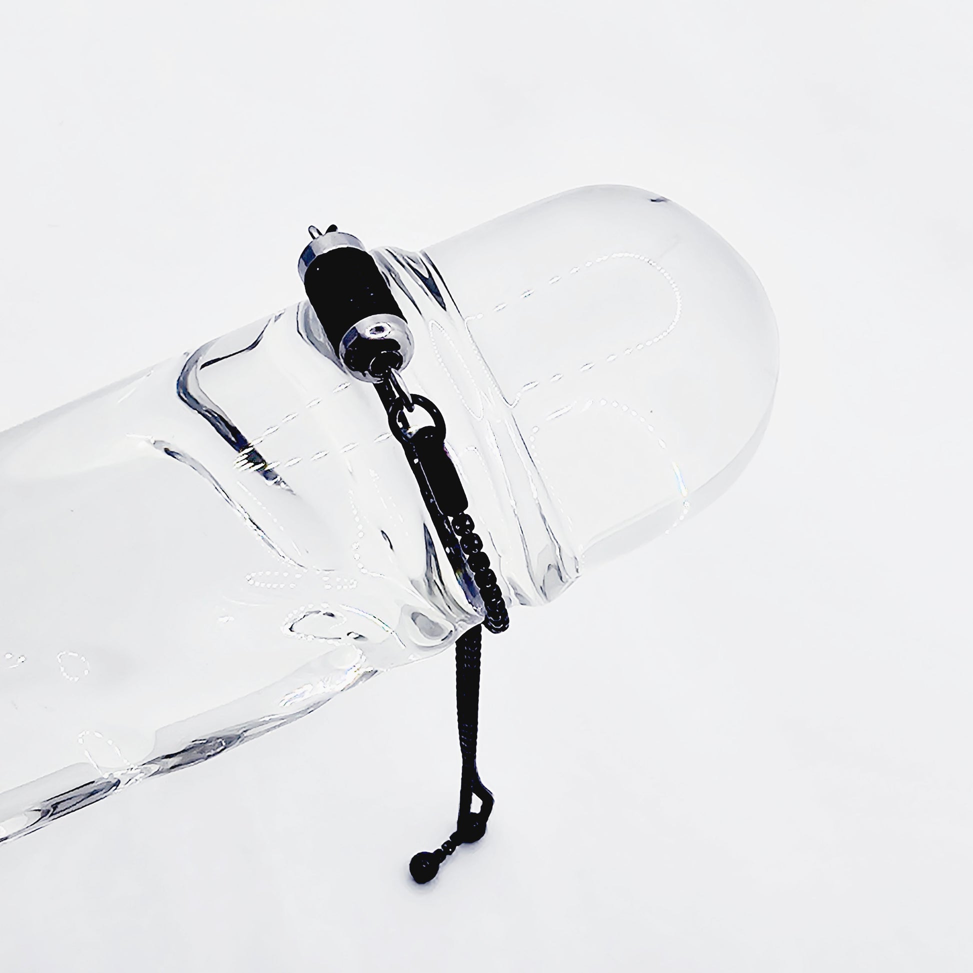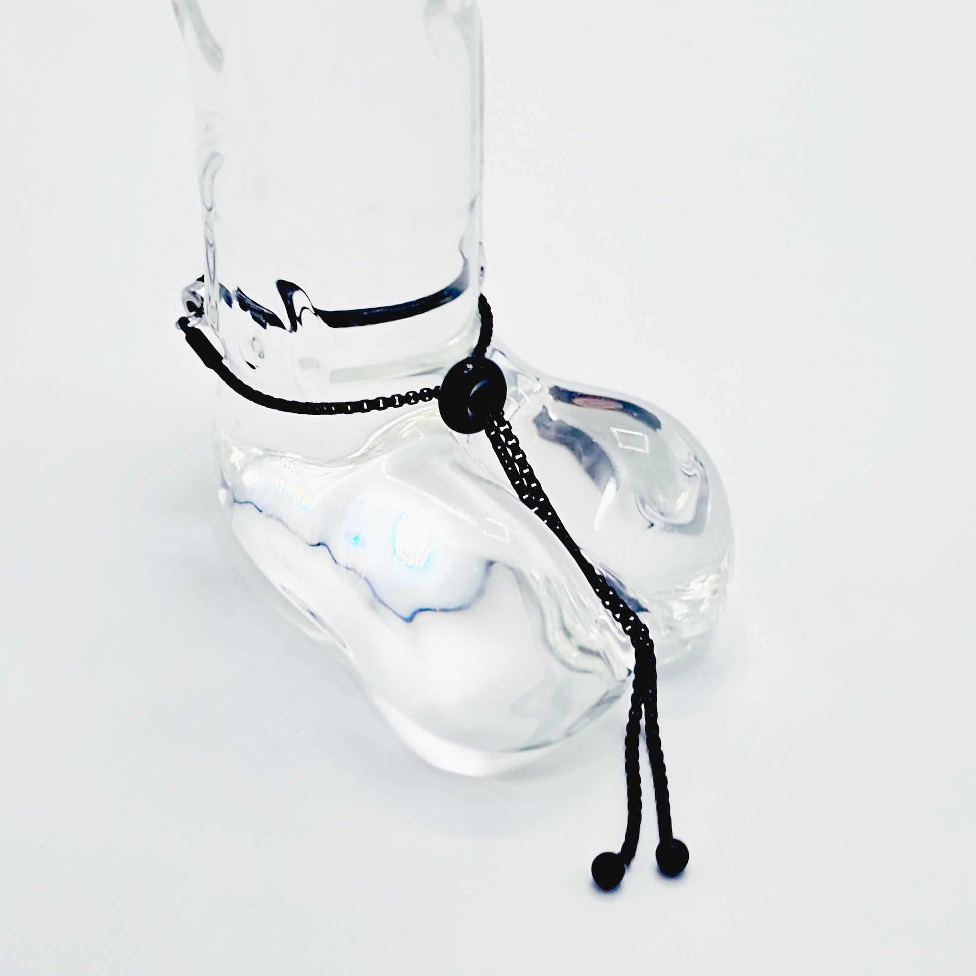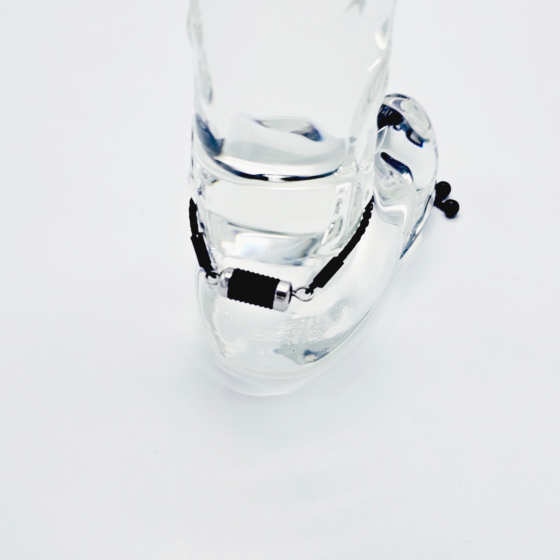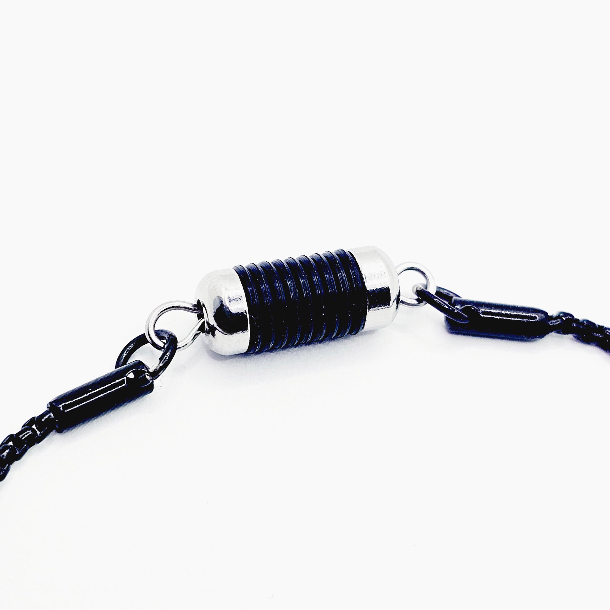 Penis Chain Noose Bracelet. Black Stainless Steel Adjustable Bolo Style Cock Ring with Stimulating Barrel Roller